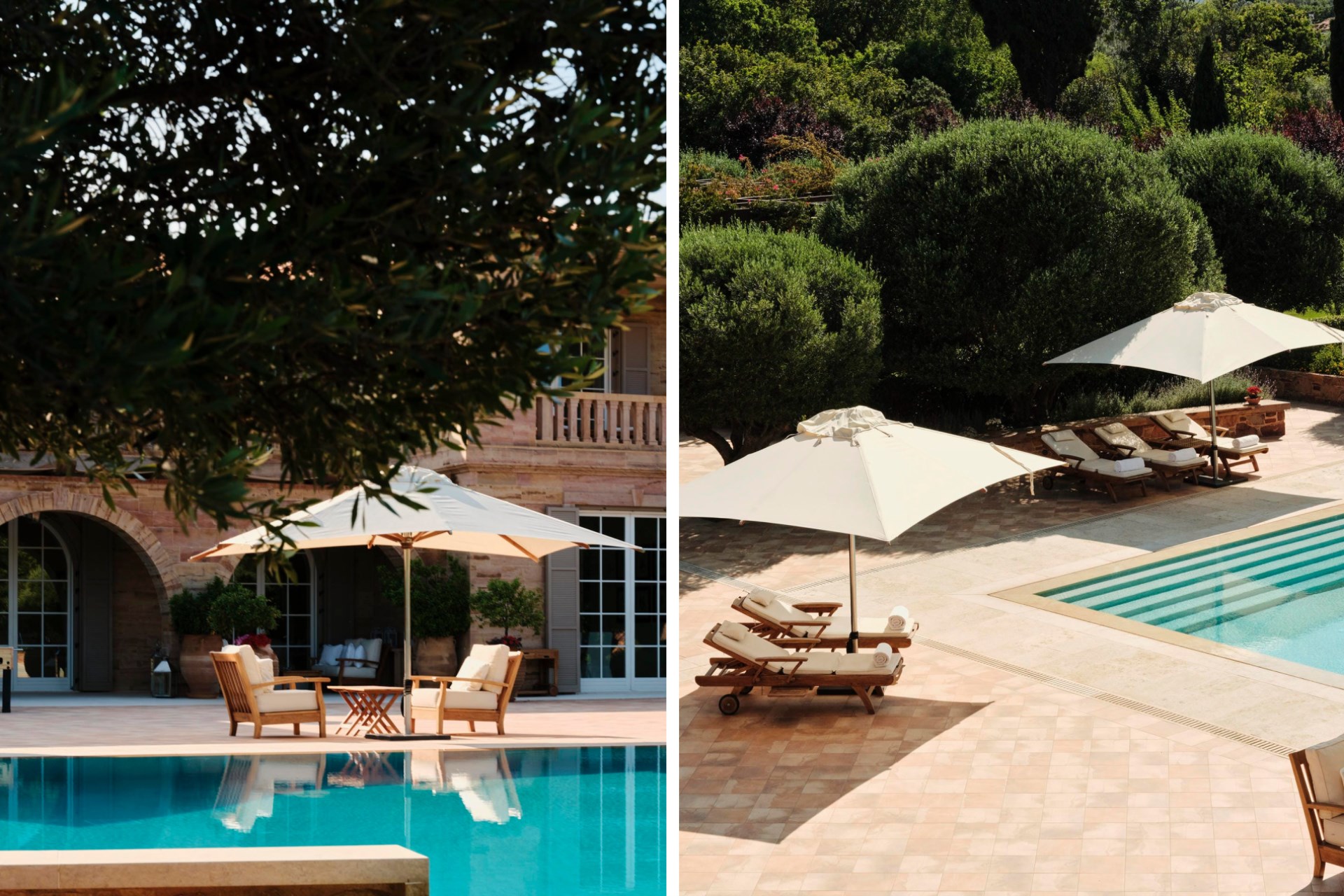 A large, private swimming pool is the focus of the main terrace, bordered by loungers and umbrellas for long, sun-soaked afternoons. A series of shaded terraces wrap around the property, offering plenty of space for reading a good book or enjoying an early evening aperitif.