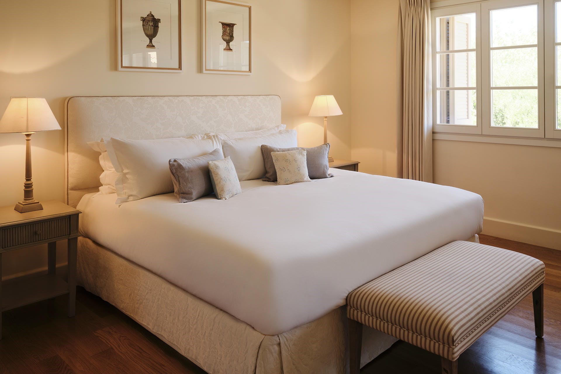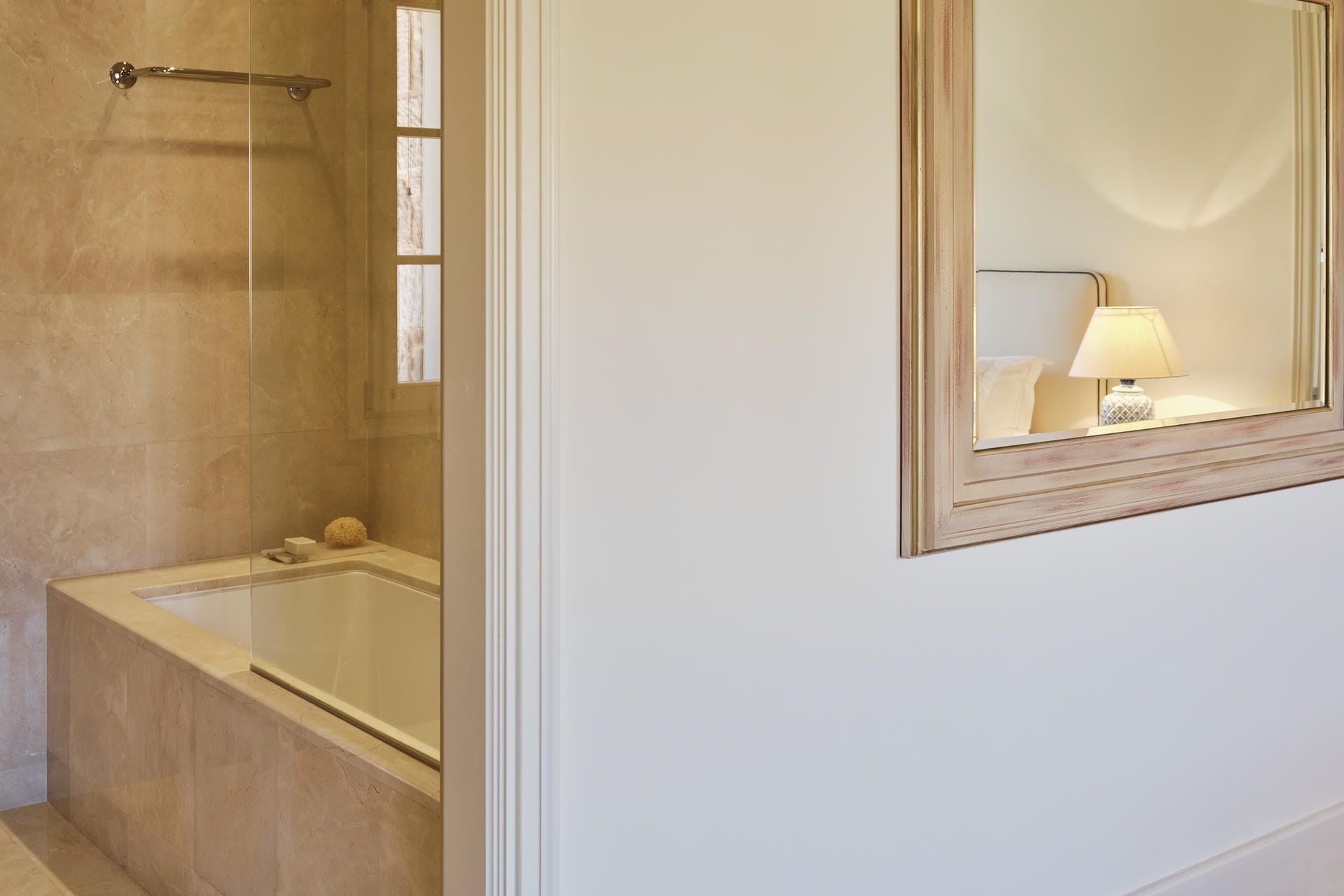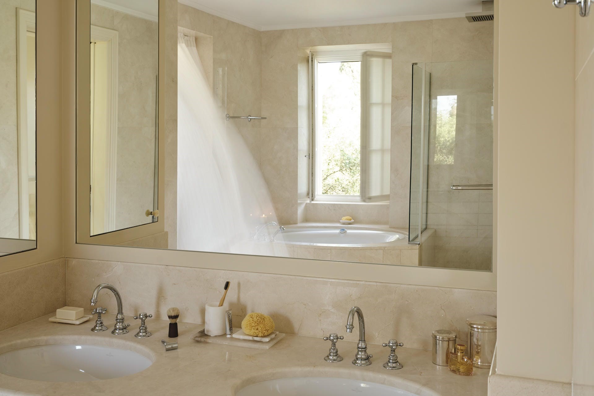 Seven en-suite, king-size bedrooms are housed in the main villa, including two with private balconies offering views over the estate and surrounding countryside. A further three bedrooms are located in a separate guest house within the grounds – ideal for those seeking additional privacy, including one room with twin bunk beds, perfect for younger guests. The guest house features a cosy communal lounge and a handy kitchenette.