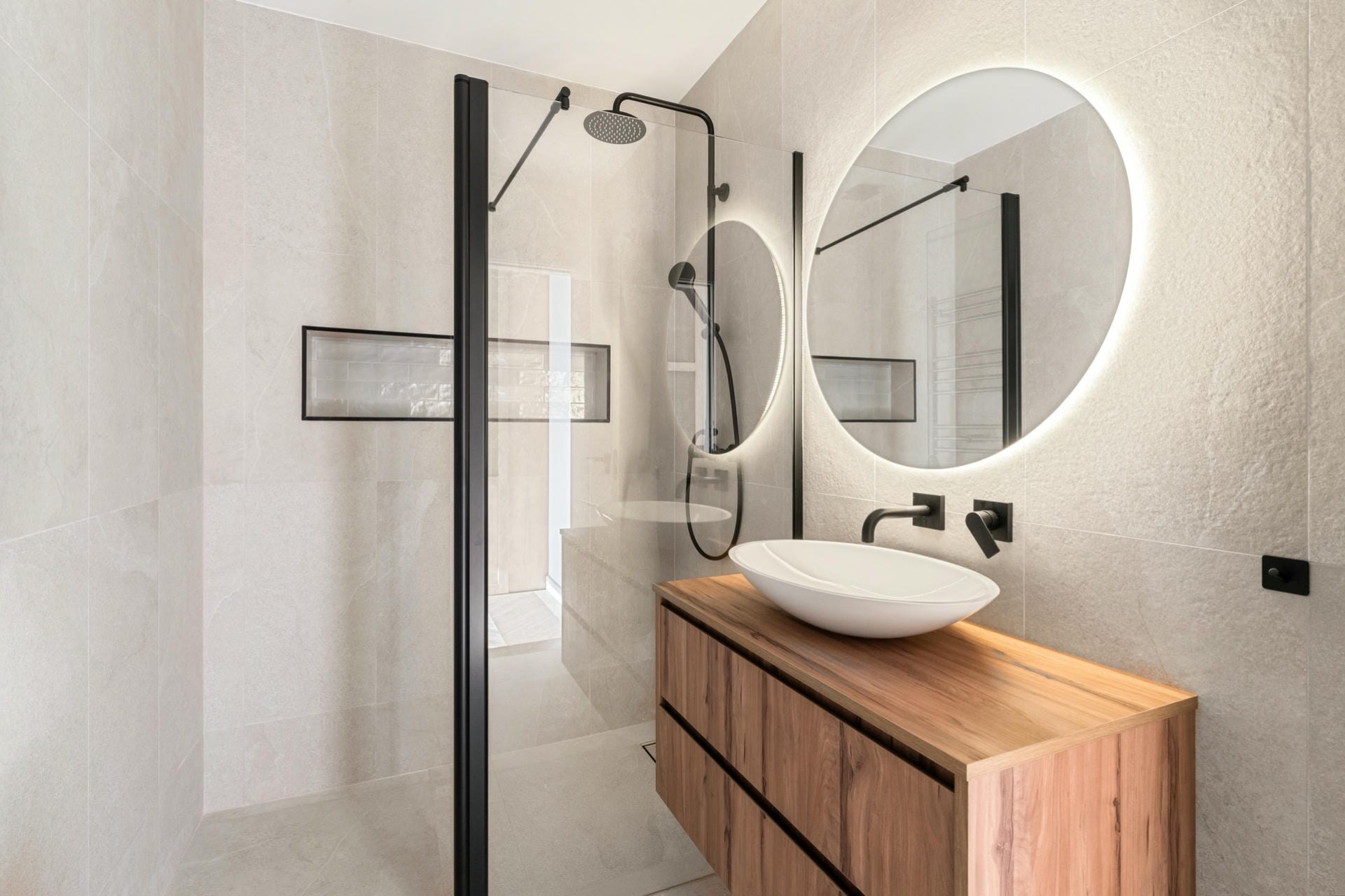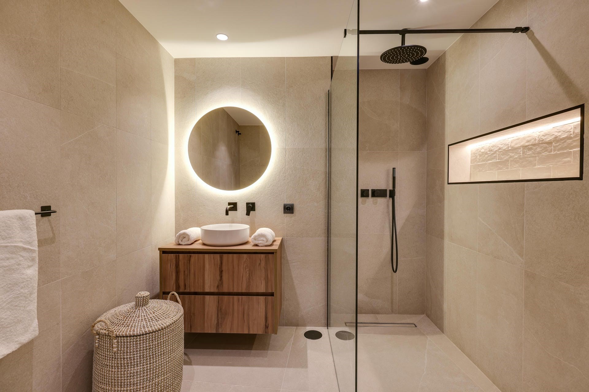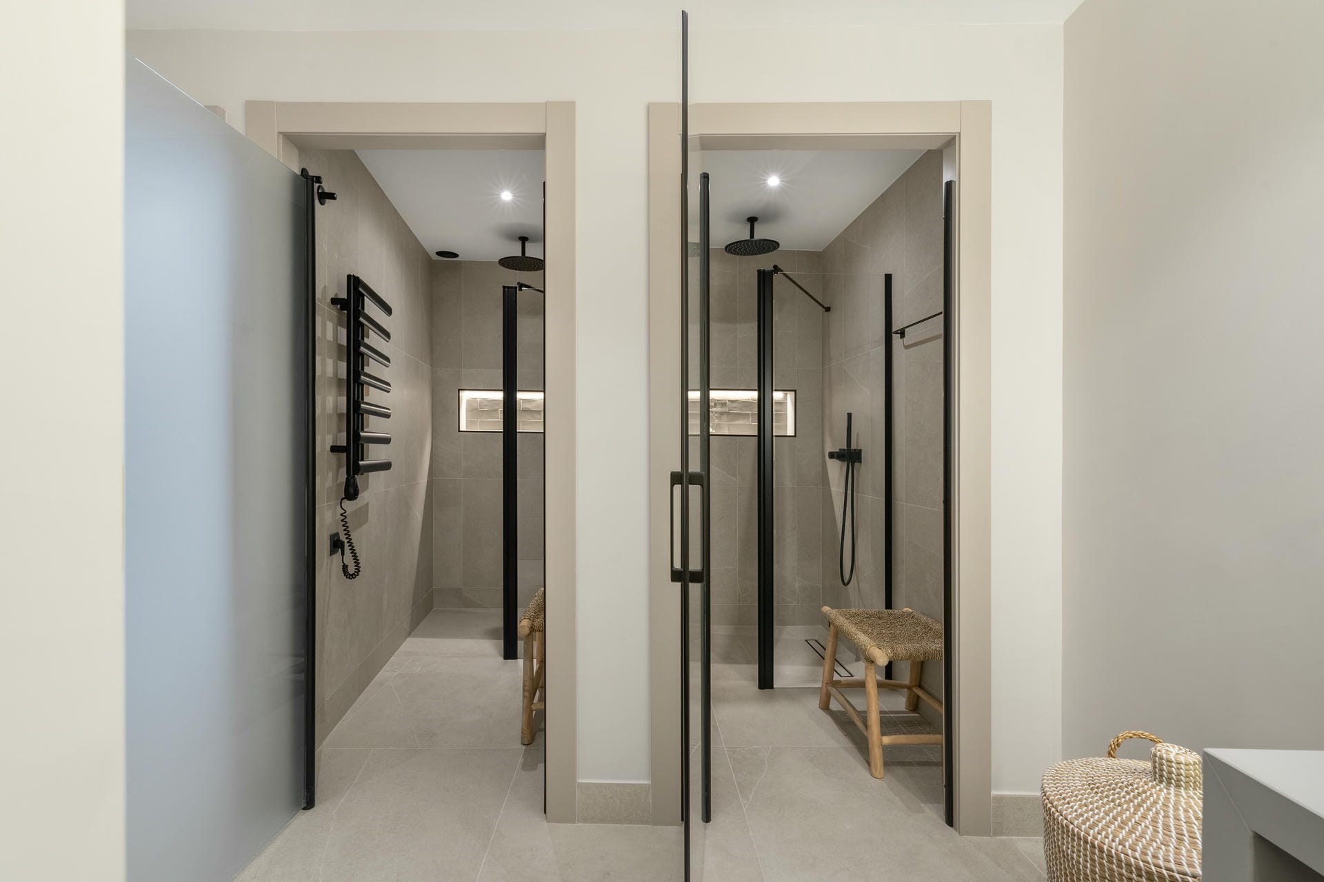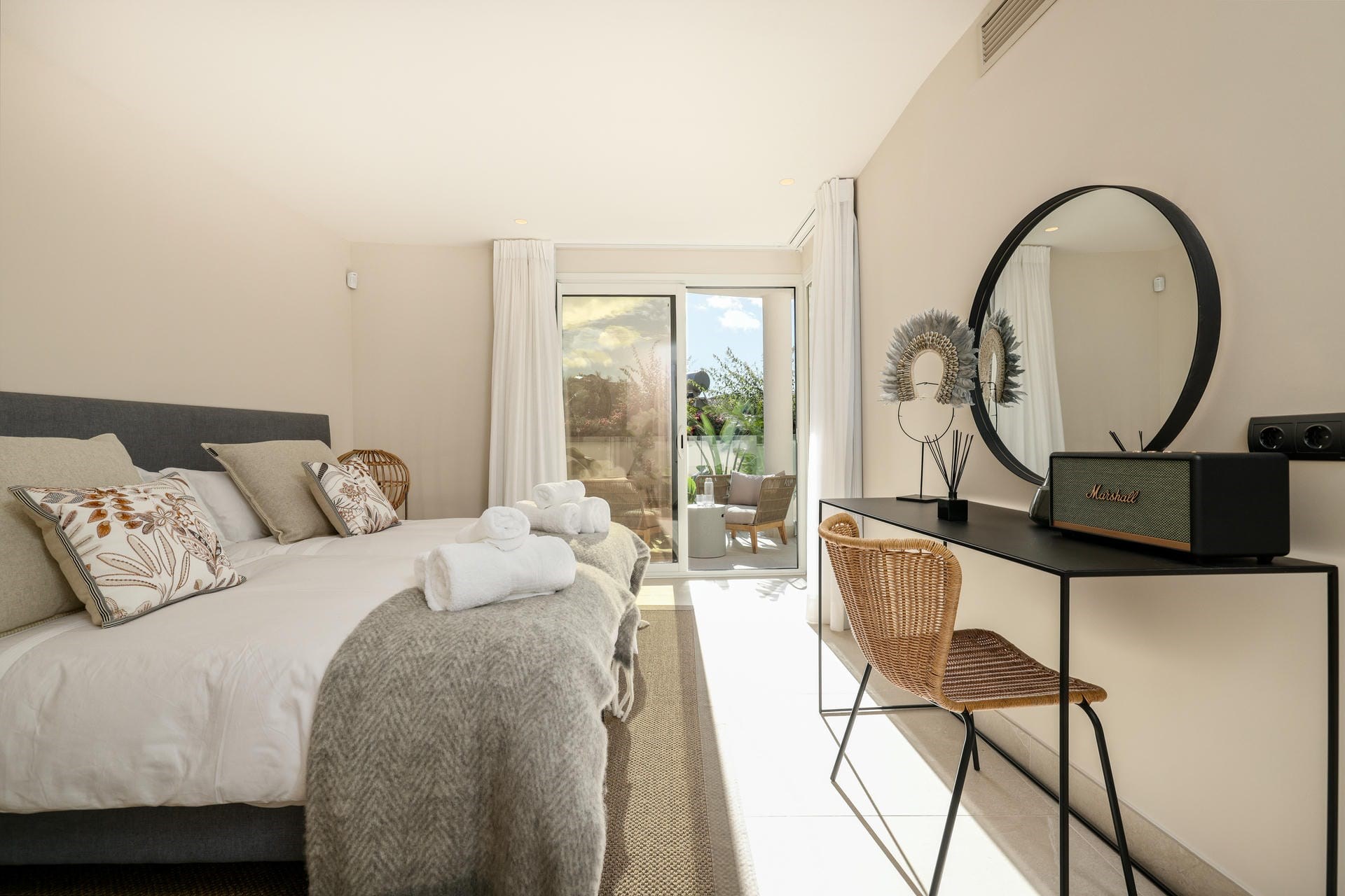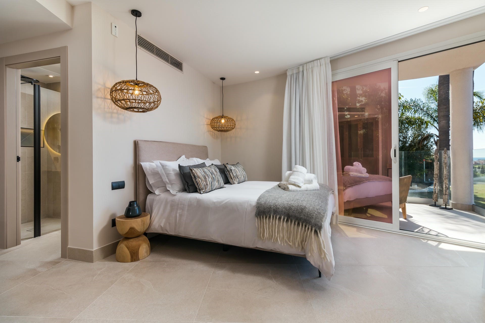 Boutique Bedroom 12 – king-size bed, en-suite bathroom with shower, and private terrace