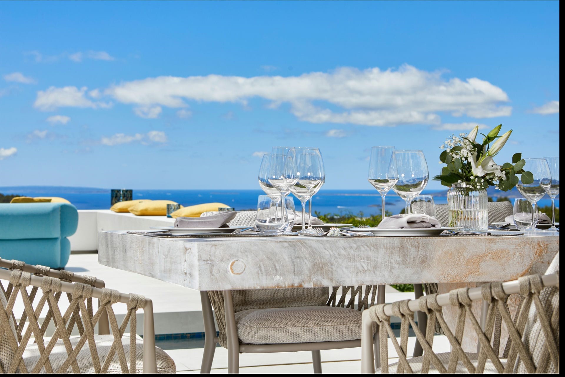 Lush, terraced gardens provide a tranquil setting for relaxation and reflection, while the sprawling terraces offer plenty of space for socialising. There are both shady and sun-drenched lounge areas for relaxation, while the outdoor dining area is ideal for casual al fresco meals and barbecues.