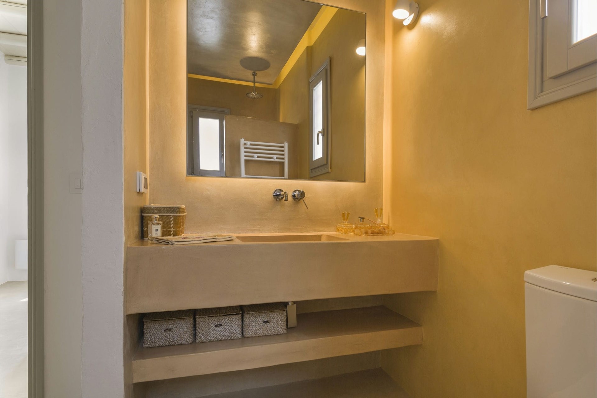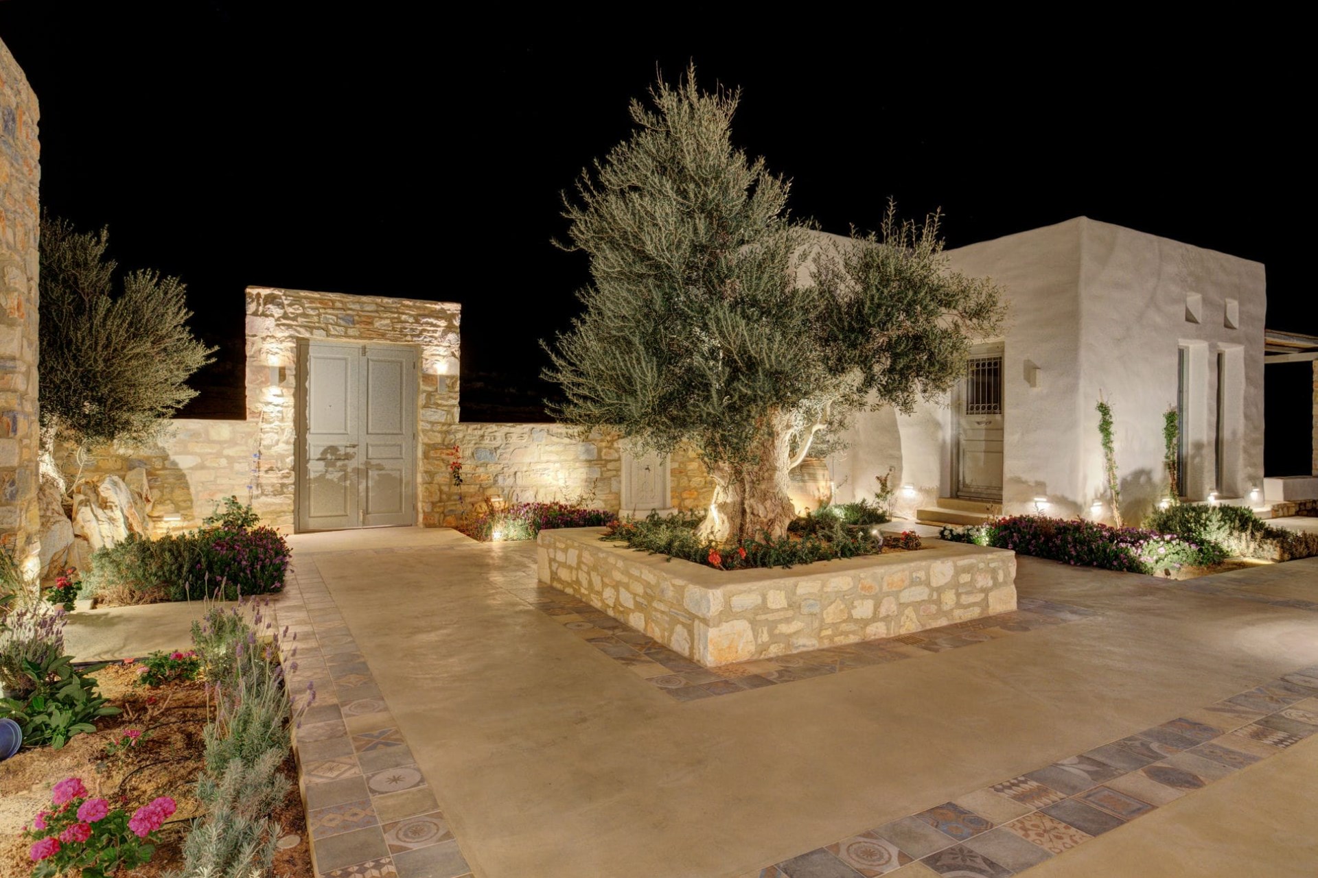 On the other side of the villa is a sunny courtyard with a splendid olive tree as its centrepiece, accentuating the Mediterranean feel. A hidden open-air jacuzzi is tucked away beside the courtyard, offering a secret oasis.