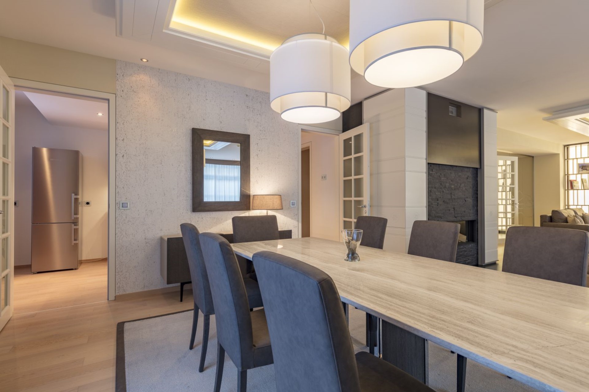 With generous indoor living spaces and the plushest of furnishings, guests will find pure indulgence and relaxation within the apartment. There is not one but two large living rooms, both featuring comfortable sofas and fireplaces.