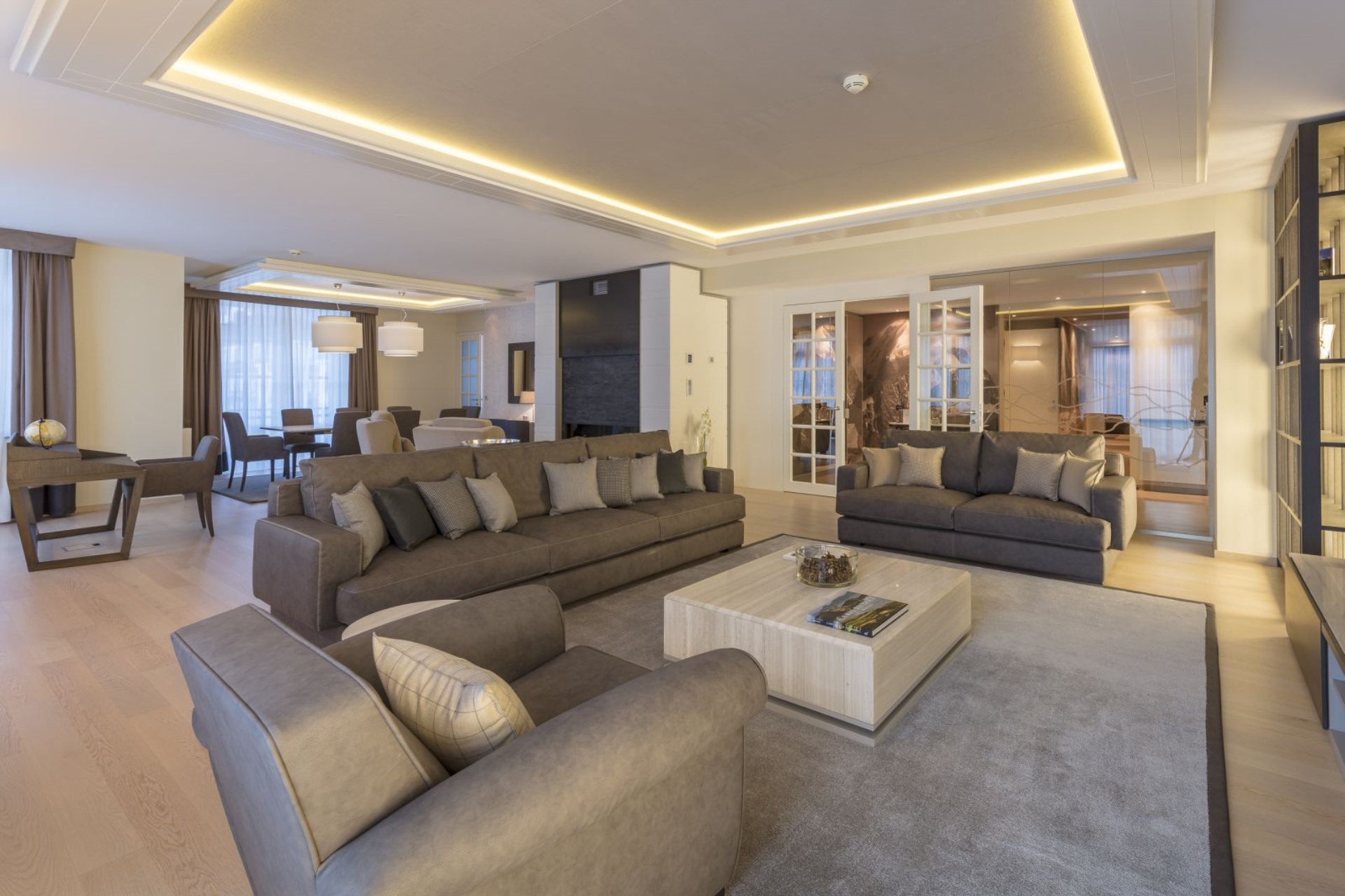 The Ultimate Mountain Suite is inter-connected with the 5-star Grand Hotel des Bains Kempinski St. Moritz where guests can access the spa and fitness centre, as well as the residents’ lounge and Kids Club.