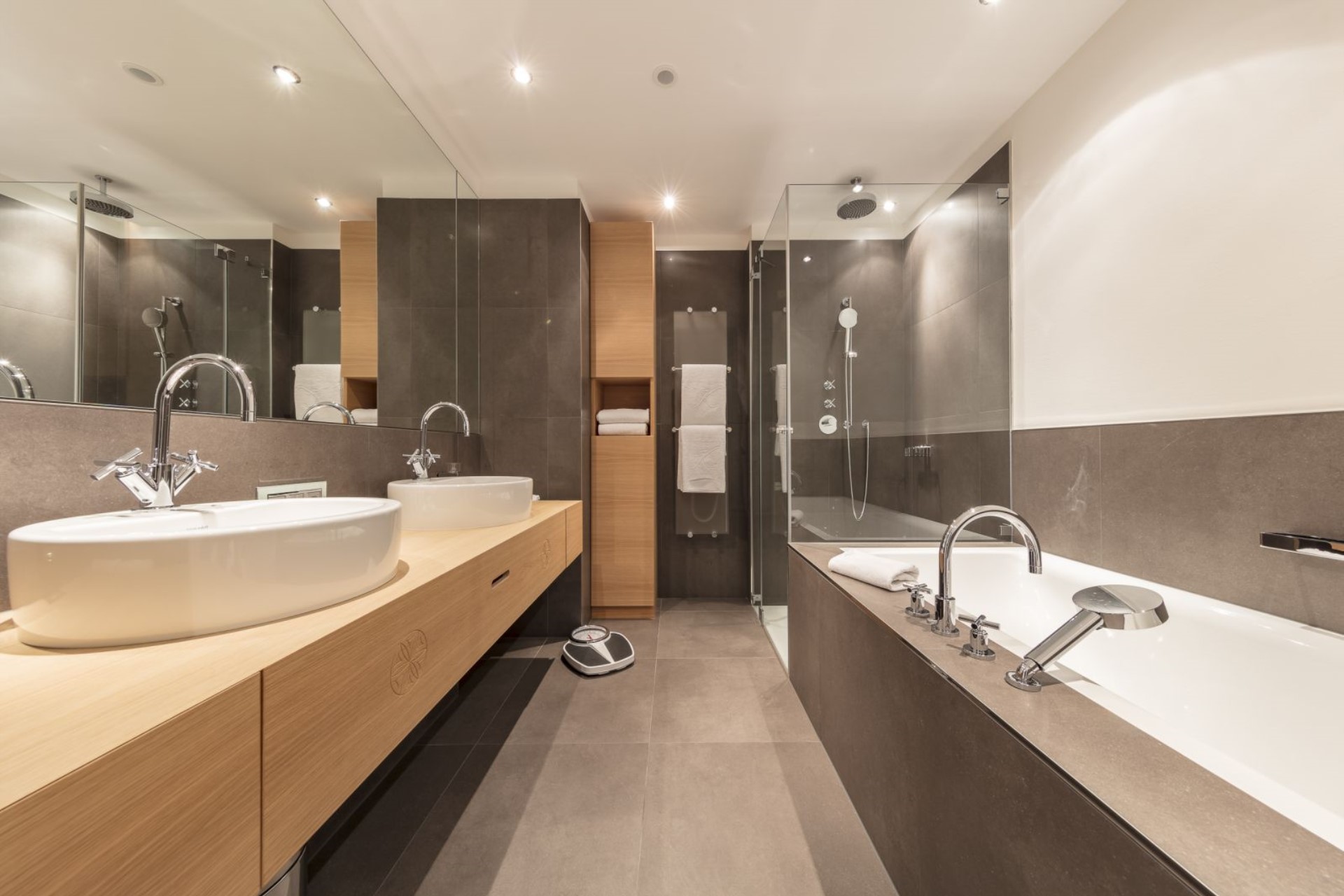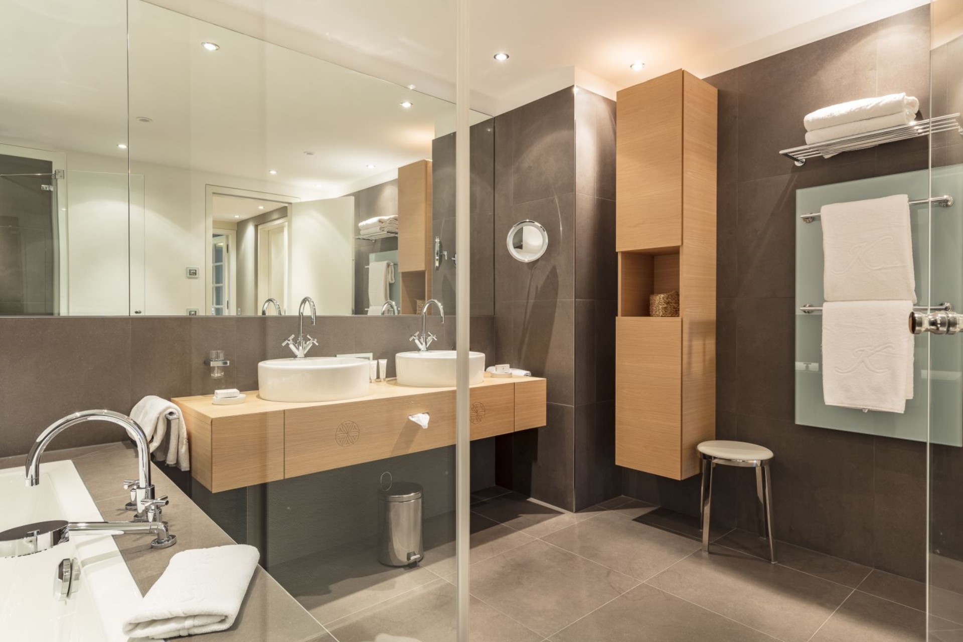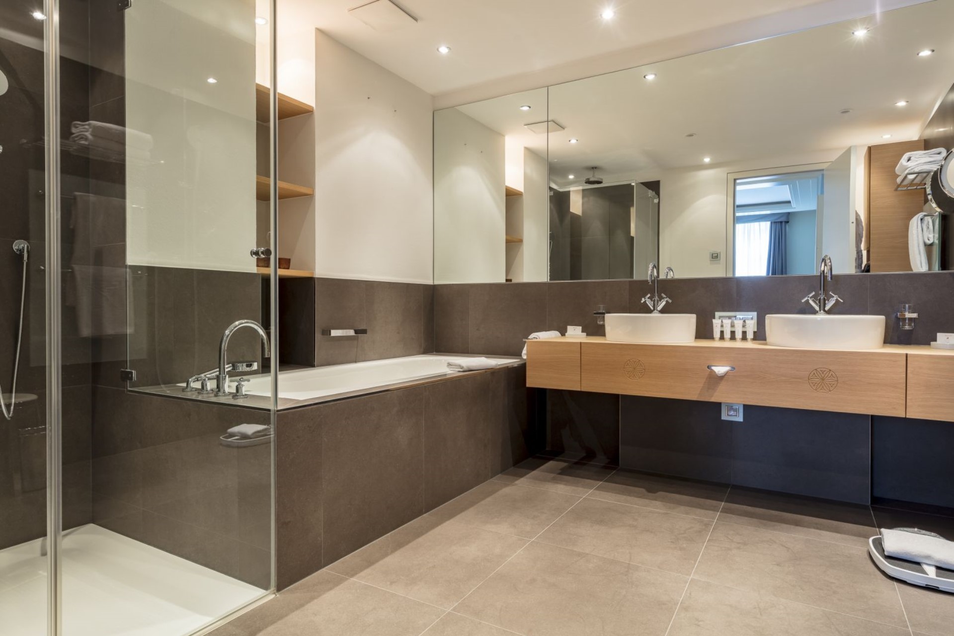 After a busy day on the slopes, the luxurious bedrooms provide perfect retreats for rest and relaxation. There are two master bedrooms with king-size beds, one standard double room, and two twin rooms. Each bedroom offers en-suite facilities with rain showers and separate bathtubs, as well as spacious dressing rooms and desk areas. One of the Master bedrooms shares a balcony with the double room.