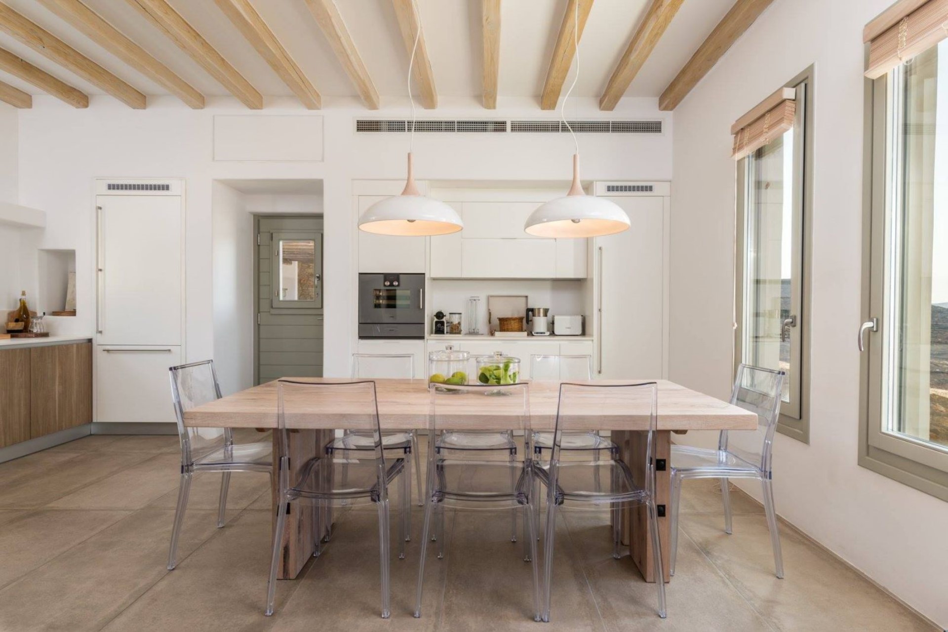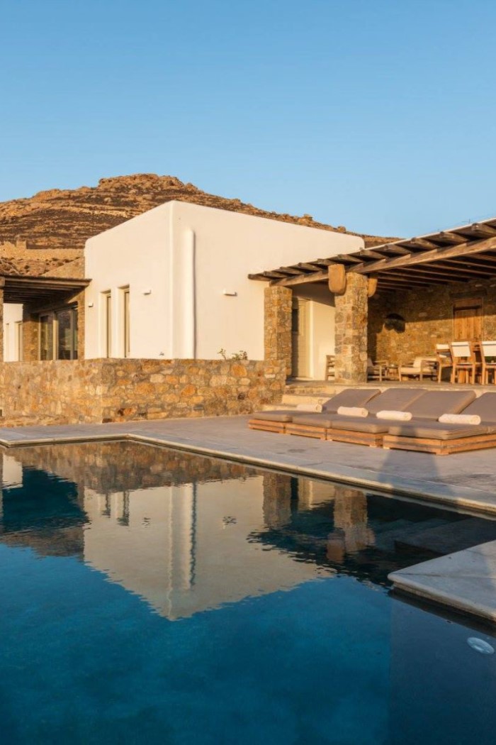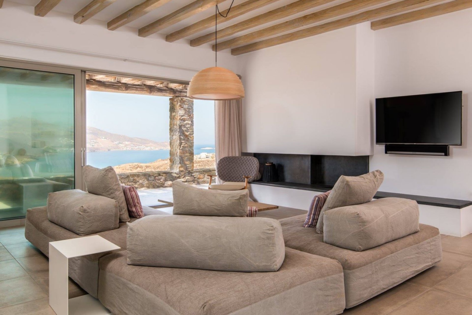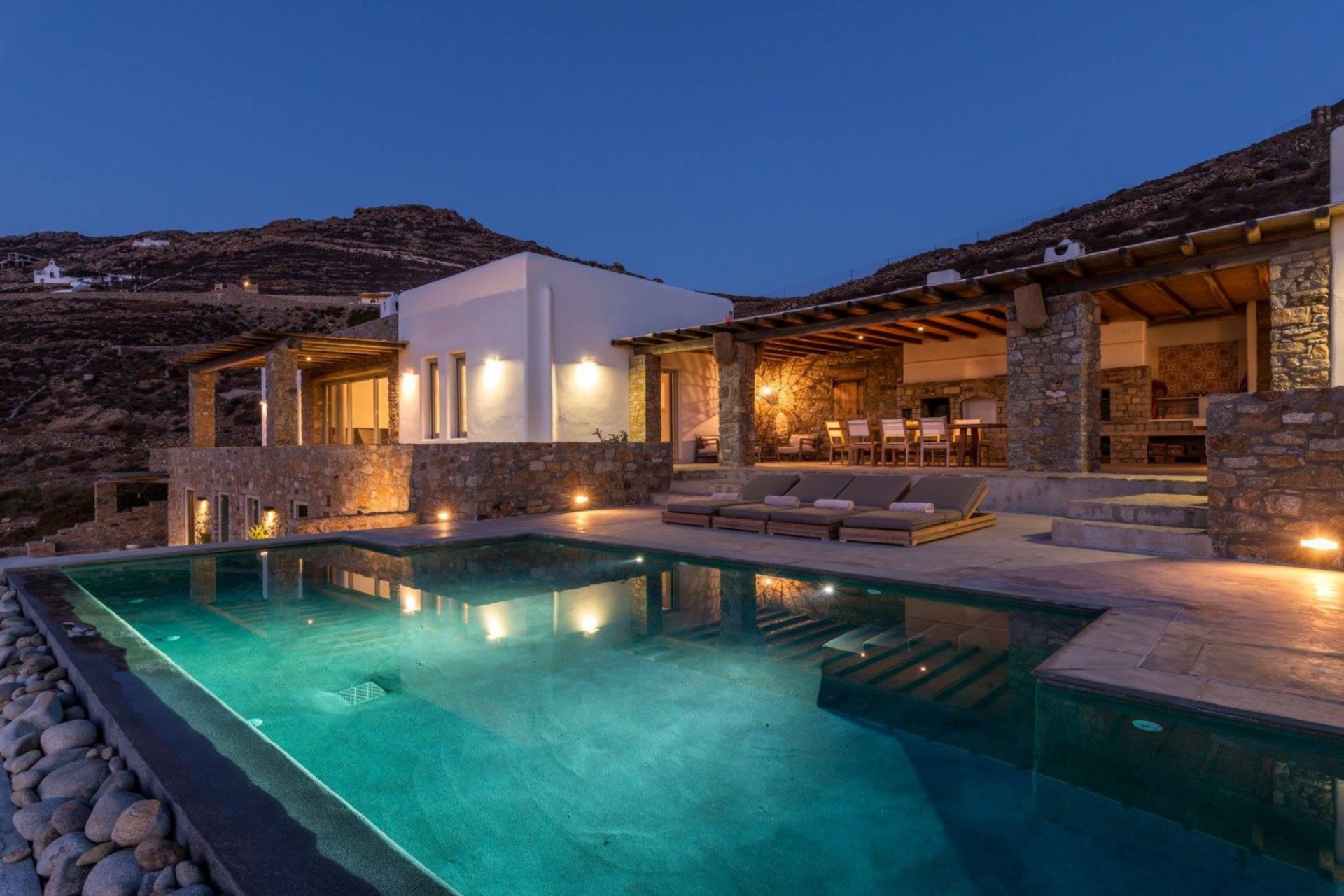 Perfectly blending with its surroundings, the villa features stone exteriors and typical Cycladic whitewashed walls. The large infinity swimming pool and separate Jacuzzi both boast panoramic sea views.