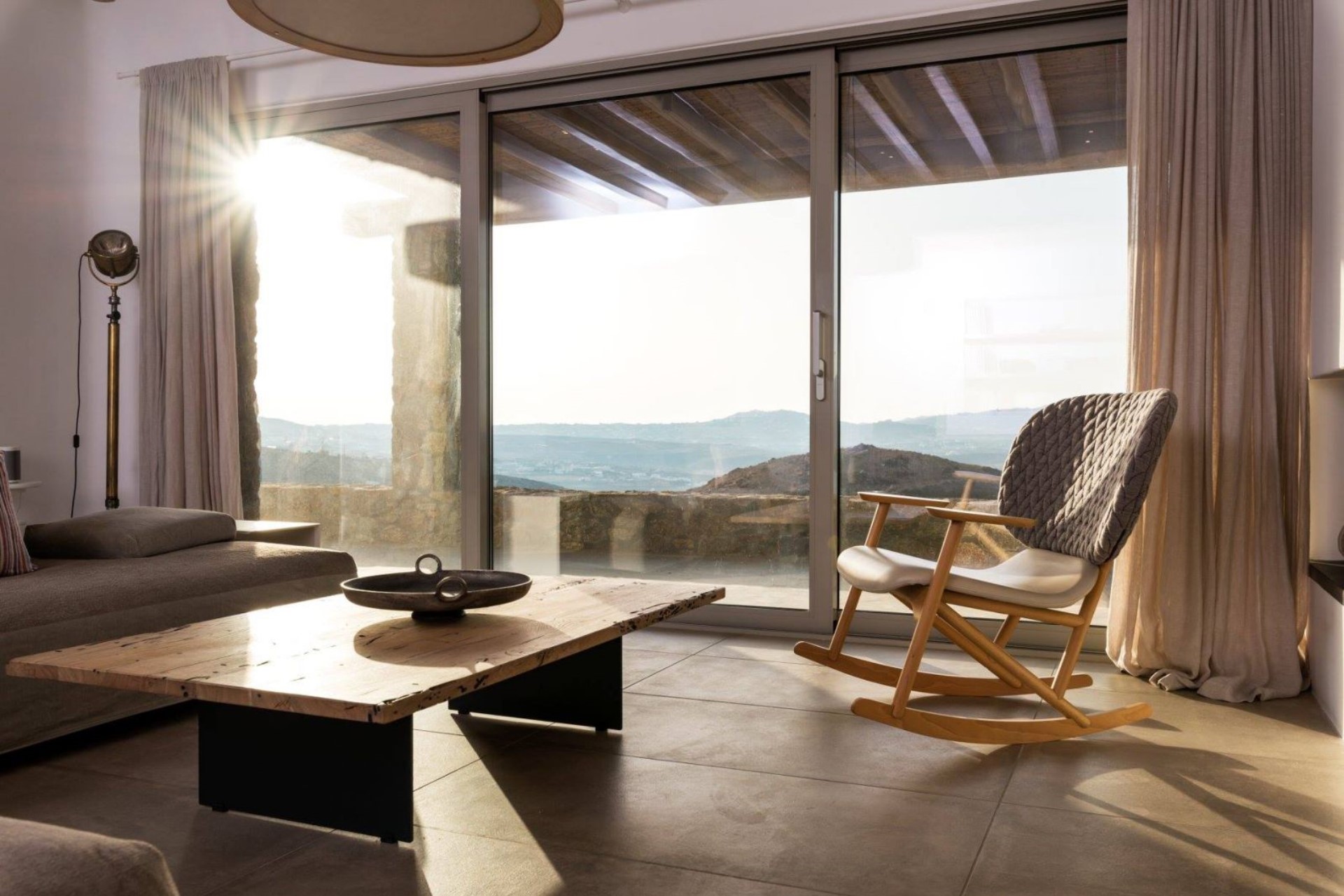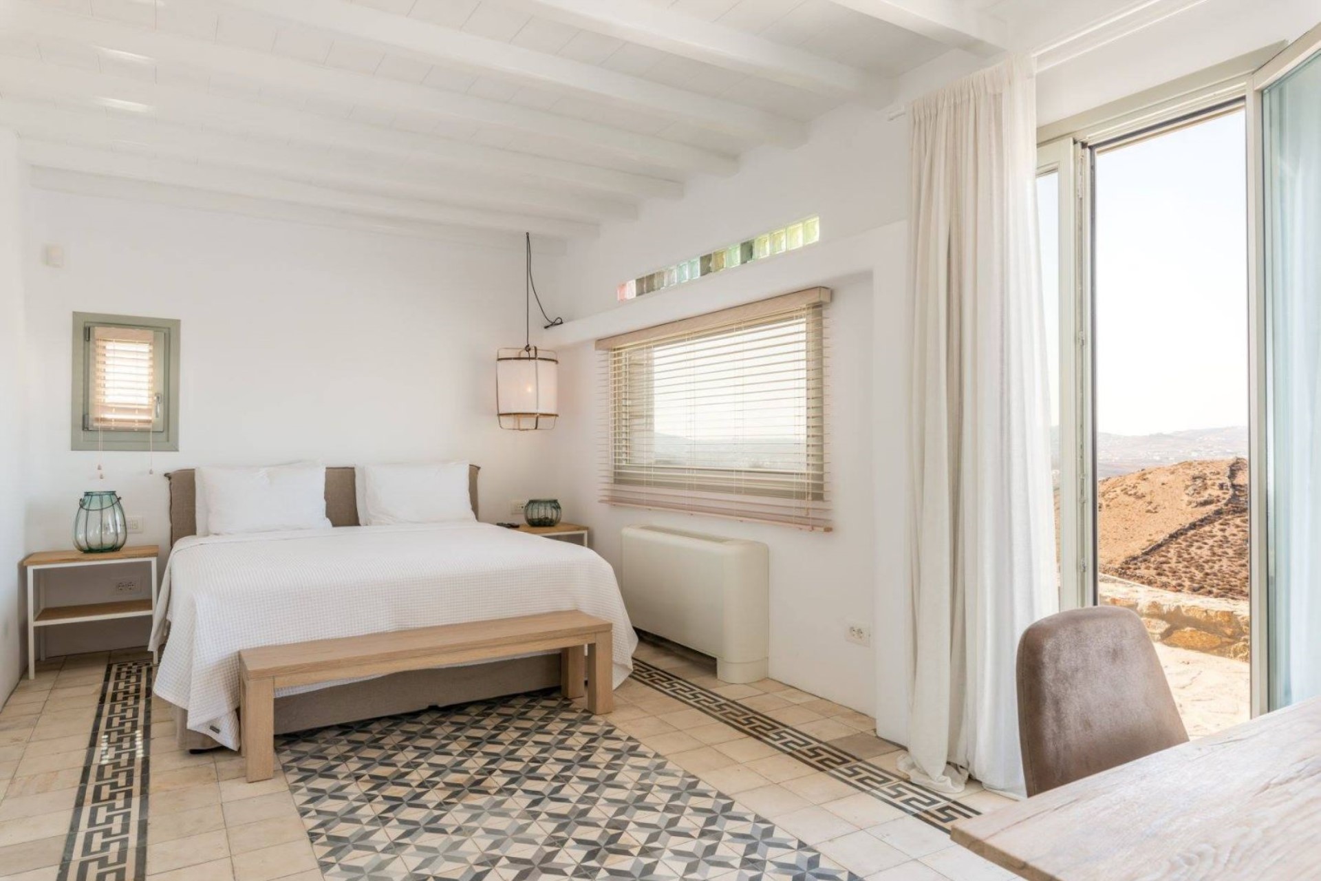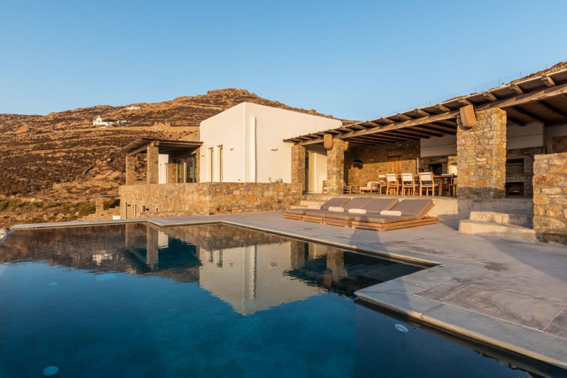 Villa Alas is located on a hilltop above one of the longest beaches of Mykonos, Ftelia Beach.