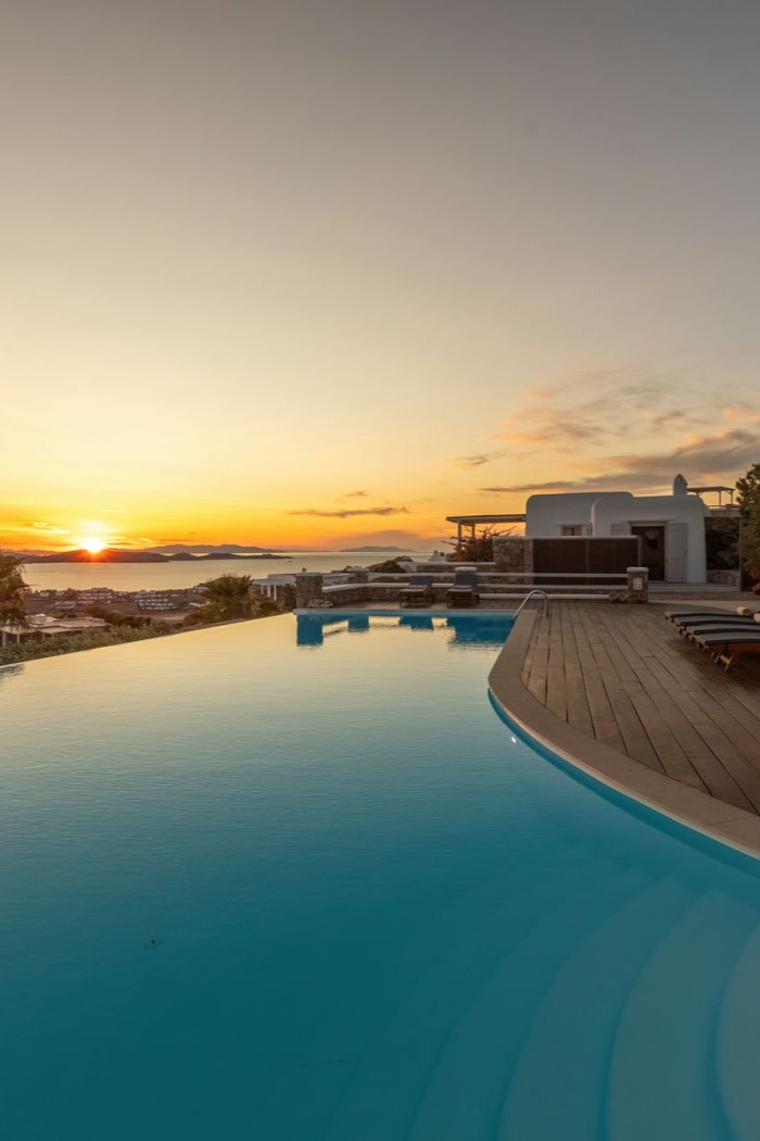Villa Alia is located on the hills of Mykonos, overlooking Psarou Beach, just a short drive from Chora.