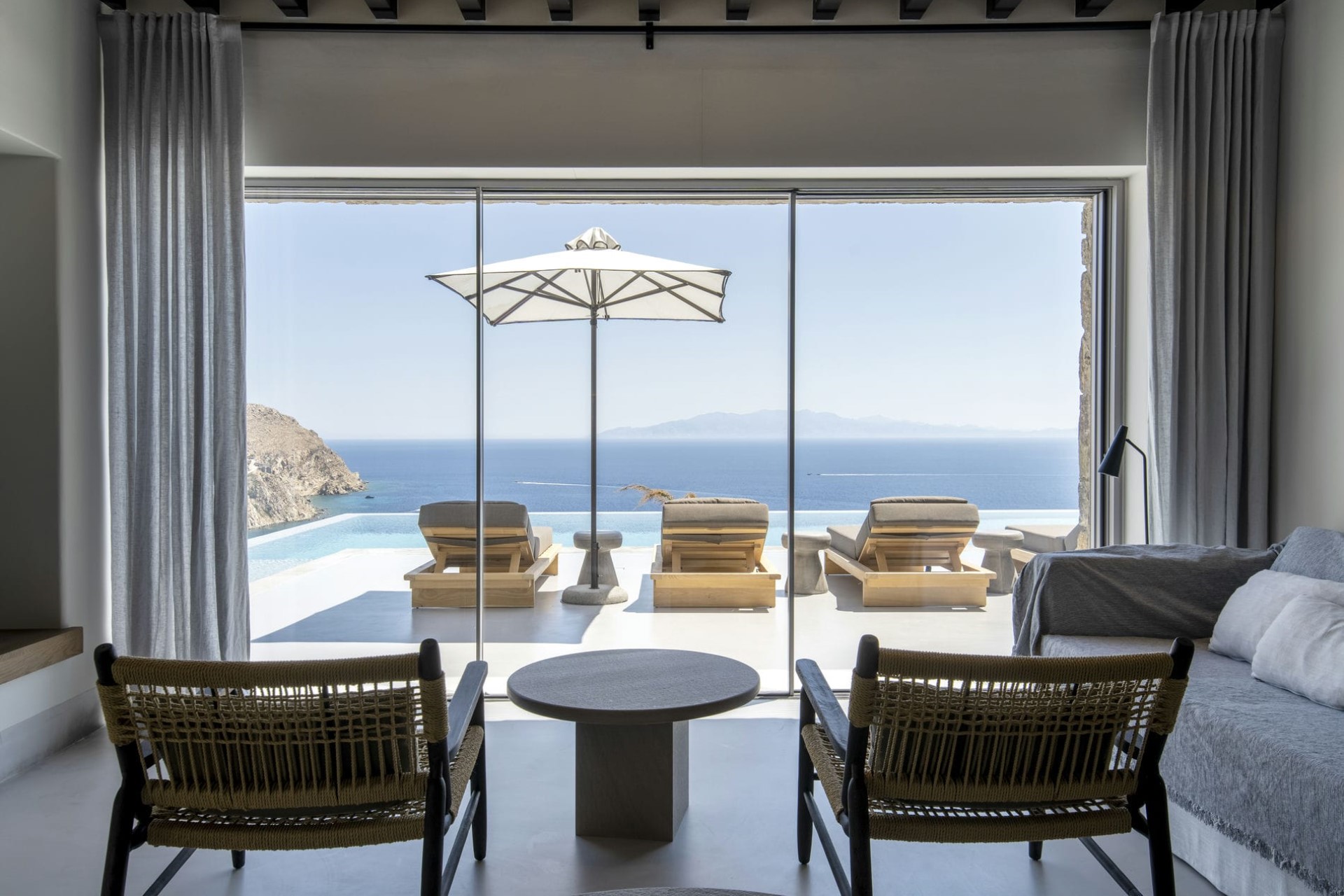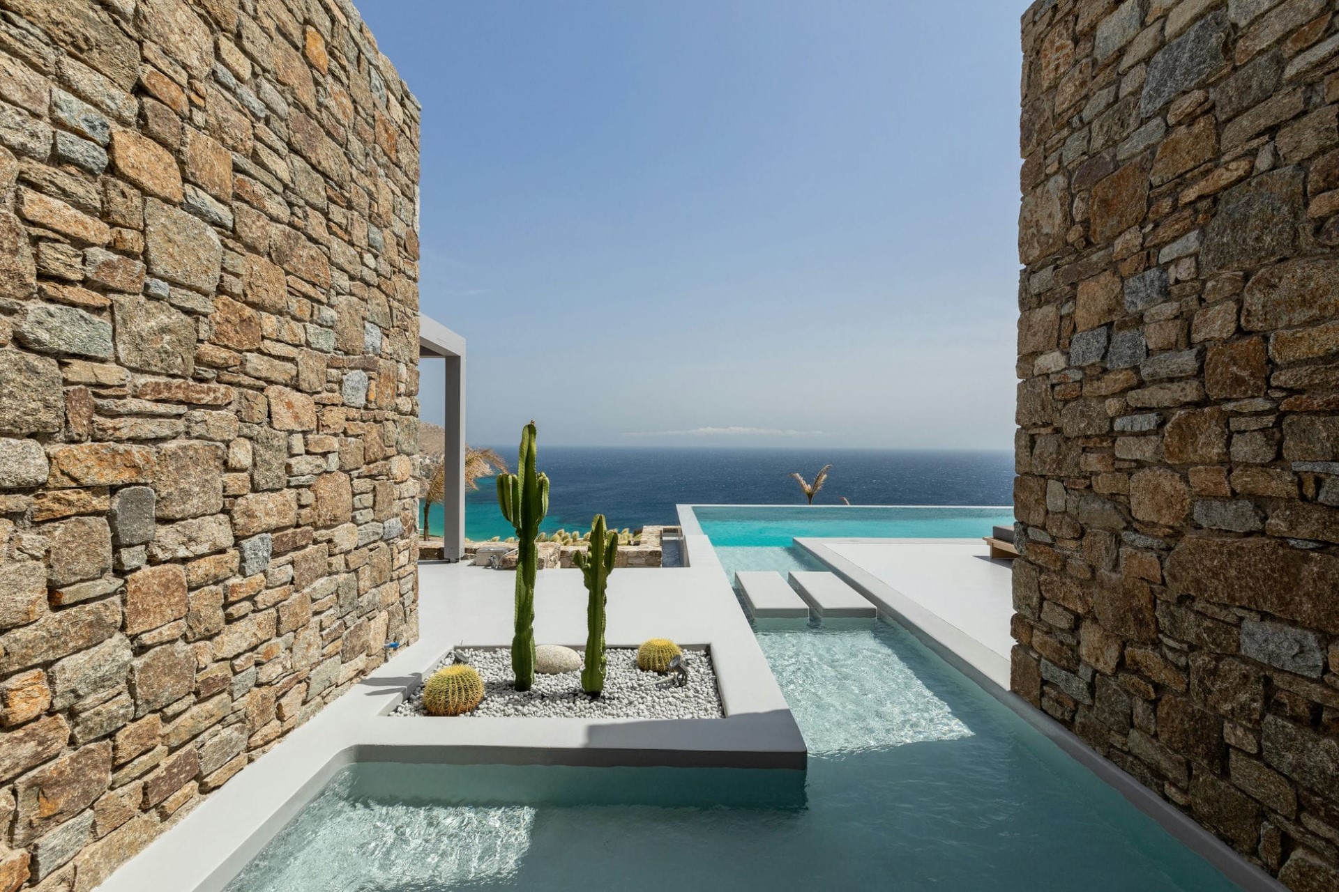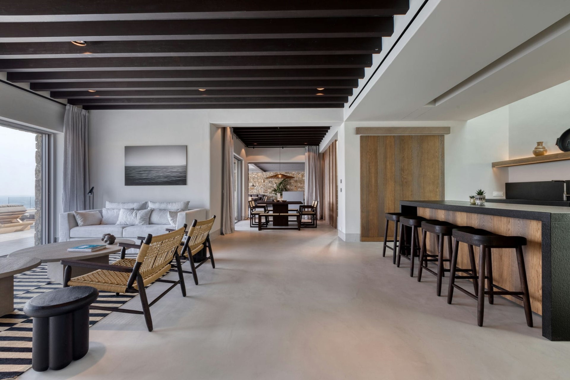 With uninterrupted views down to the beaches of Elia in Mykonos, Villa Ariadne’s Mitos is a modern luxury villa perfect for a Greek island escape.