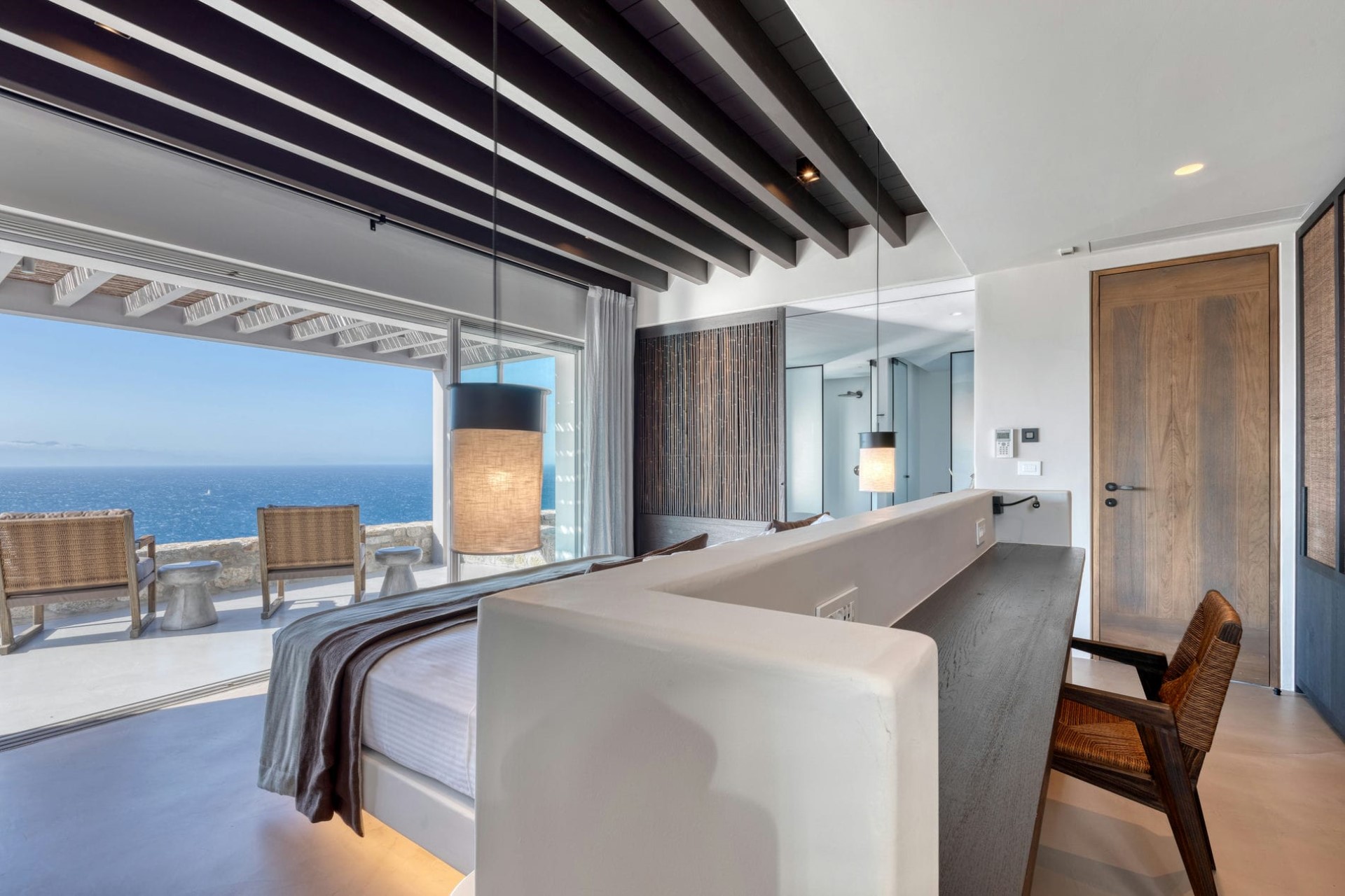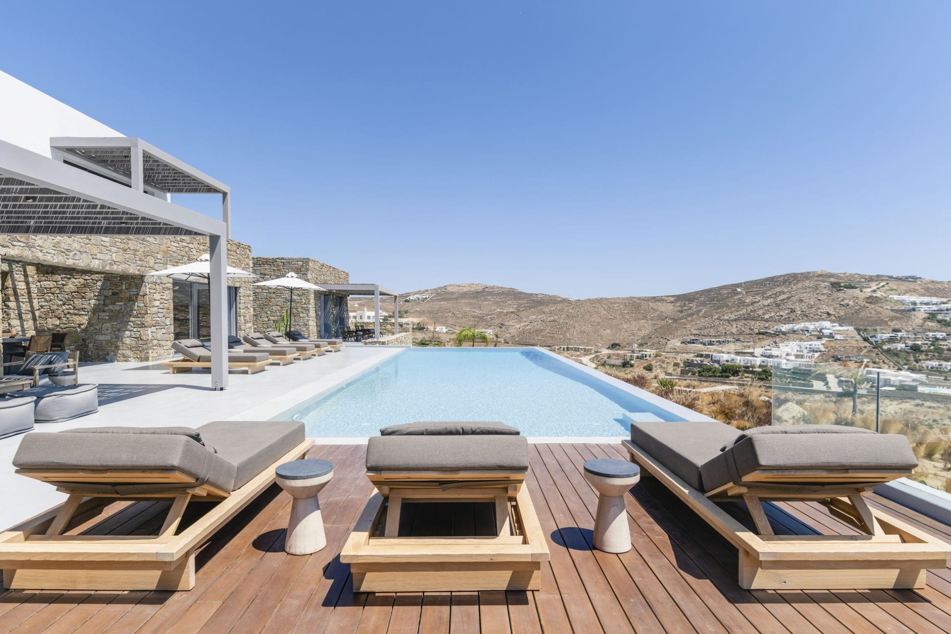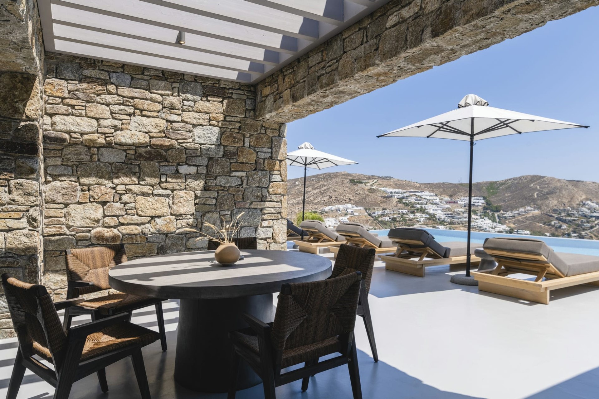 With uninterrupted views down to the beaches of Elia in Mykonos, Villa Ariadne’s Mitos is a modern luxury villa perfect for a Greek island escape.