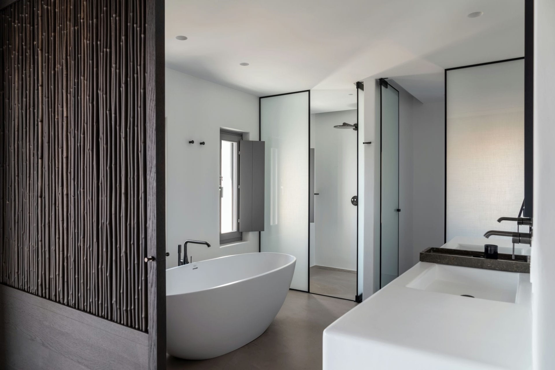 With so much outdoor space to enjoy days by the pool, sunset cocktails by the fire, and the beautiful modern comforts provided inside, Villa Ariadne’s Mitos is a fantastic choice for guests to live out an idyllic Greek island dream.