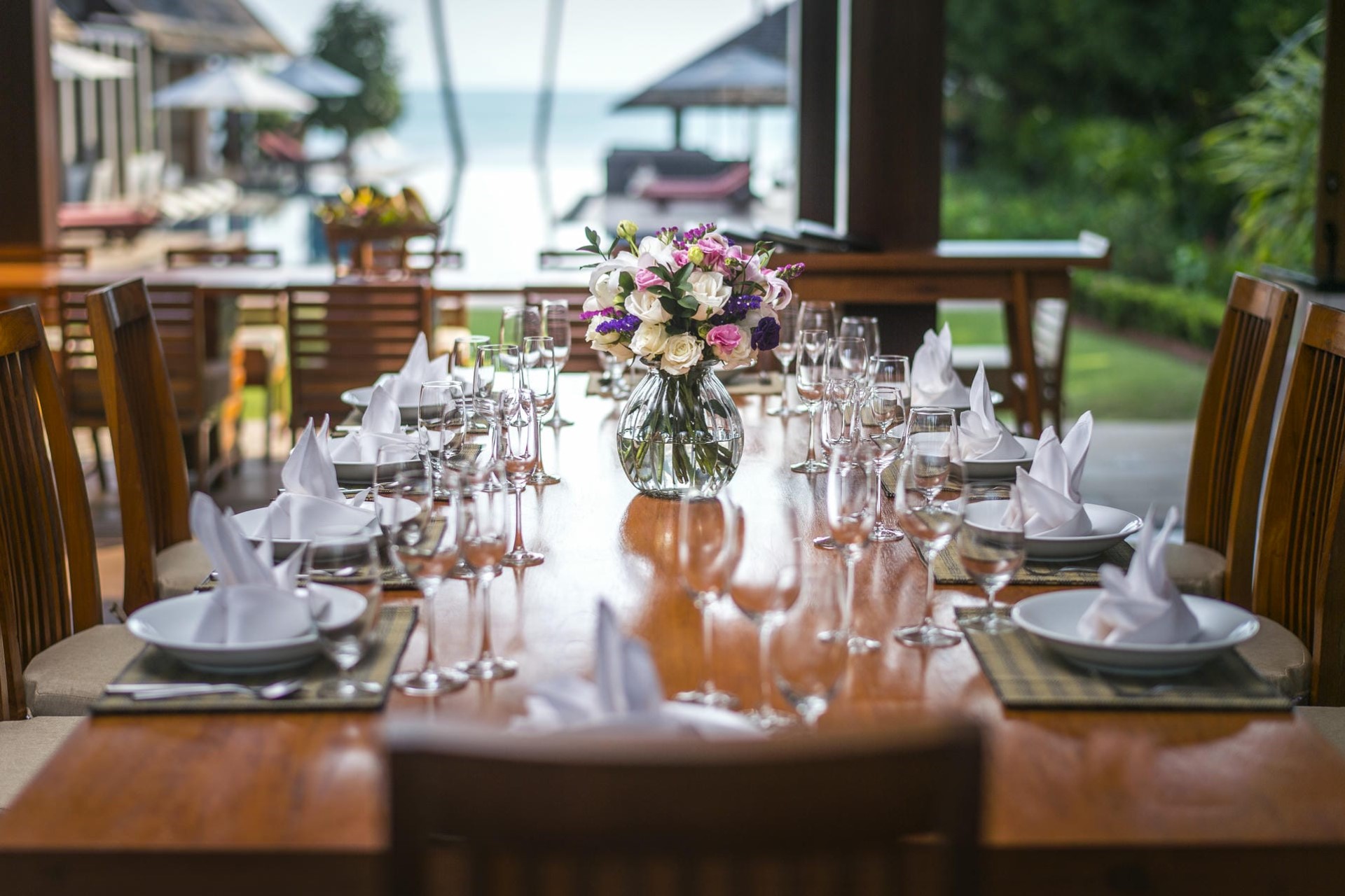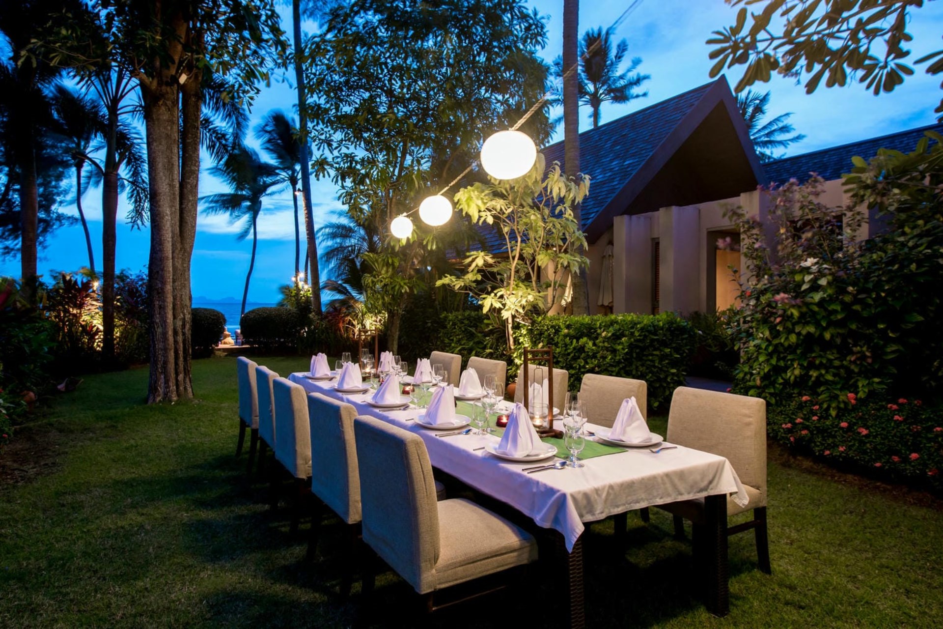 A shaded sala provides an ideal spot for relaxation, enjoying a cool drink, or indulging in a beachfront massage. Convivial al fresco meals can be enjoyed on the outdoor dining terrace with the sound of the waves as a backdrop.