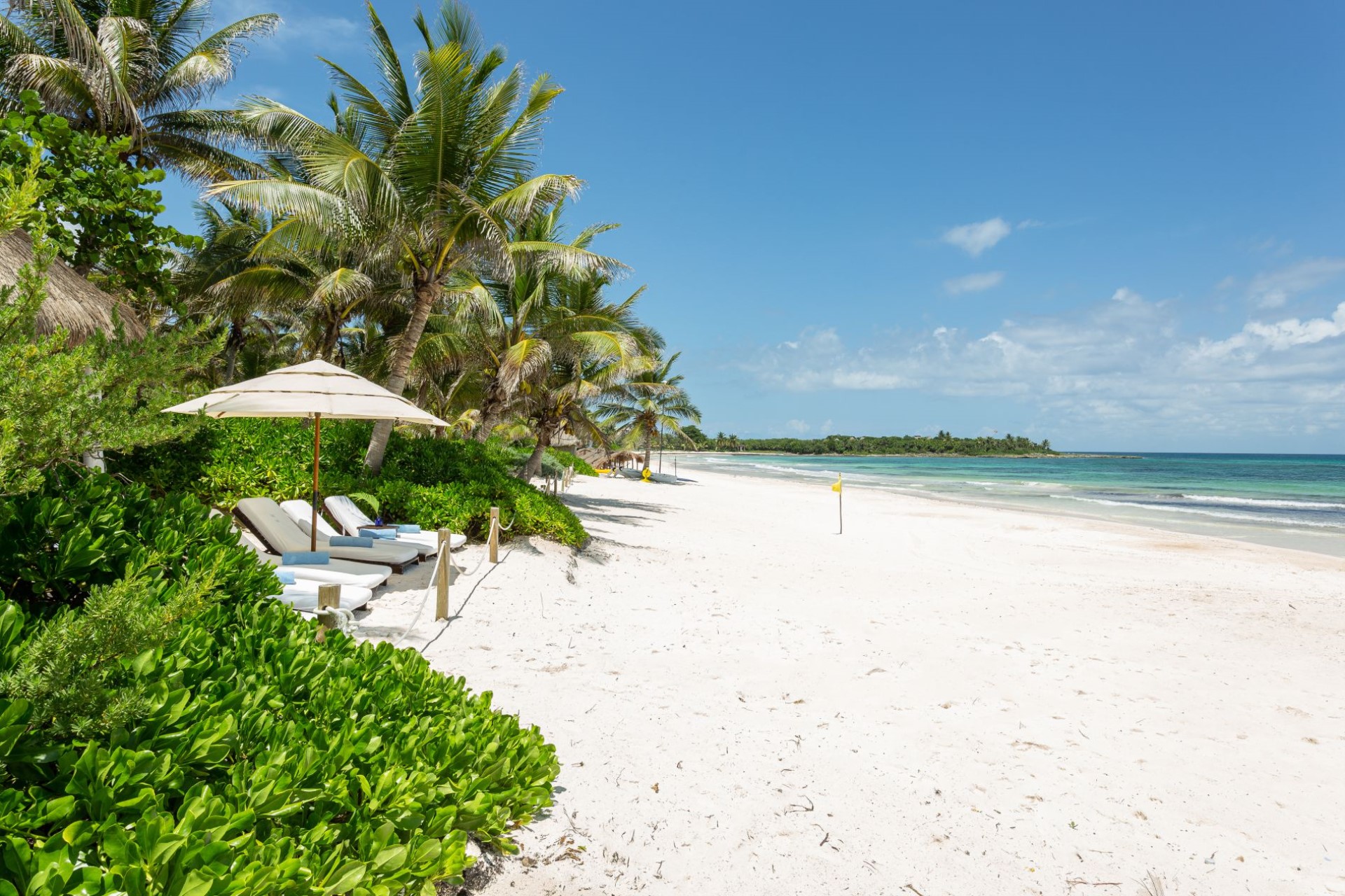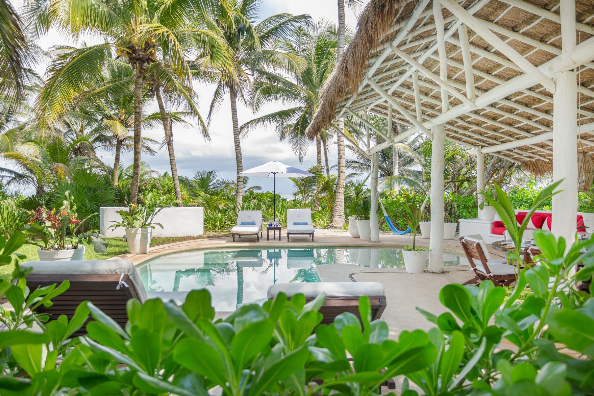 Swim in the private pool or relax on the white-sand beach of Xpu-Ha at this luxurious villa