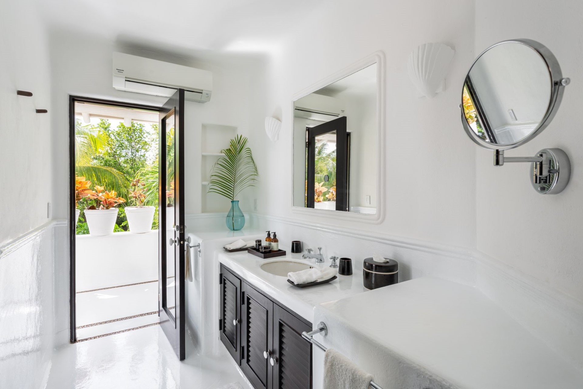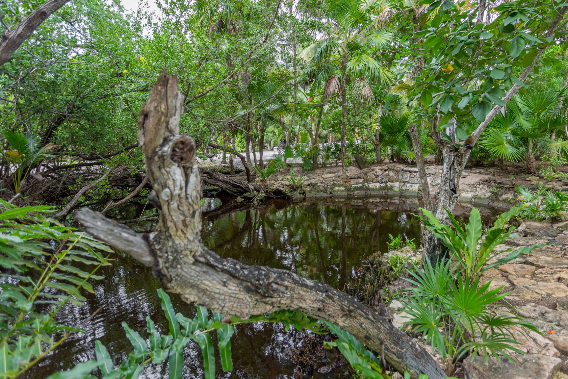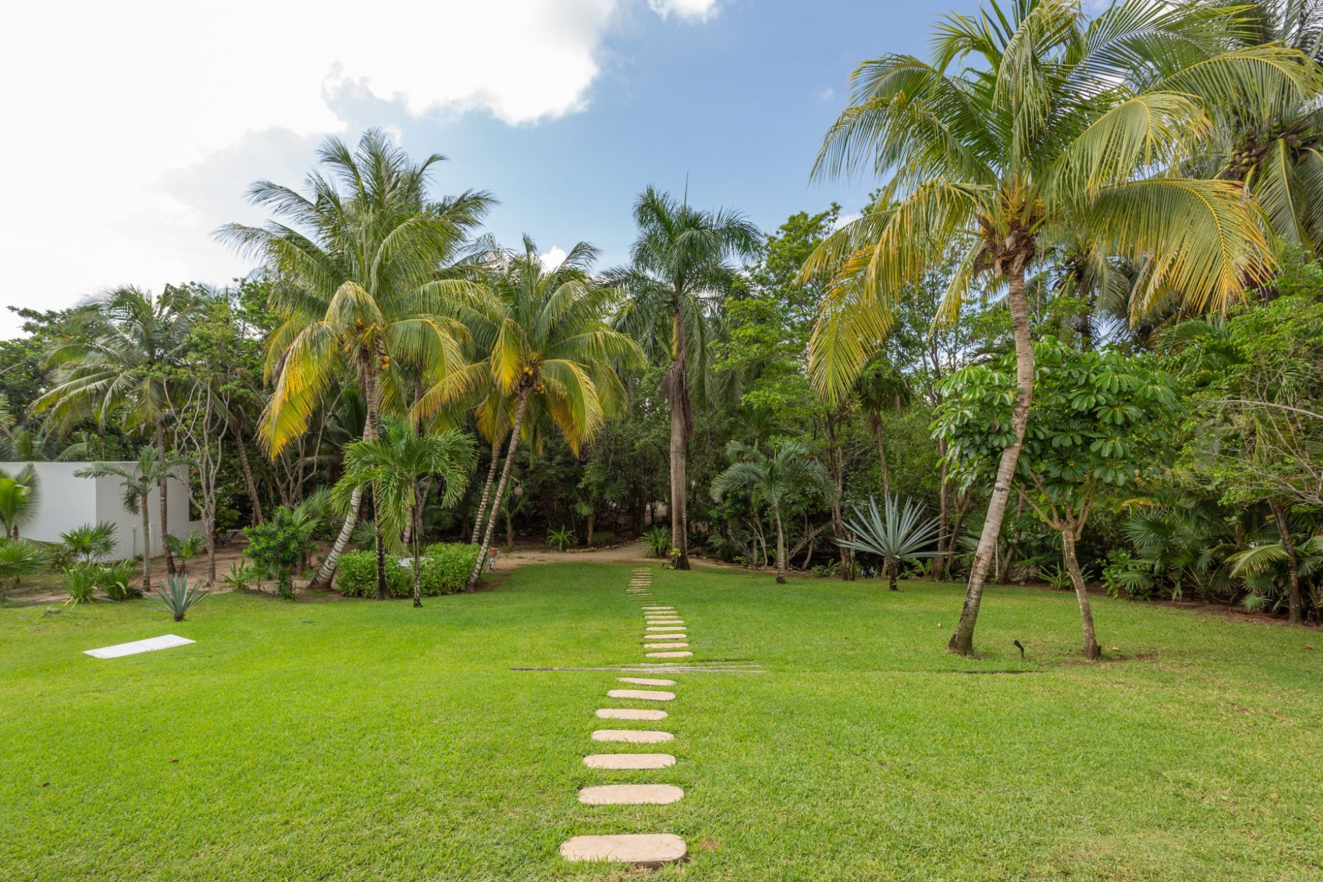 The villa’s lush gardens are filled with tropical trees and plants, frequently visited by colourful birds. Manicured lawns on each side offer plenty of space for children to run around. The rear lawn leads to a cenote (natural pool) that separates the villa’s garden from the jungle. This cenote is suitable for swimming in throughout many months of the year.