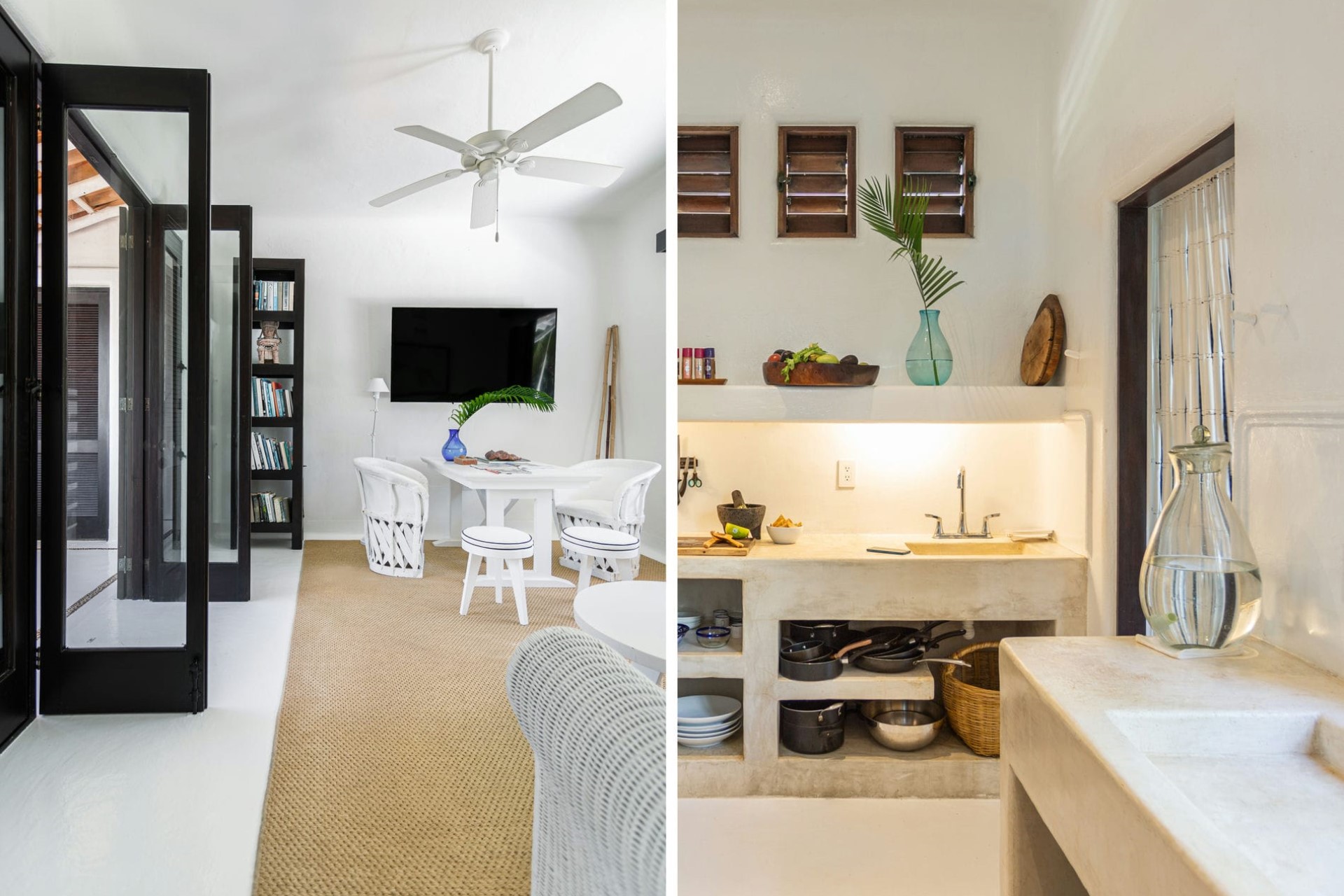 Designed by one of Mexico’s top beach architects, the villa has been carefully decorated in minimalist style by the owner for a relaxed, coastal feel. All the woodwork uses mahogany and other tropical woods from the Yucatan and Chiapas jungles, and there are local Mexican furnishings and decorative pieces throughout.