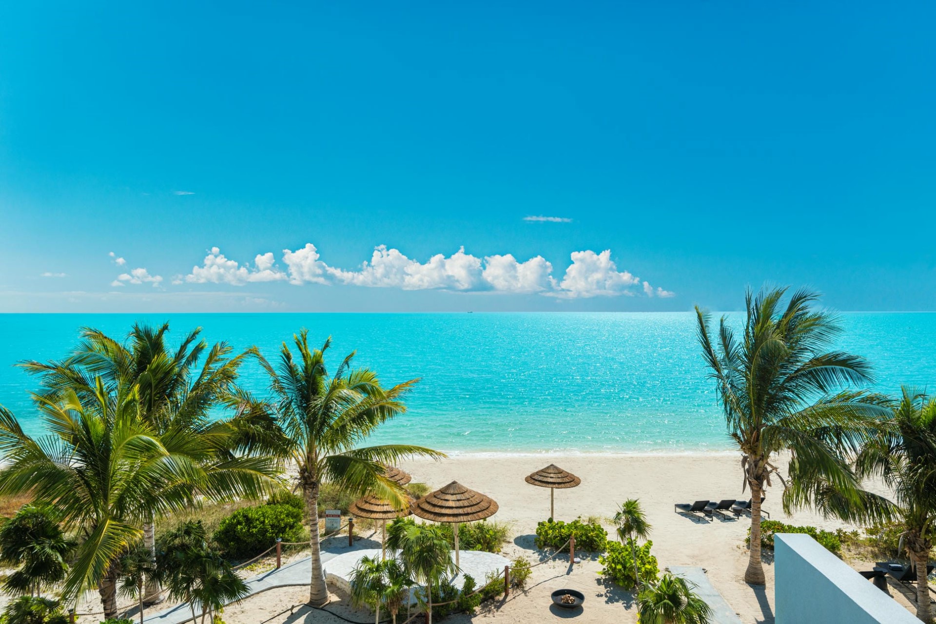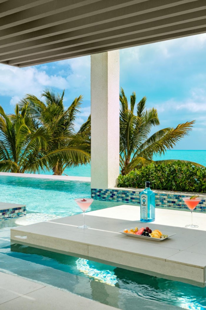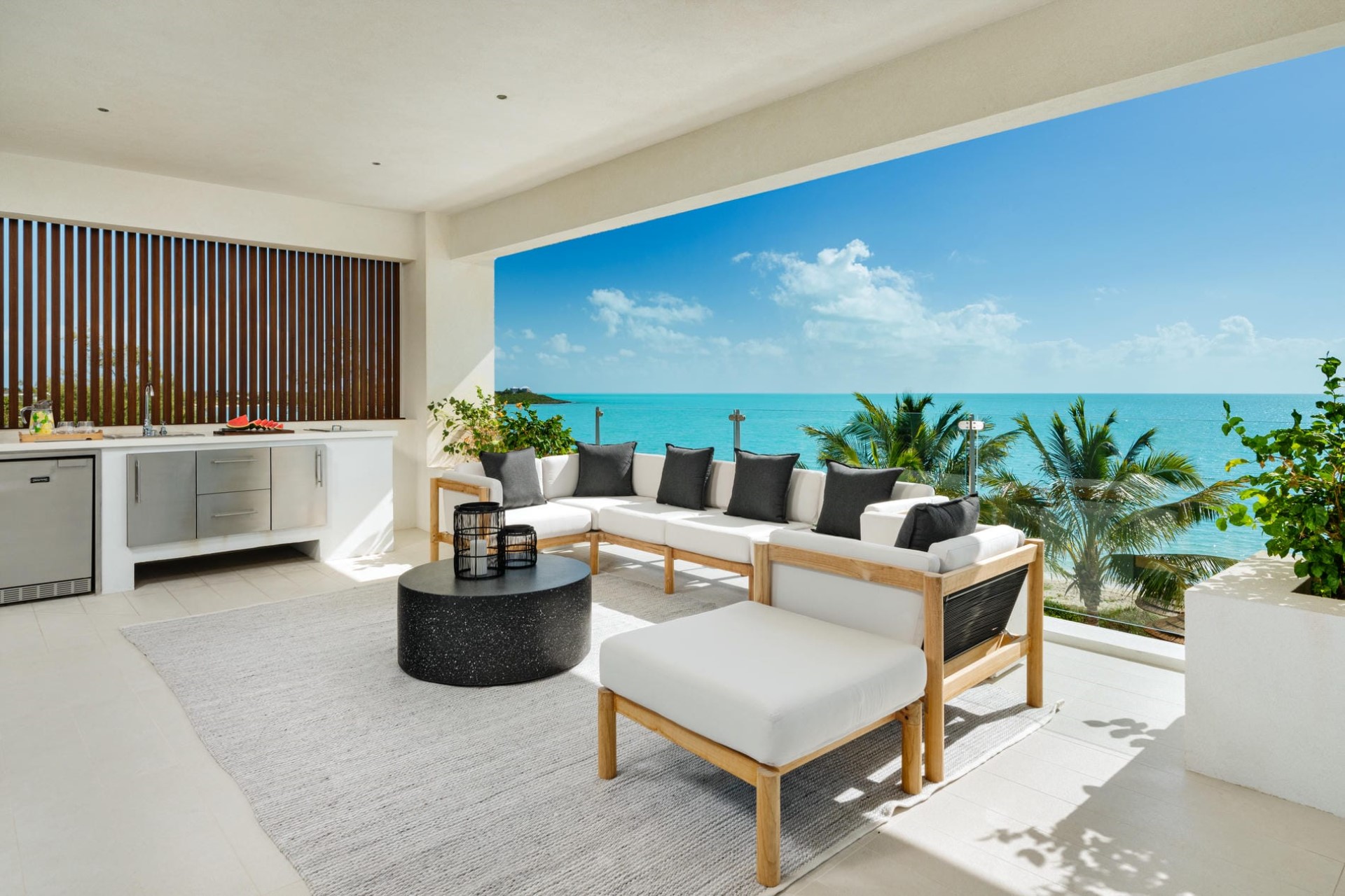 A luxurious beachfront villa in Turks and Caicos with a heated swimming pool and expansive outdoor living spaces