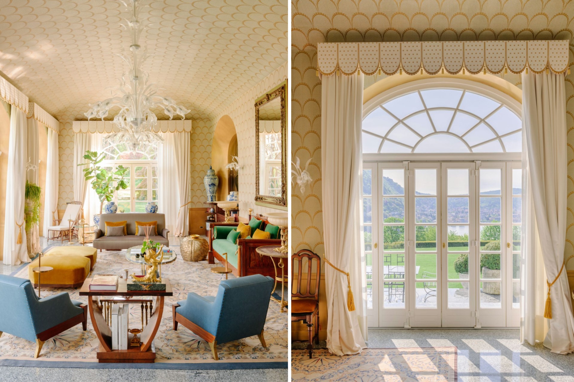 An elegant villa with immaculate gardens and opulent interiors overlooking Lake Como
