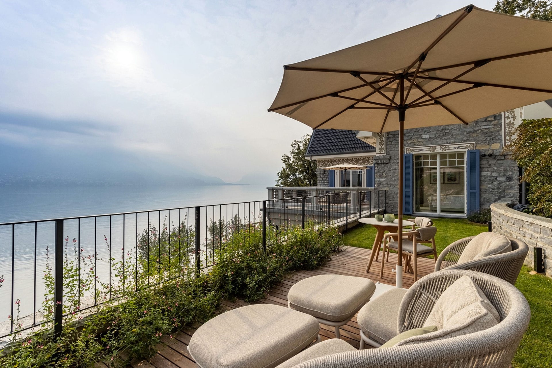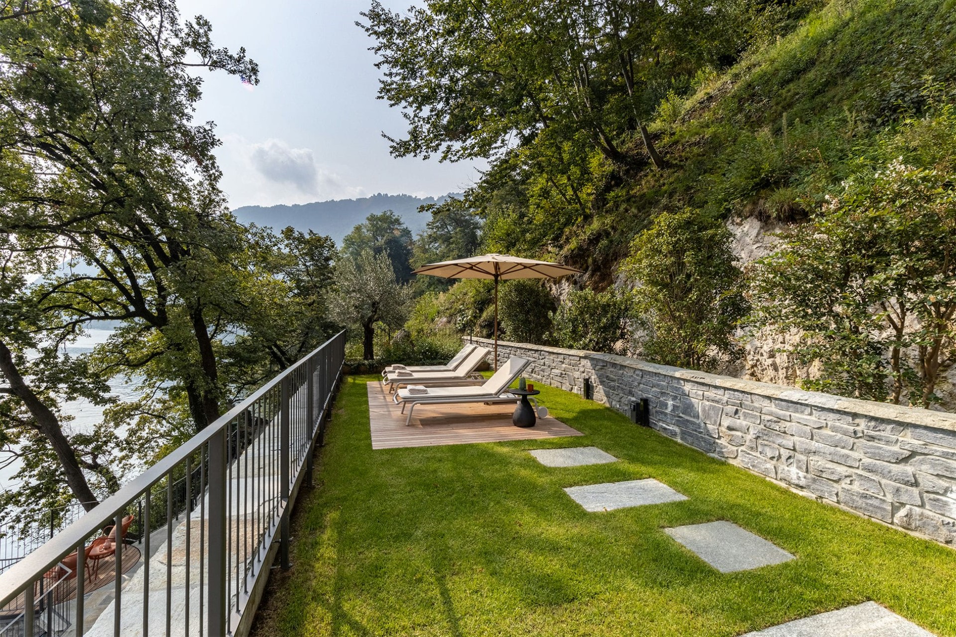 Seven beautifully appointed suites are spread across the villa’s three floors. All benefit from en-suite facilities, and most have terrace access. The master suite on the first floor also boasts a private living room with a sumptuous bathtub, an outdoor shower, and two private balconies with spectacular lake views.