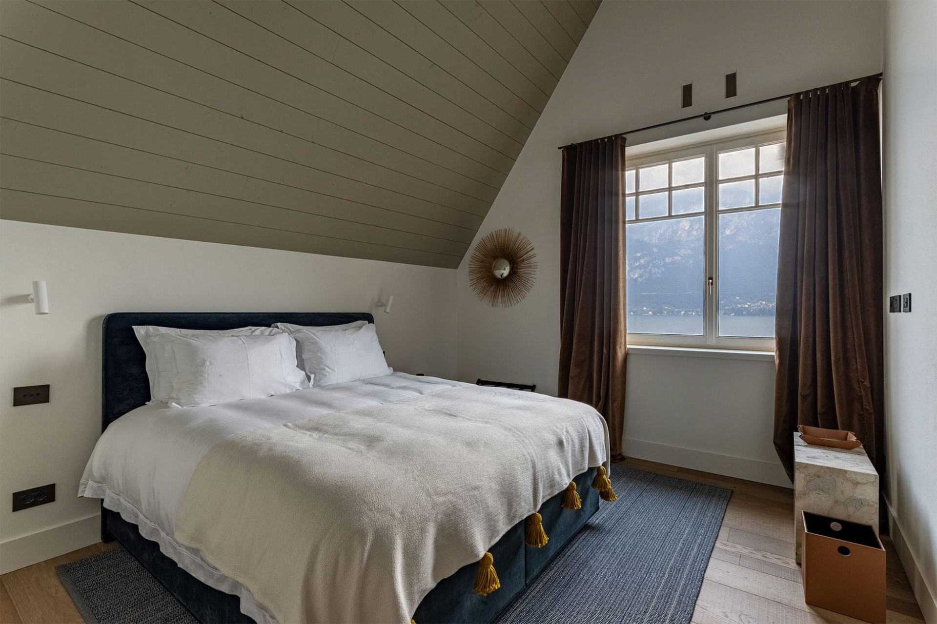 The villa also boasts a private dock, allowing guests the chance to swim in the lake’s crystal-clear waters or enjoy day trips on the villa’s boat.
