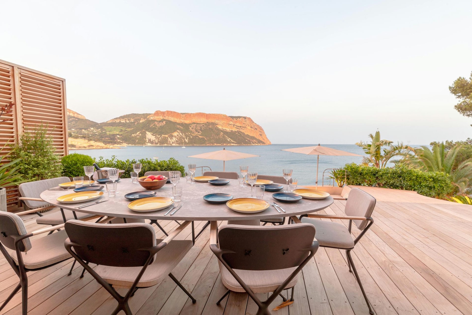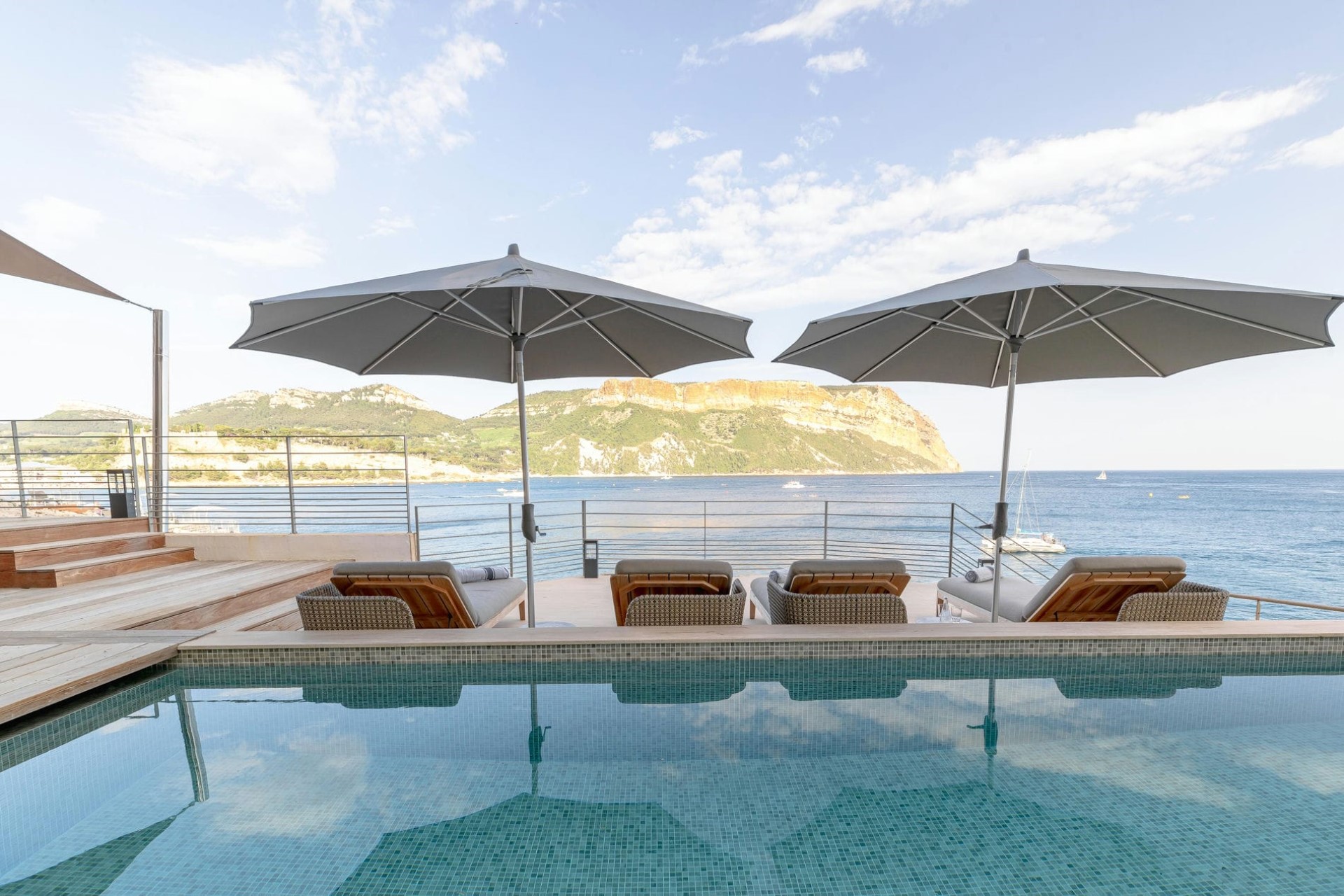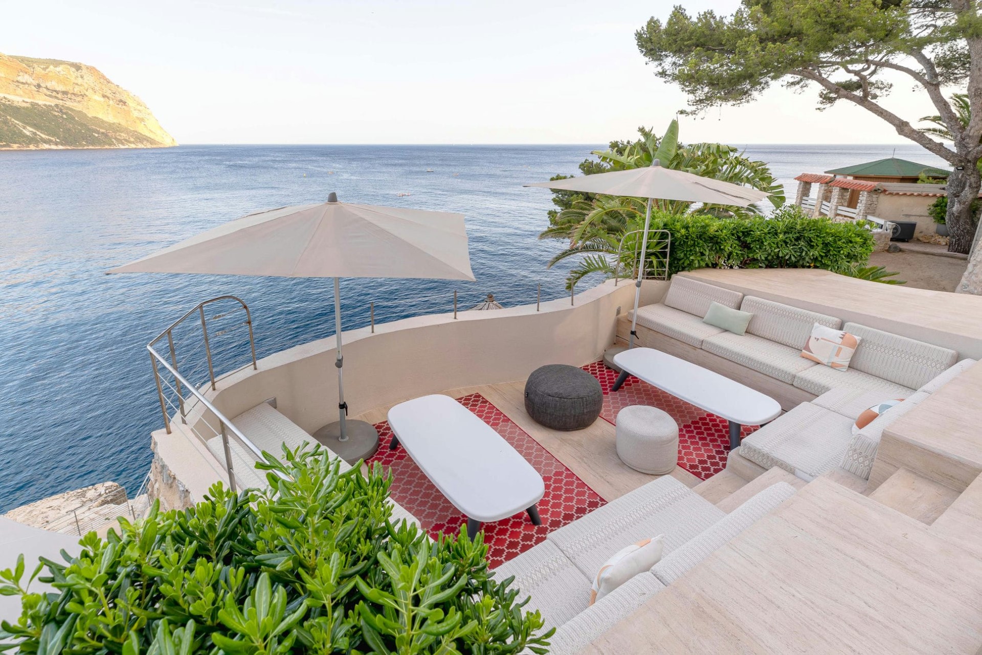 The villa offers direct sea access via a rock-cut path through terraced gardens leading to a private harbour. Guests can dive right into the sparkling sea or hire a skippered boat to explore the stunning Calanques and beyond.