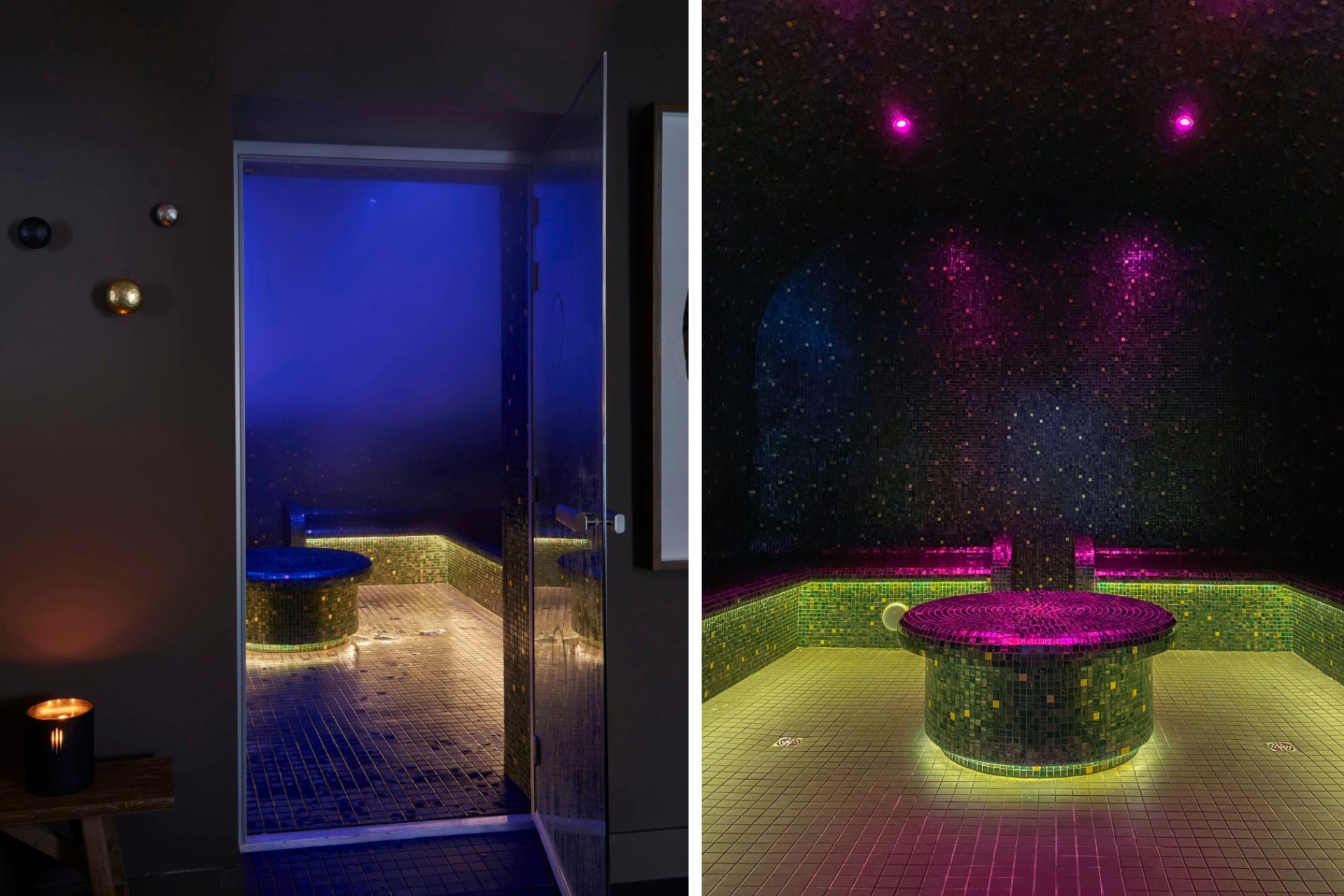 In the Lower Villa, guests will find two more en-suite bedrooms on the second floor, each with private balconies, plus a private massage room. Heading down to the first floor, there is a spacious living area with comfortable lounge seating, an elegant dining table, and another fully-equipped dining kitchen. Adjoining the living room is a fitness room filled with Technogym equipment and a hammam for post-workout relaxation. All rooms on this floor lead out to the main terrace and first pool.