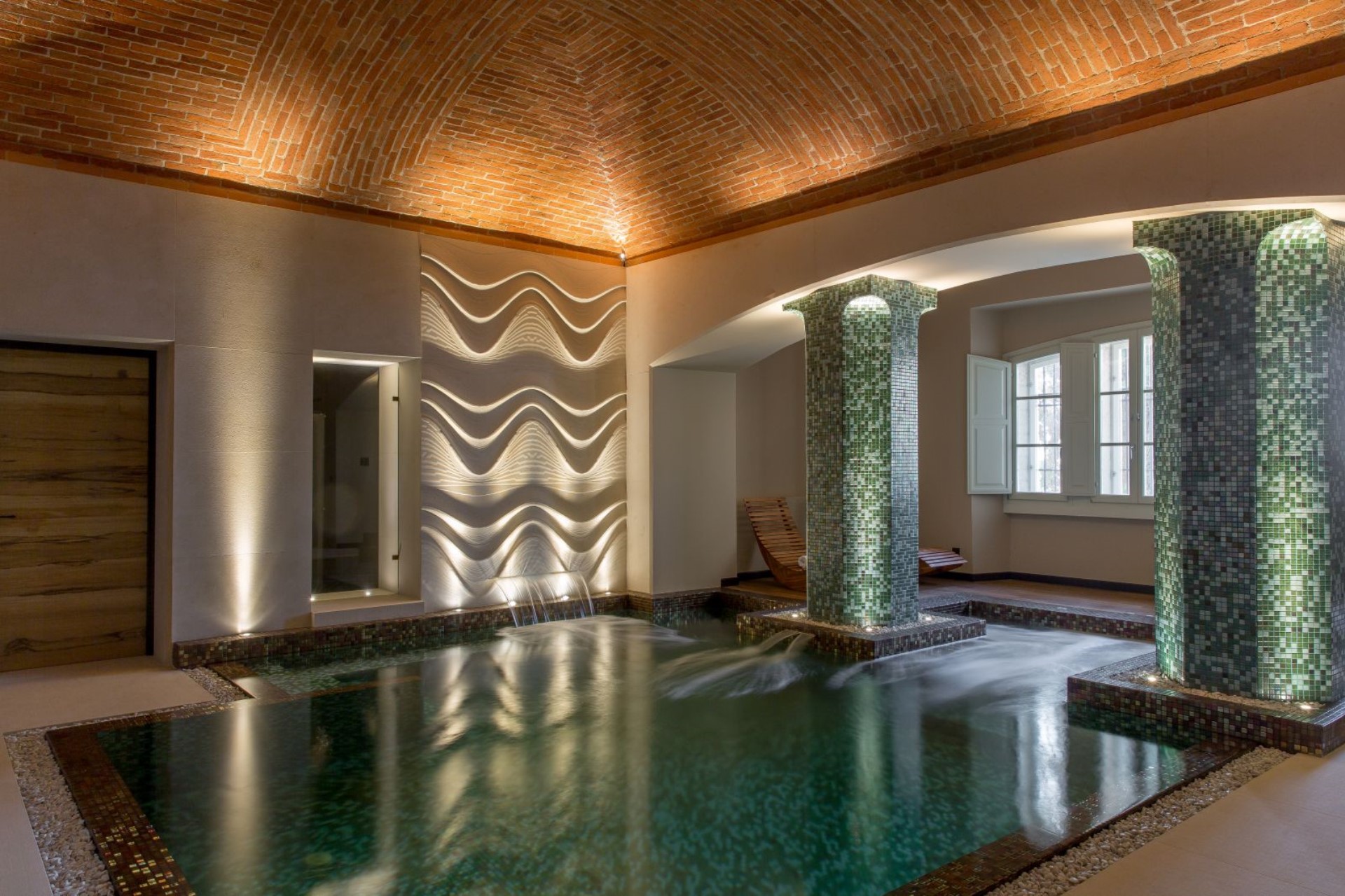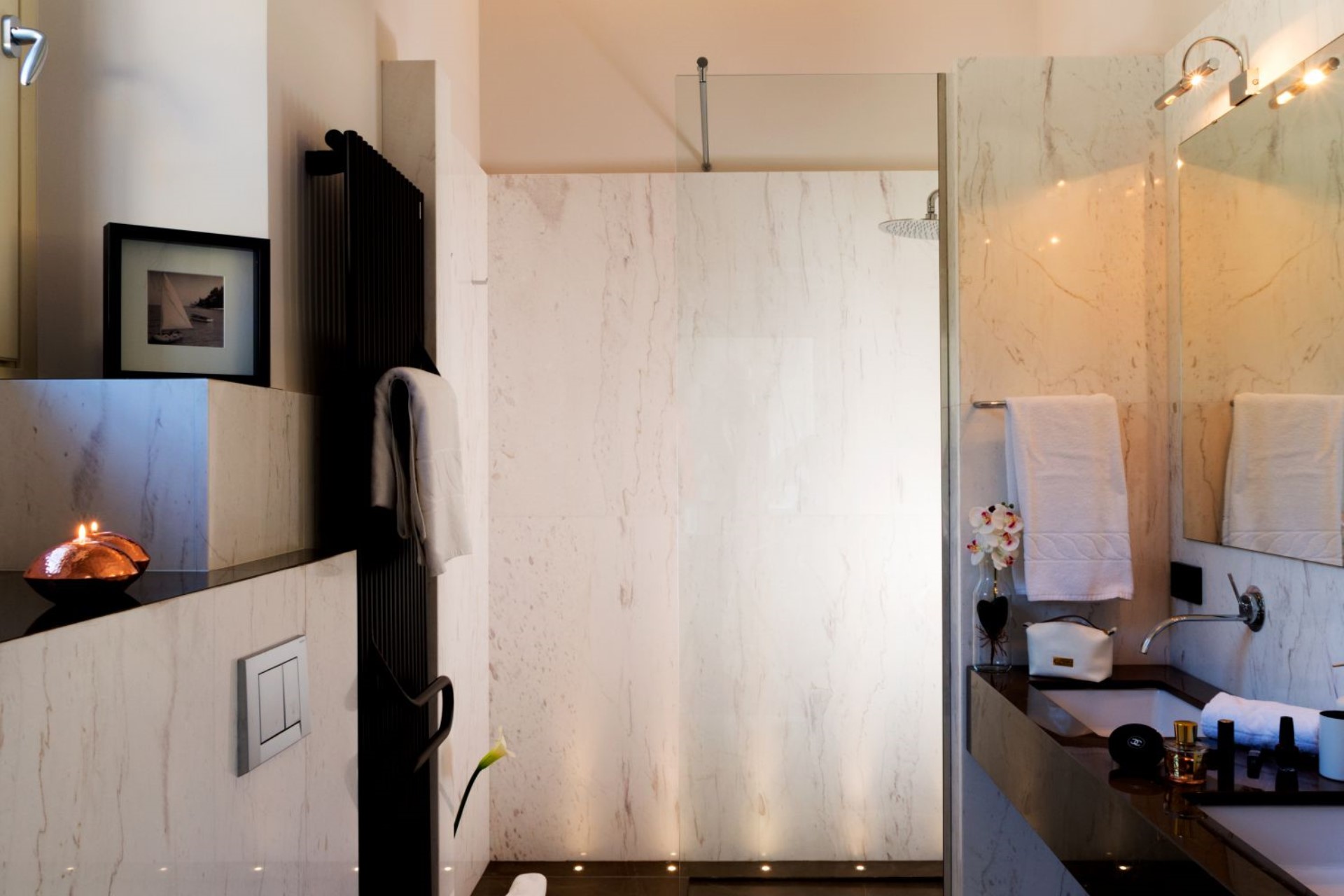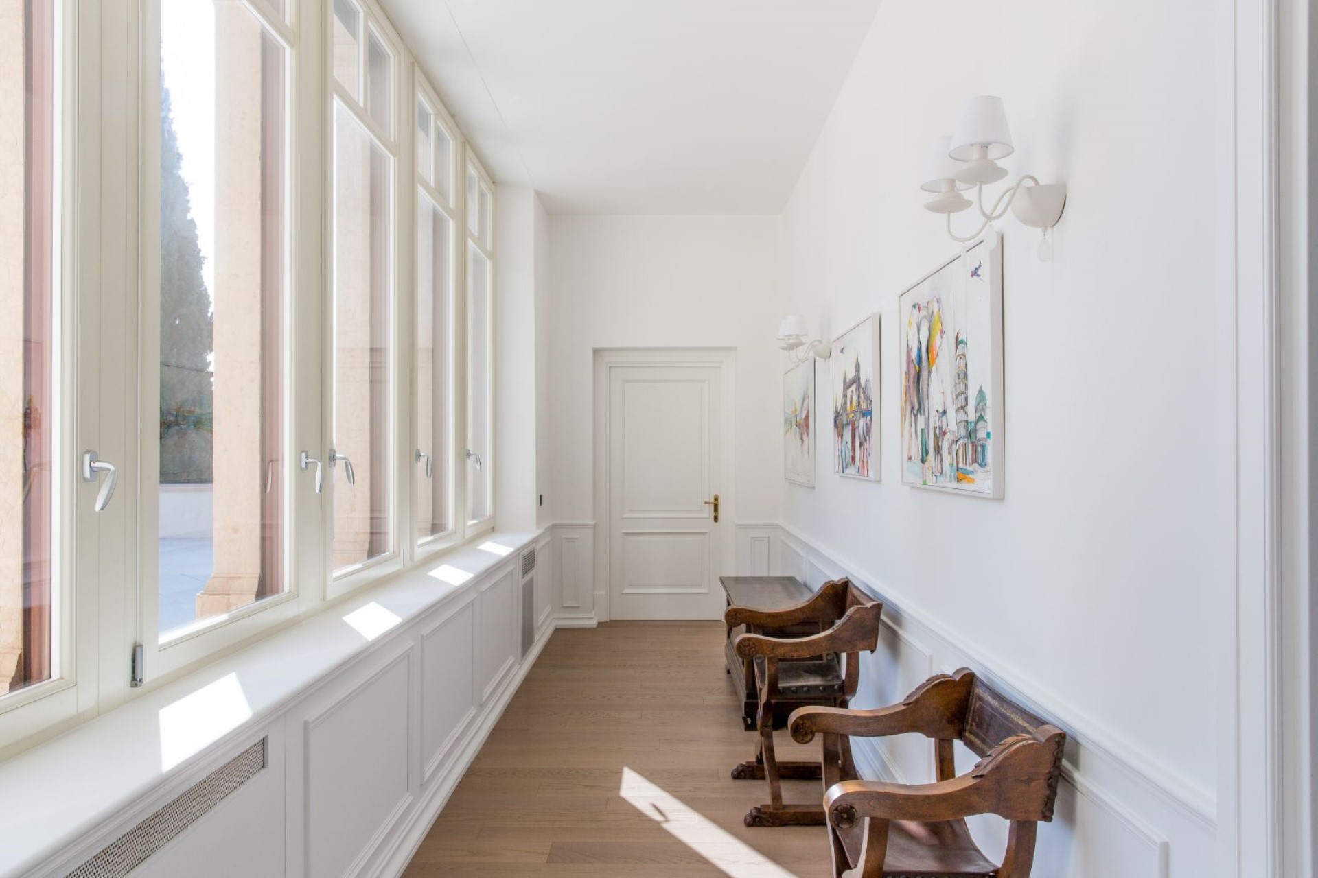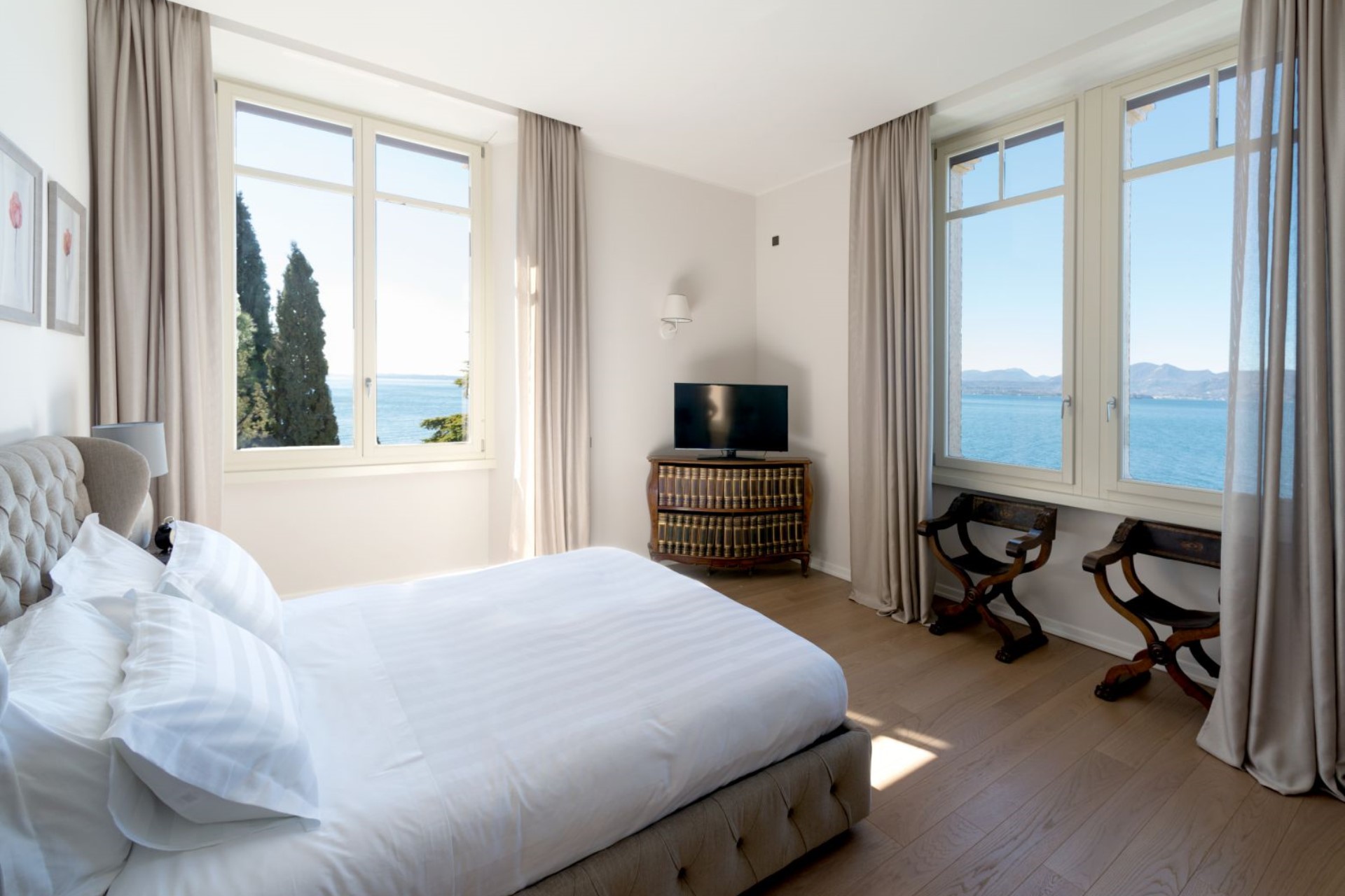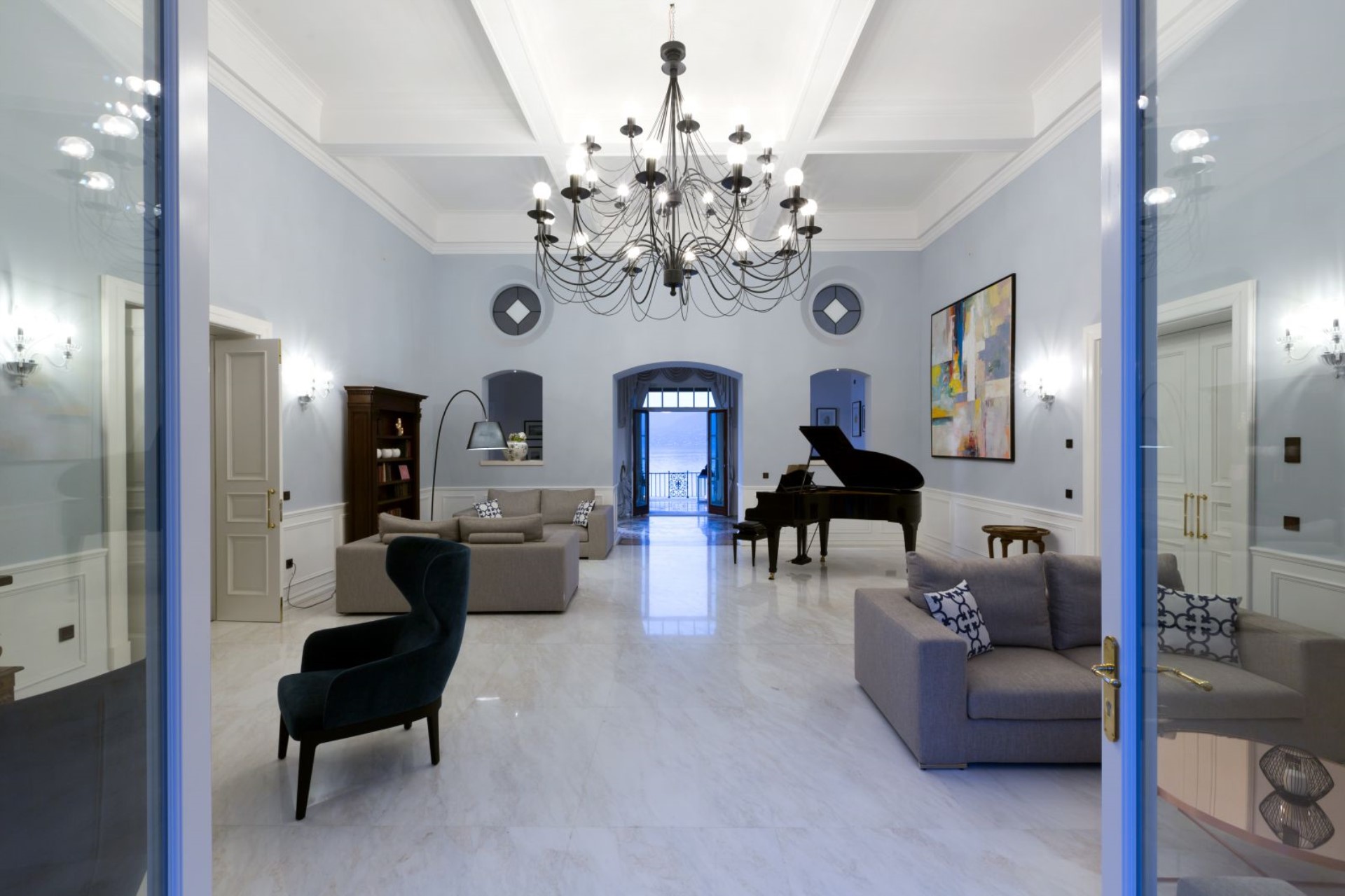 In the main villa, historic and classical elements are perfectly fused with contemporary touches and modern amenities. The use of pastel shades throughout offers a sense of peace and calm, and emphasises the brilliant hues of the lake.