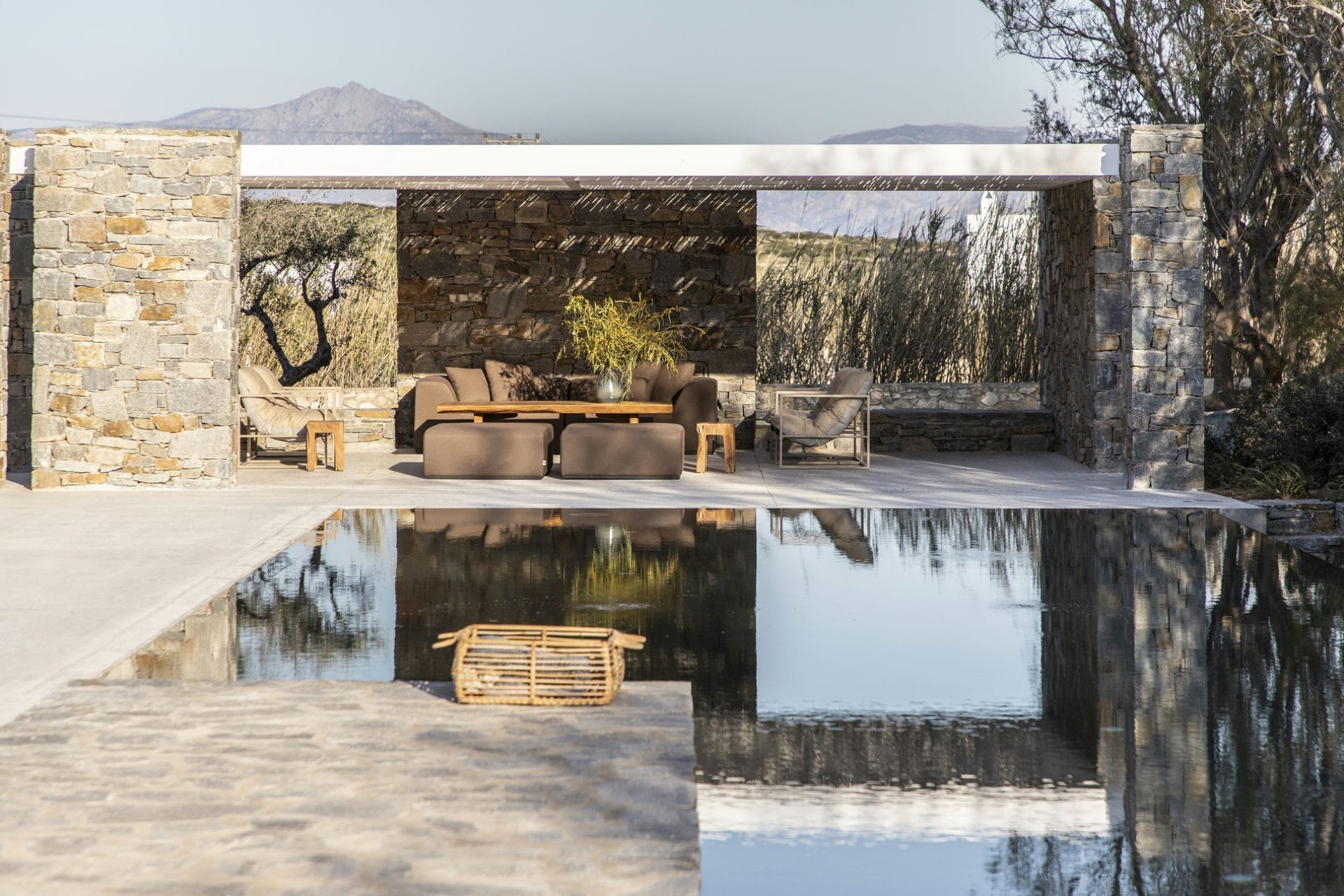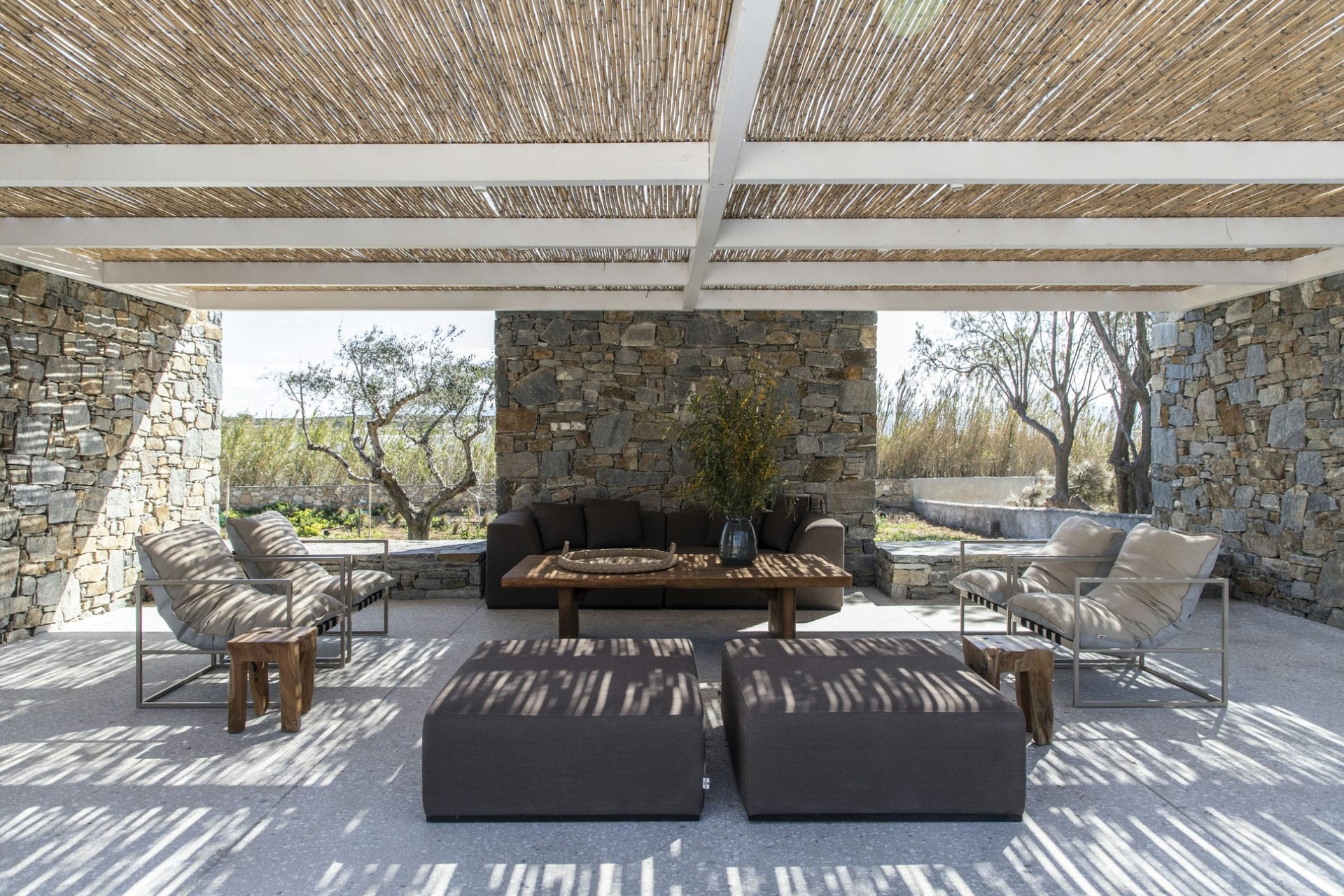 Surrounded by native trees and plants, the villa’s pool and terrace provide seclusion and privacy, perfect for peaceful days spent basking in the sunshine from one of the comfortable sun loungers or enjoying a holiday read from under the bamboo pergola.