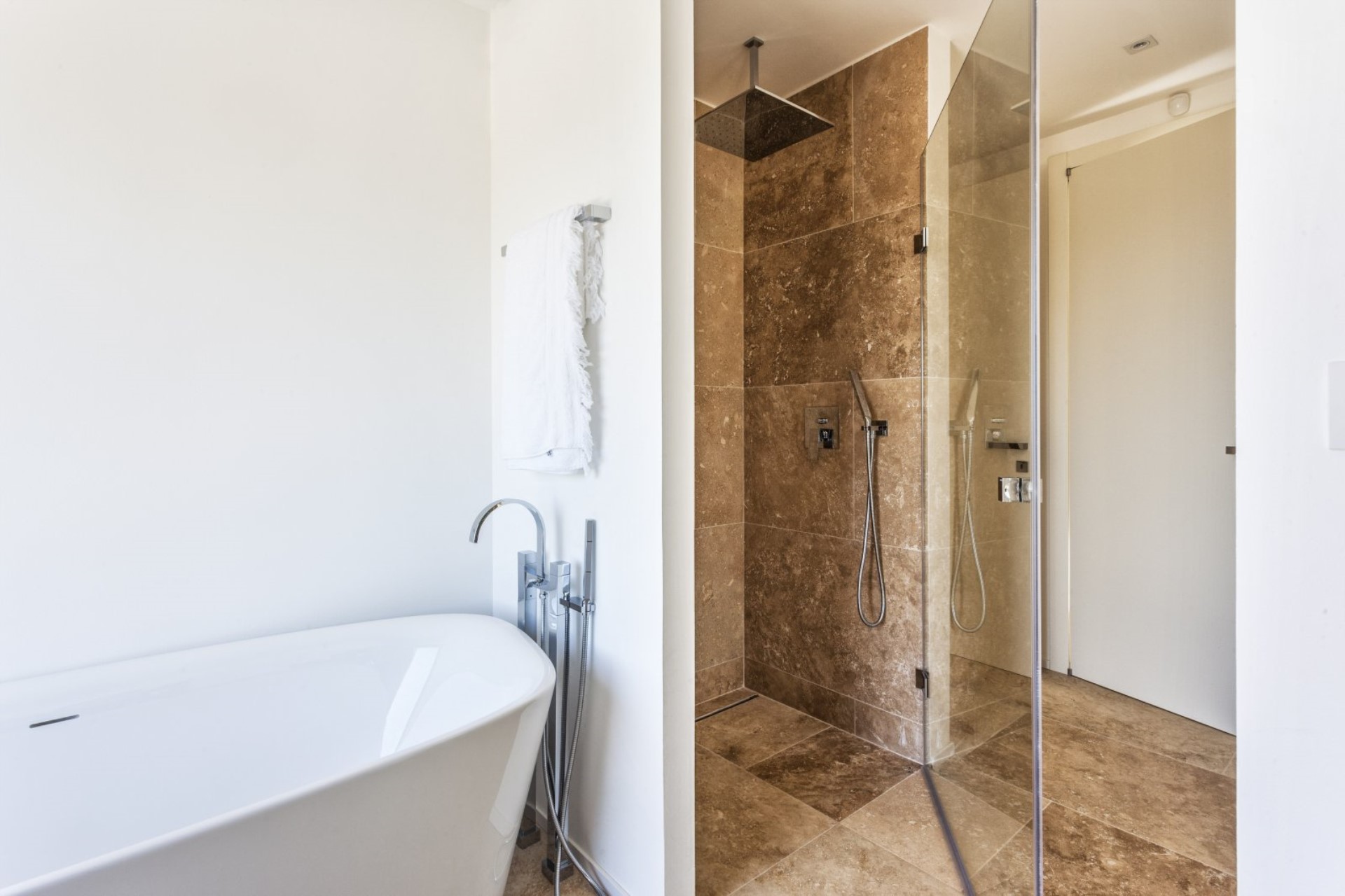 The three independent luxury apartments are located on the same estate, but are independent of the main villa. Each apartment has a private entrance, a terrace and a fully equipped kitchen. The three apartments have a total of five bedrooms. The first apartment’s two double bedrooms have en-suite bathrooms, and the second apartment’s two double bedrooms share a bathroom. The third apartment has a bedroom with an en-suite bathroom.