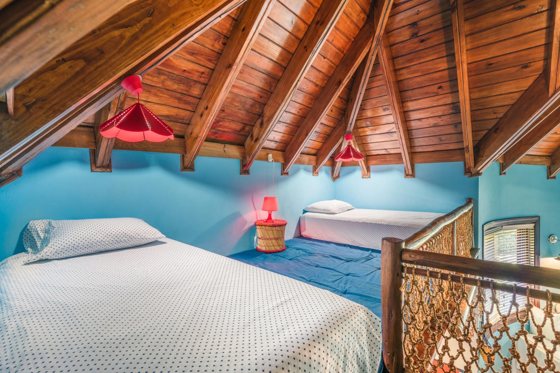 Bedroom 4 – 2 x double bed + 1 x twin bed + loft with 2 x twin bed, and en-suite bathroom with dual vanity & shower