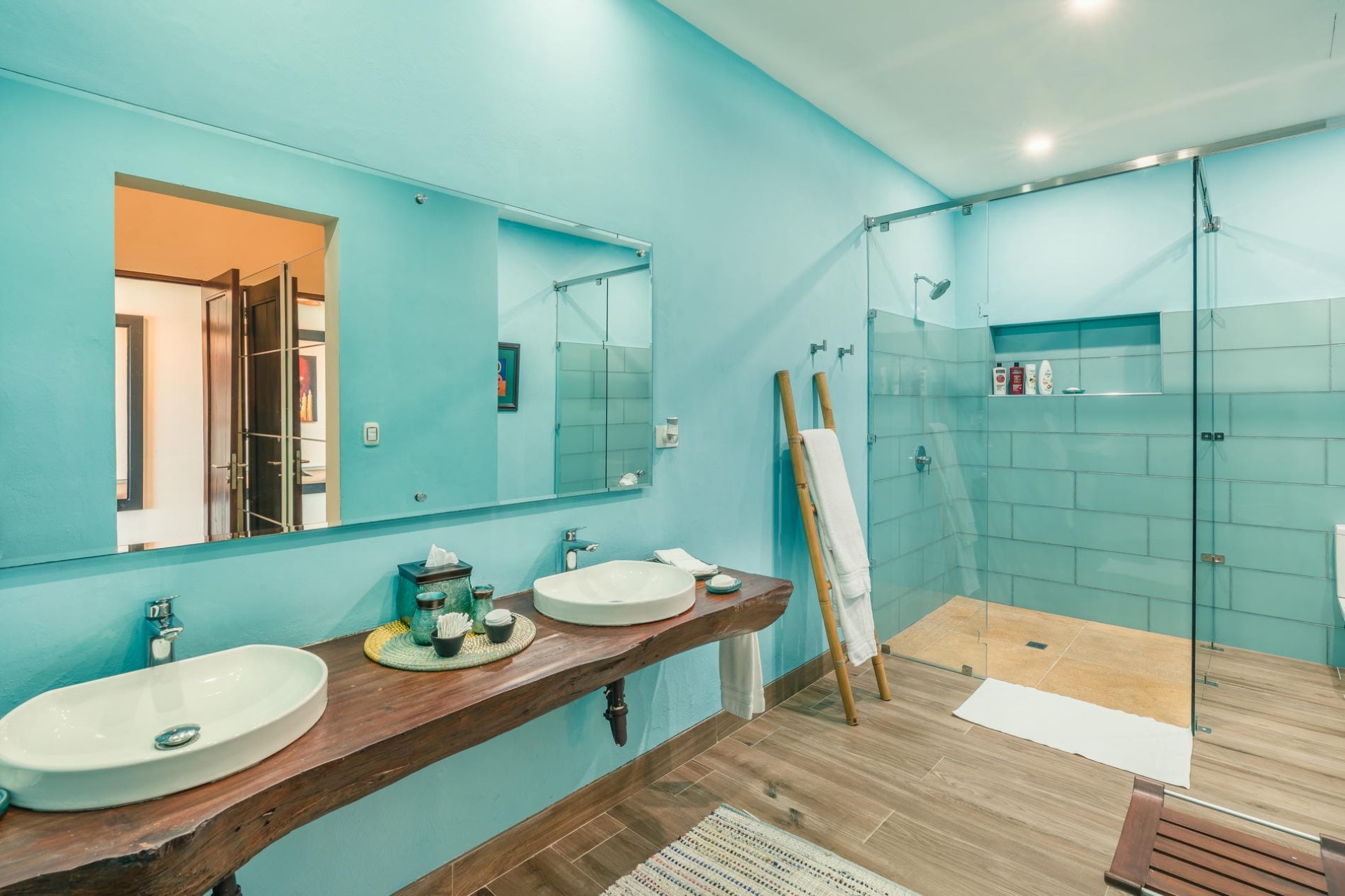 Bedroom 7 – 2 x queen-size bed, en-suite bathroom with dual vanity & shower, and balcony access