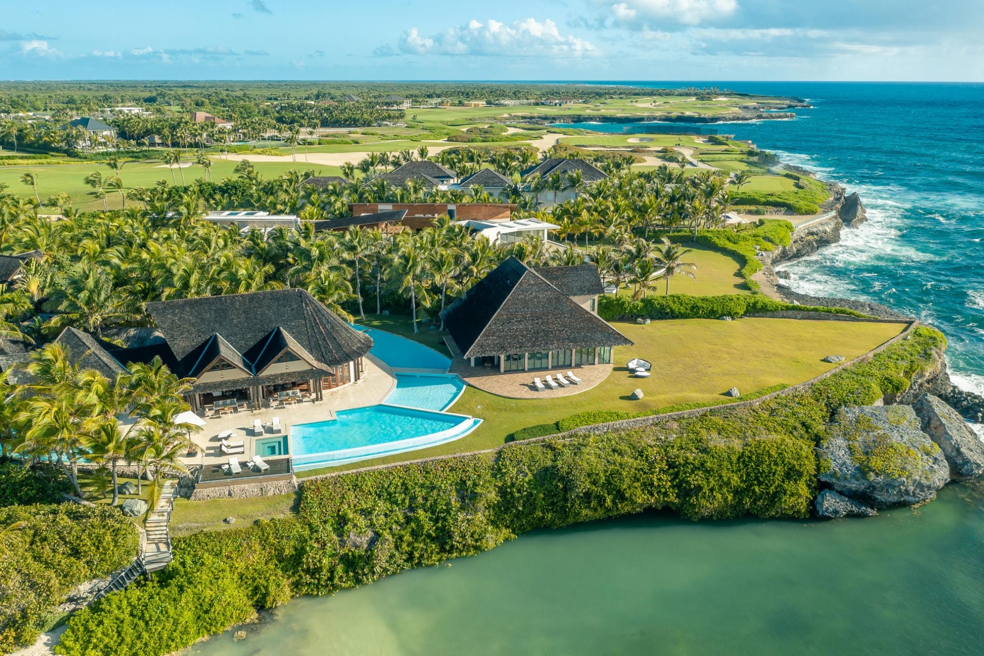 A clifftop villa with a golf front location, direct beach access, and spectacular ocean views