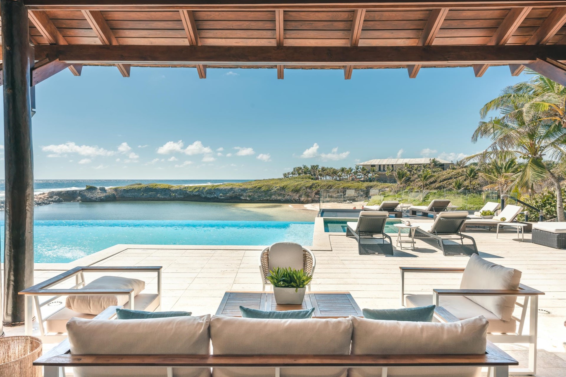 Hidden amongst the palm trees on the cliff edge, Villa Corales 28 is a beautiful property with enviable ocean views within the Dominican Republic’s exclusive Puntacana Resort & Club.