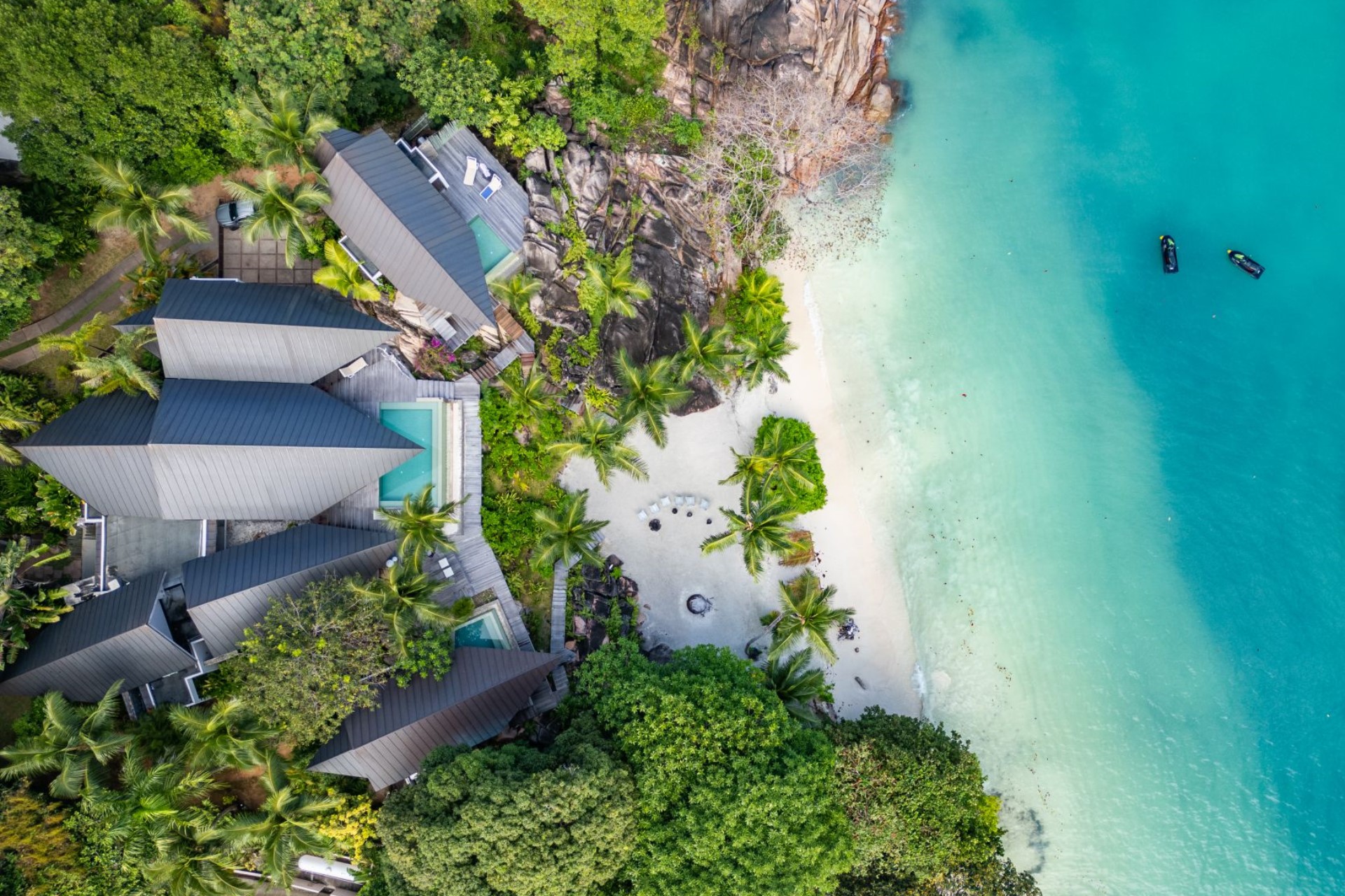 Guests can enjoy their own private slice of sand, ideal for beach parties or evenings spent around a flickering beach fire.