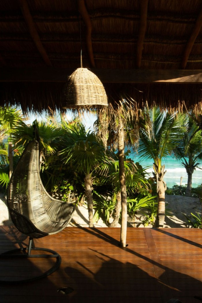 On the lower terrace, there is plenty more outdoor seating as well as day beds, hanging seats and hammocks for true beachside relaxation.