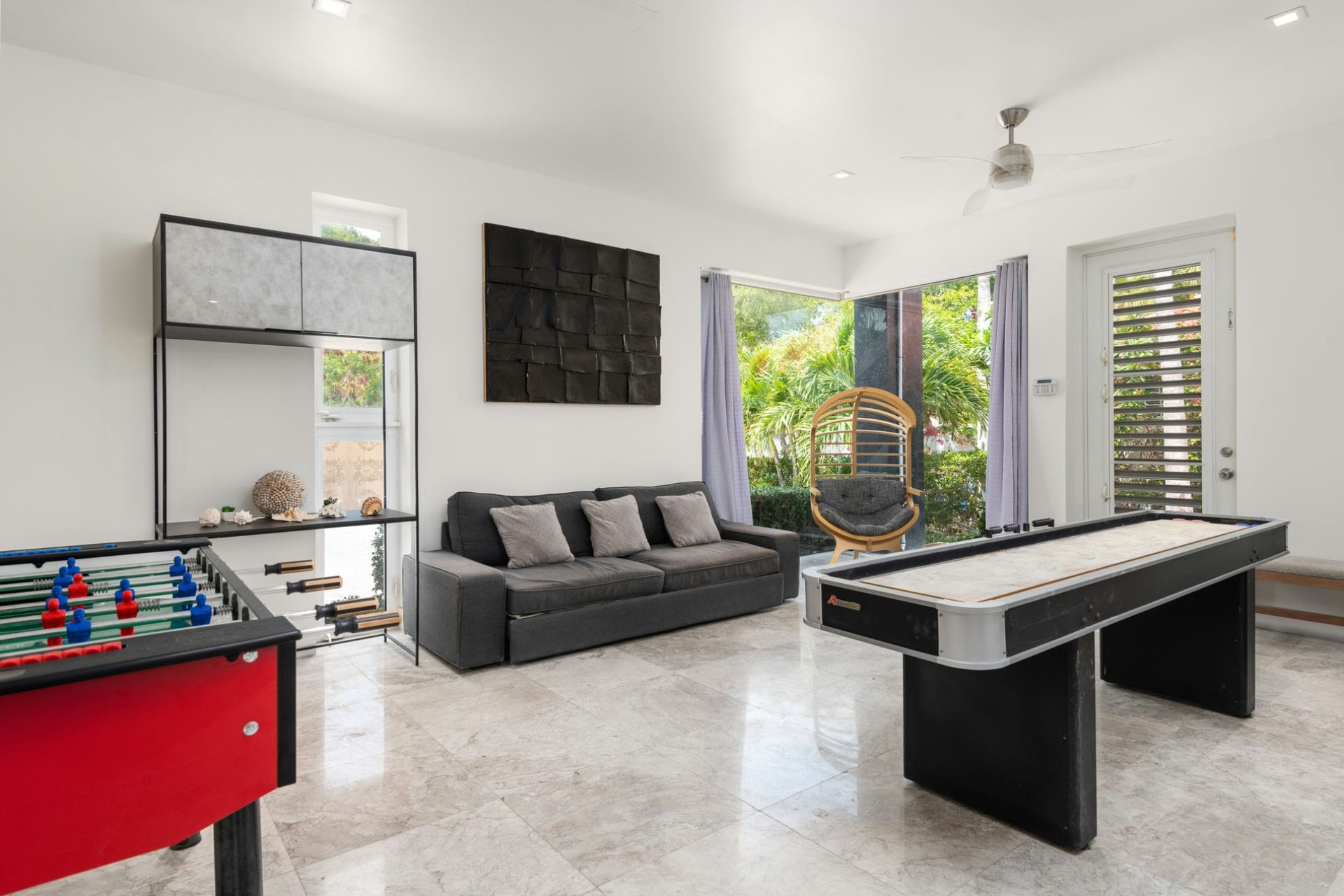 The villa also boasts a games room with table football and table tennis sets, a fully-equipped gym, and paddle boards and kayaks for guests to enjoy.