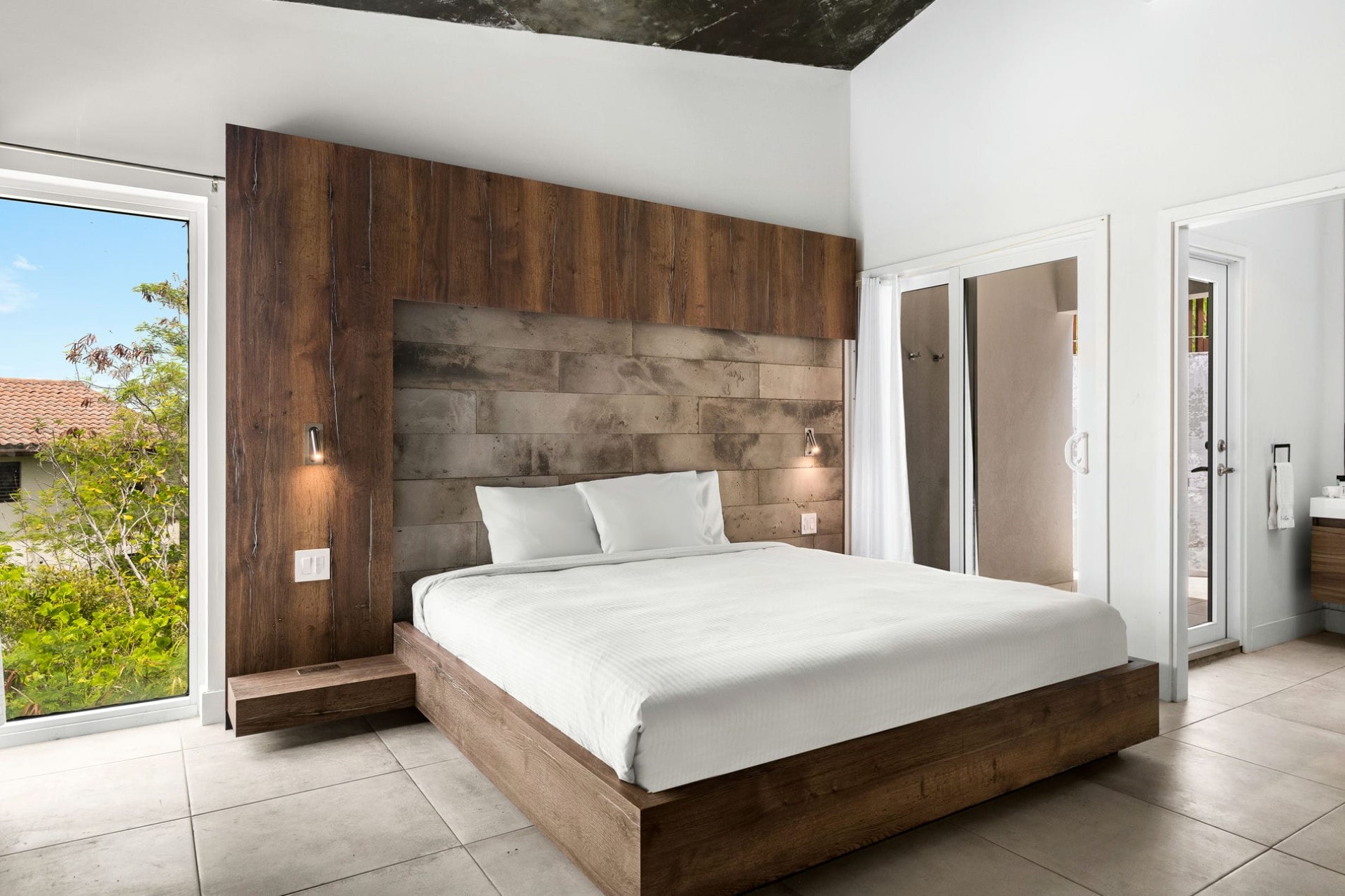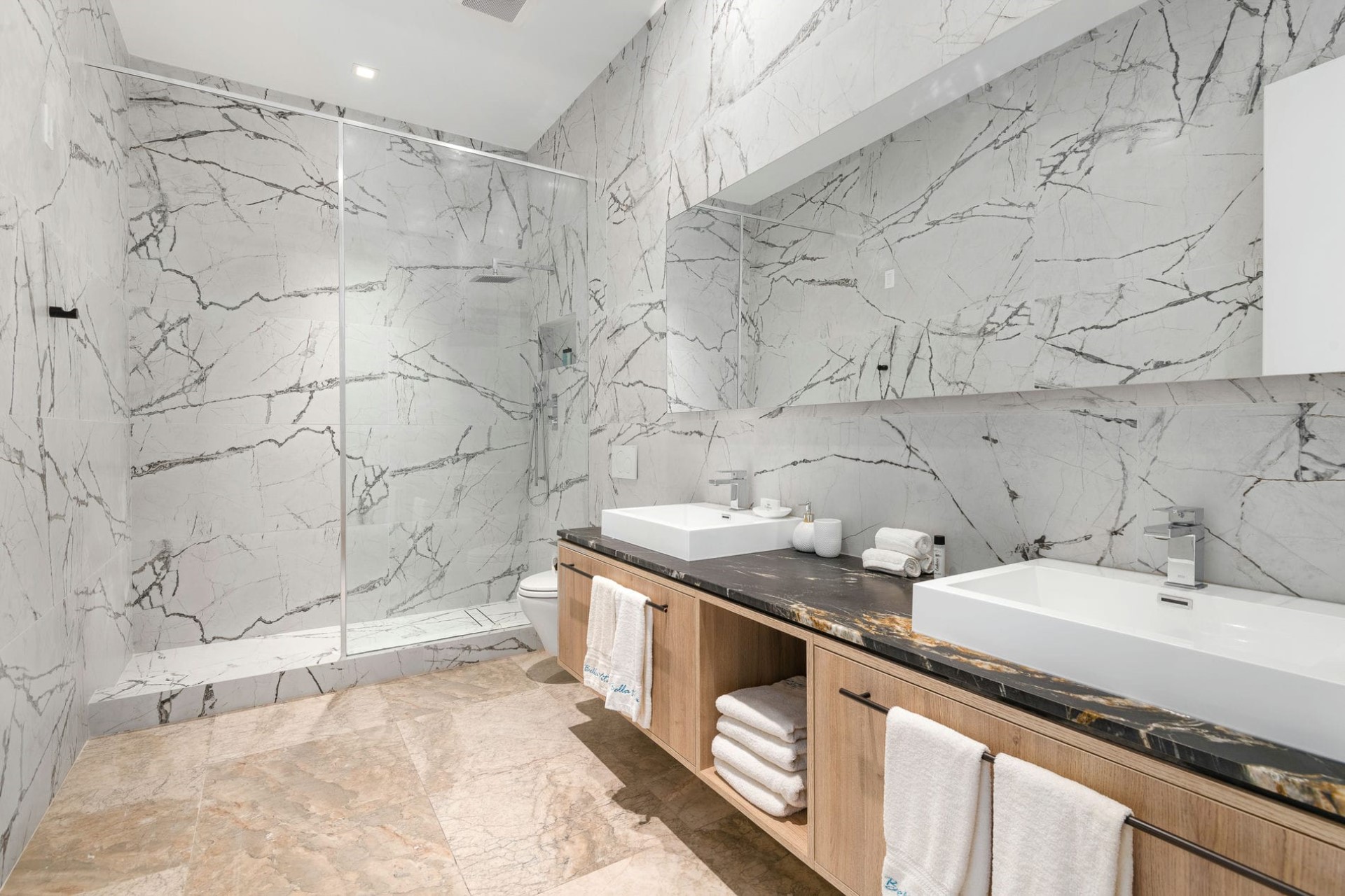 Bedroom 7 – king-size bed, en-suite bathroom with double vanity & shower, and private terrace with ocean views