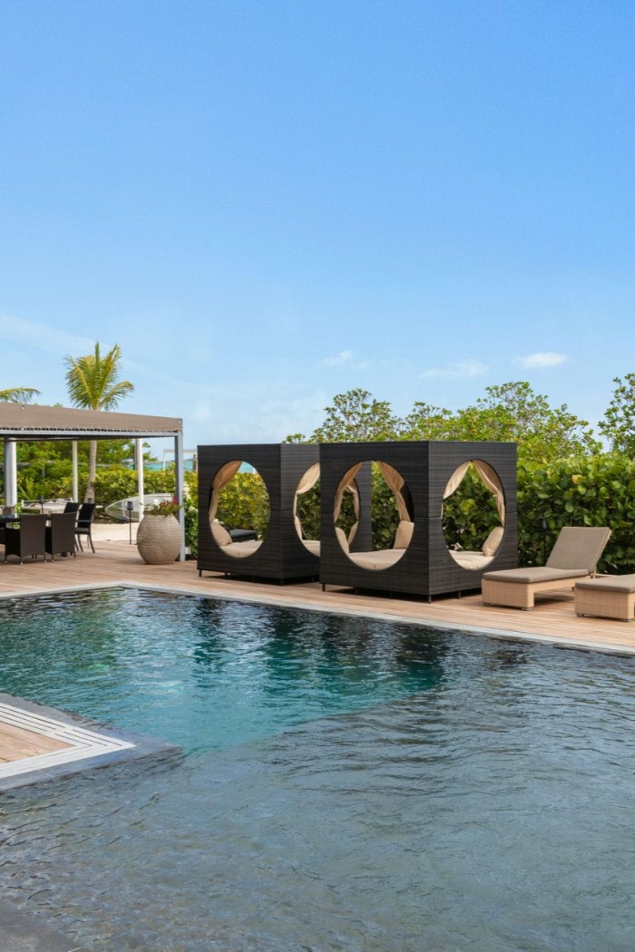 A contemporary villa with an infinity pool and direct access to the white sand and turquoise water of Babalua Beach
