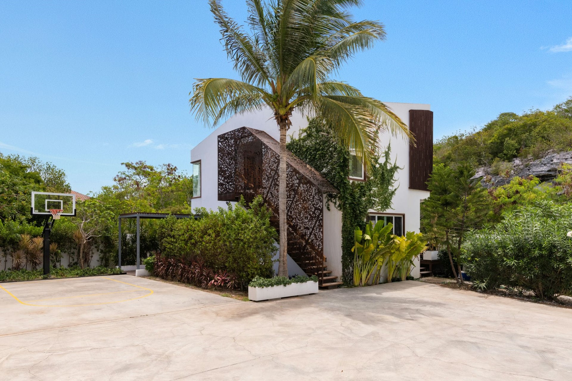 On the other side of the villa, younger guests will love the basketball half-court and spacious paved area, perfect for kicking a ball around.