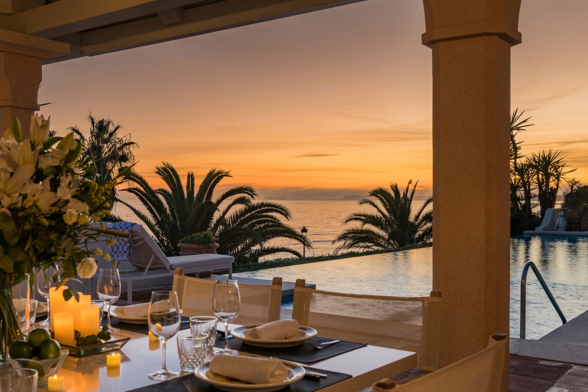 A 20-metre heated infinity pool overlooks the sea, perfect for a refreshing dip, laps swimming, or topping up a tan on the poolside loungers. The villa also features a second pool tucked away near the guest house, perfect for kids to splash around in.