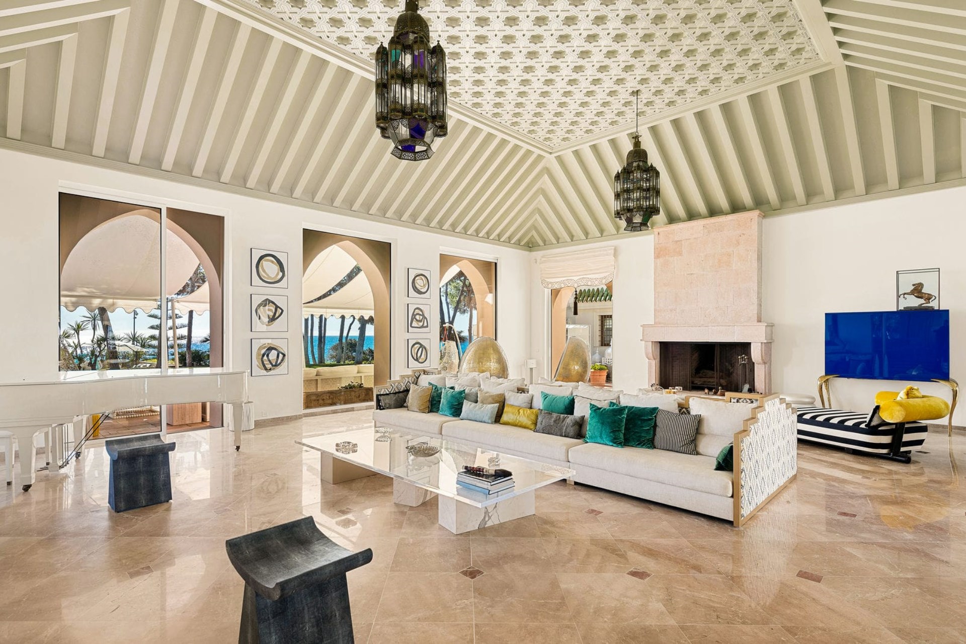 Villa El Rincon enjoys a beachfront location in the heart of Marbella’s Golden Mile, between the picturesque Old Town and the upscale Puerto Banus, with its superyacht-lined marina.