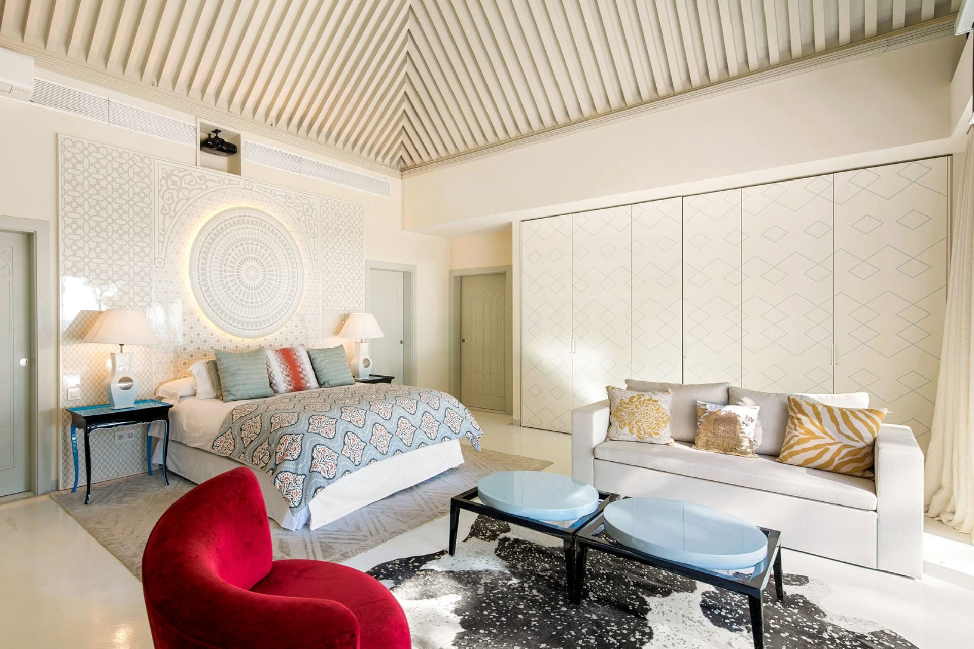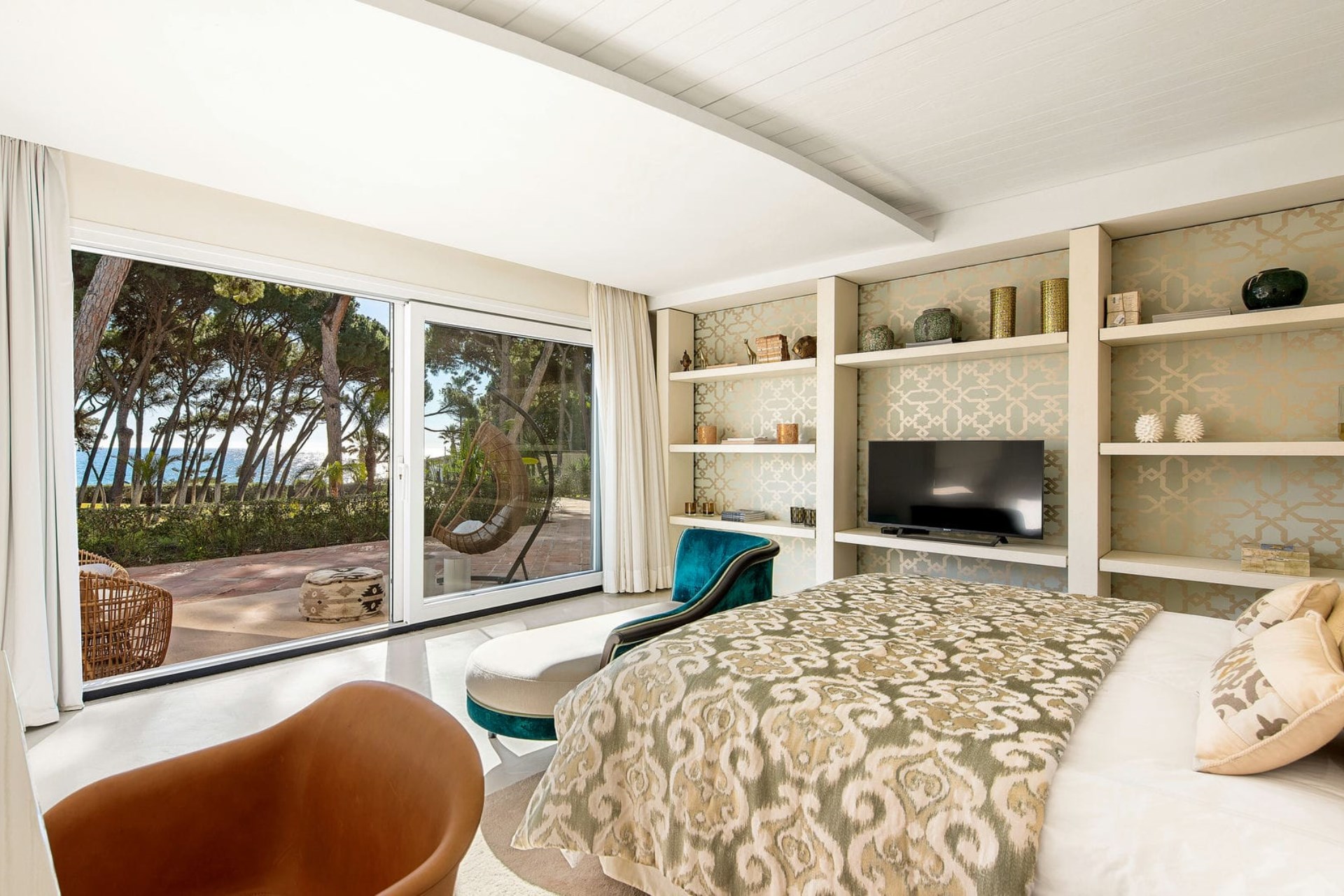 Master Bedroom 2 – king-size bed, living area, en-suite bathroom with bathtub & separate shower, and terrace access, and sea views (adjoins Bedroom 9)