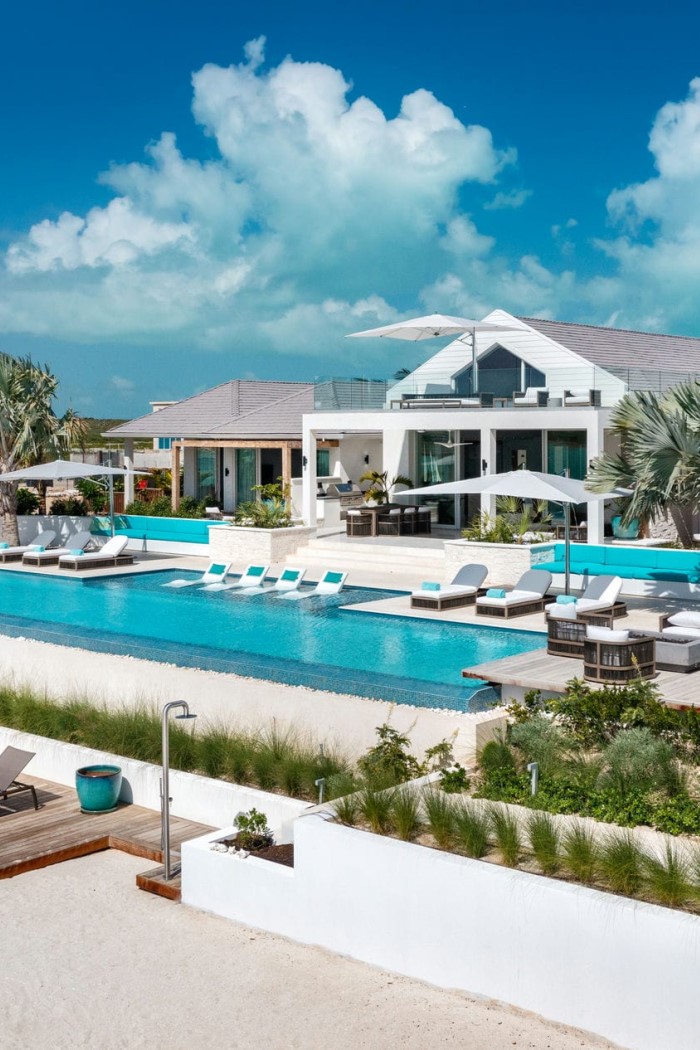 A luxurious beachfront villa in Turks and Caicos with a private heated pool and expansive outdoor living areas