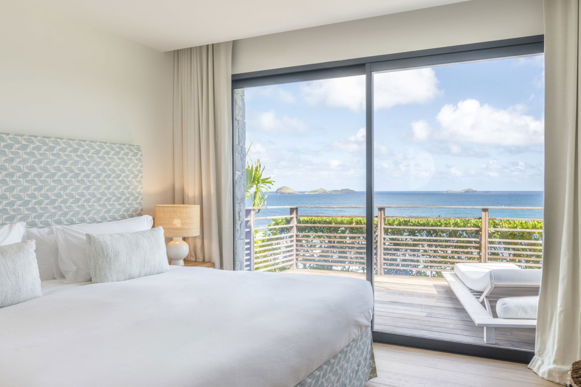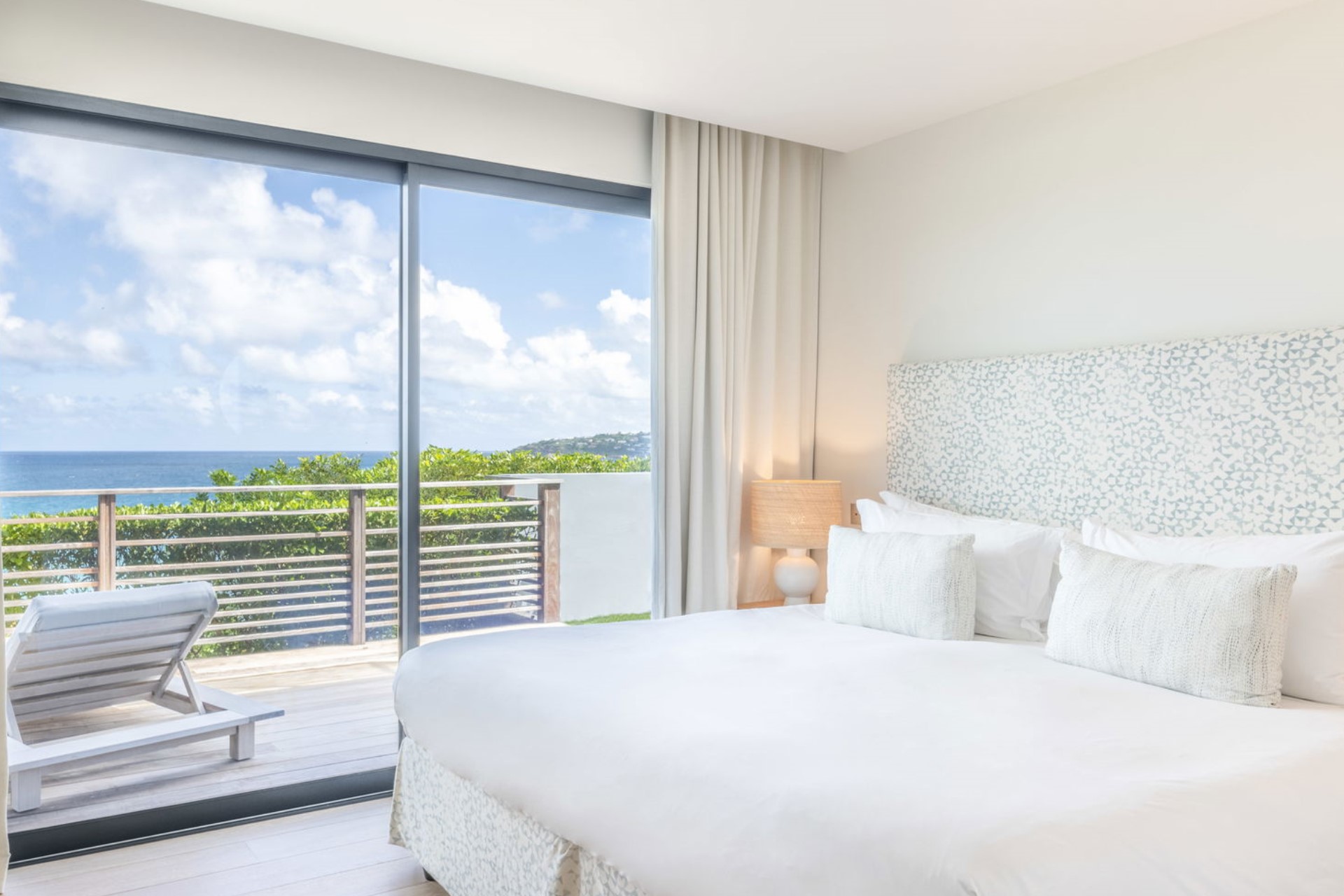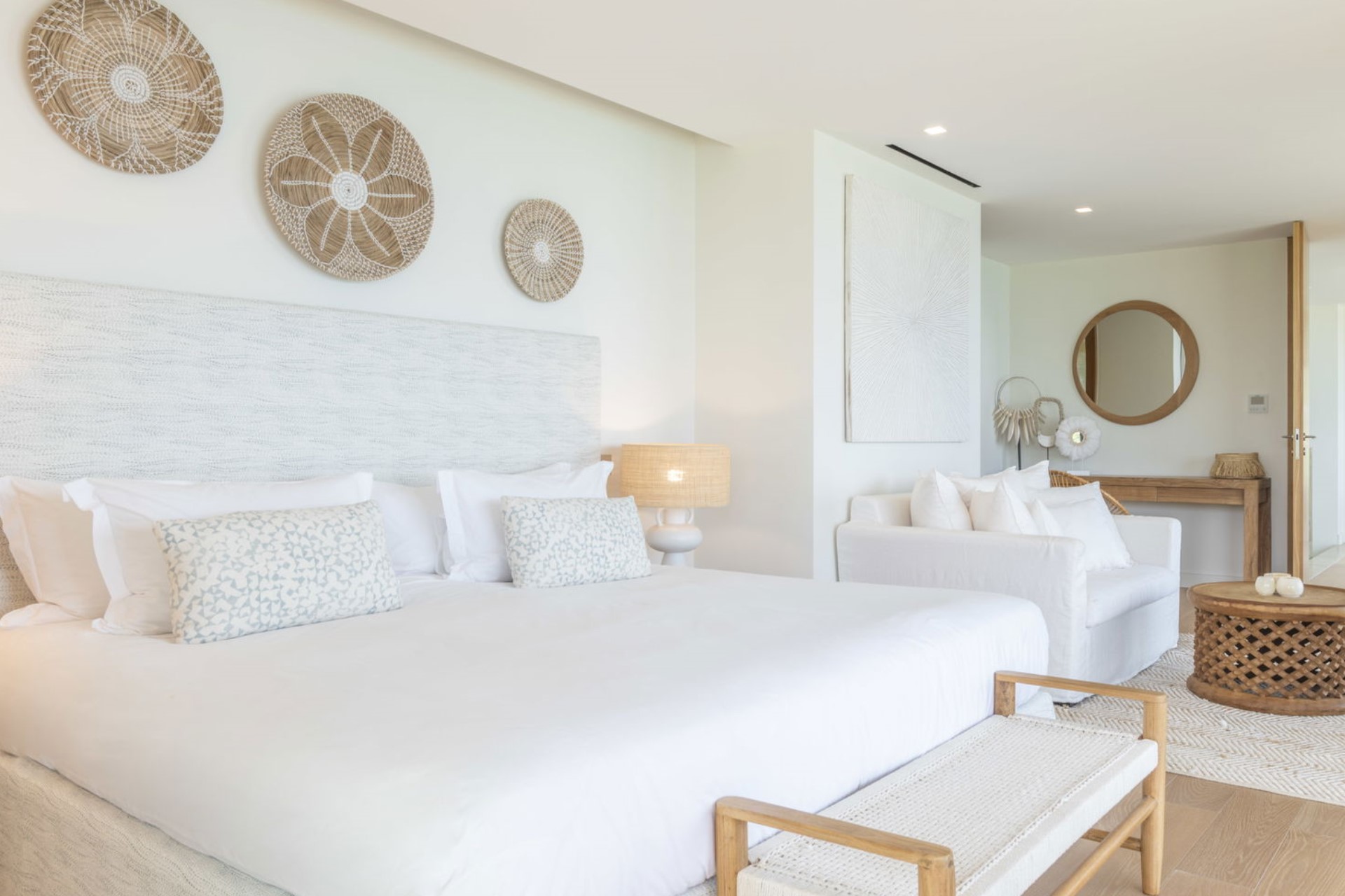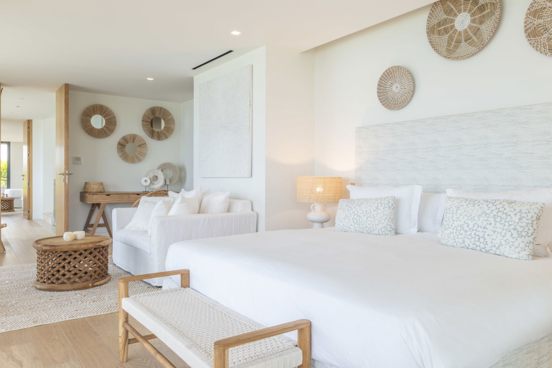 Bedroom 3 – king-size bed, lounge area, dressing room, en-suite bathroom with dual vanity & outdoor shower, shared terrace with ocean view