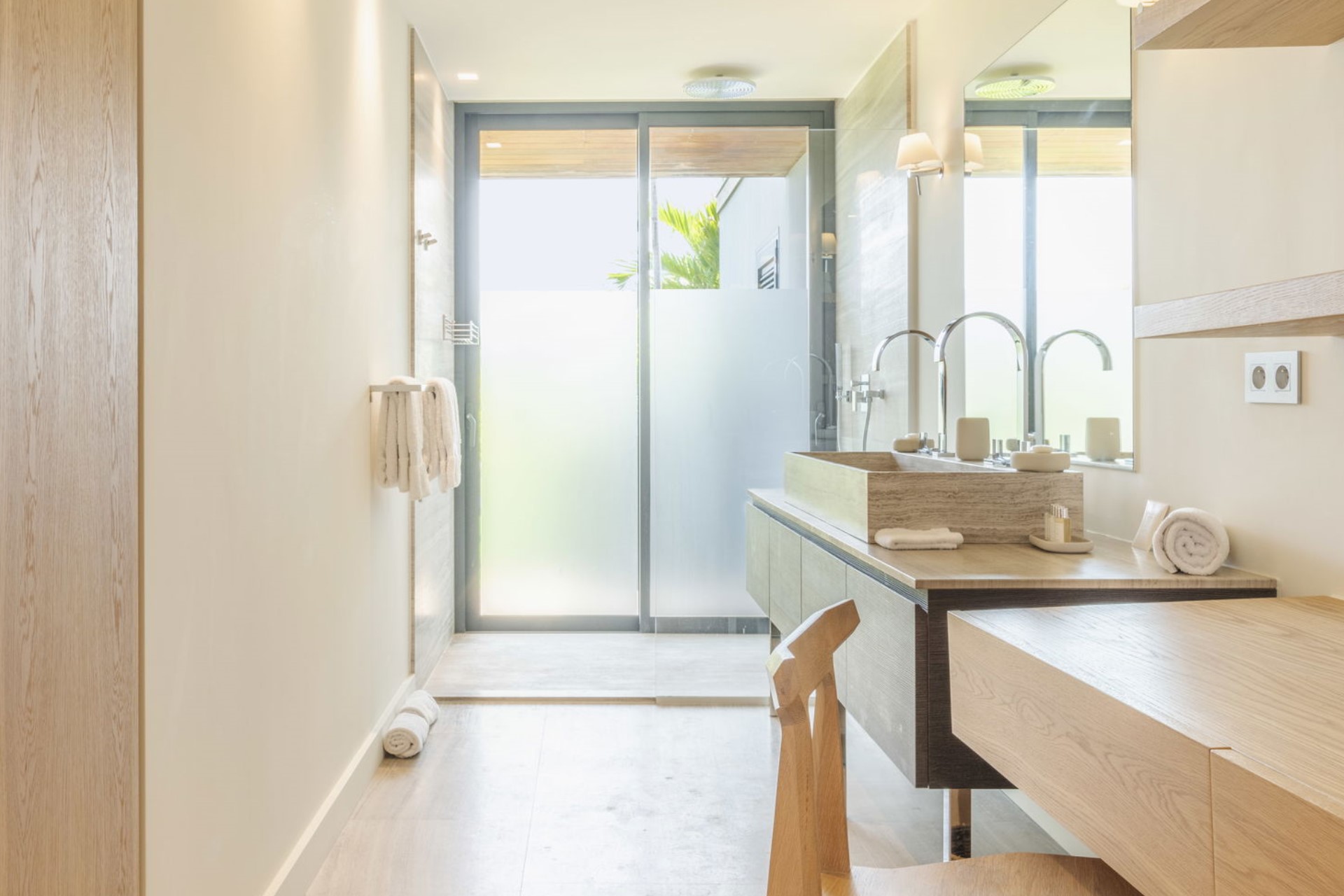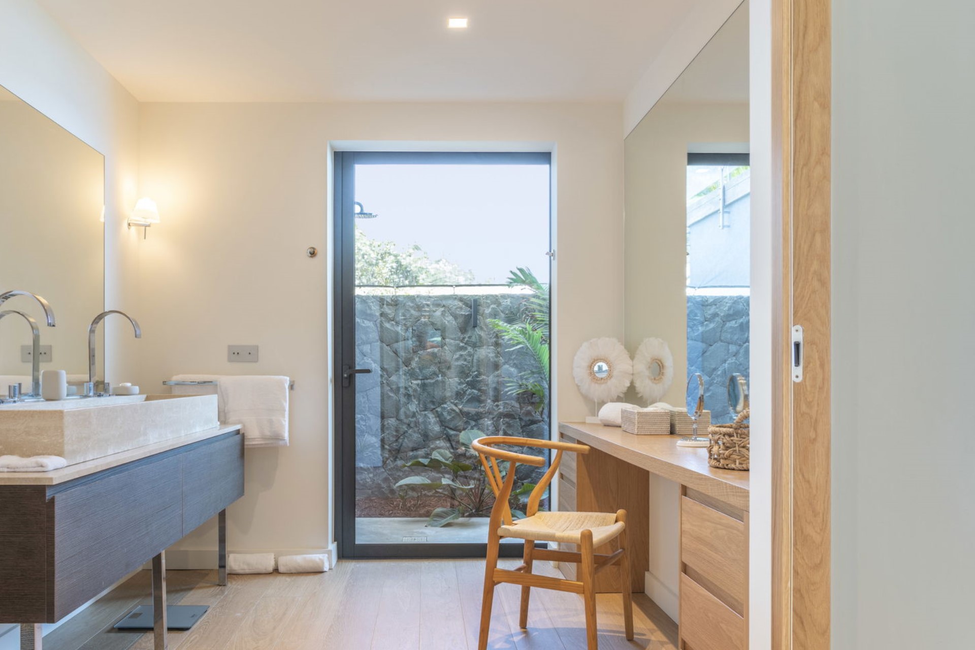 Bedroom 1 – king-size bed, dressing room, en-suite bathroom with dual vanity & outdoor shower, private terrace with ocean view