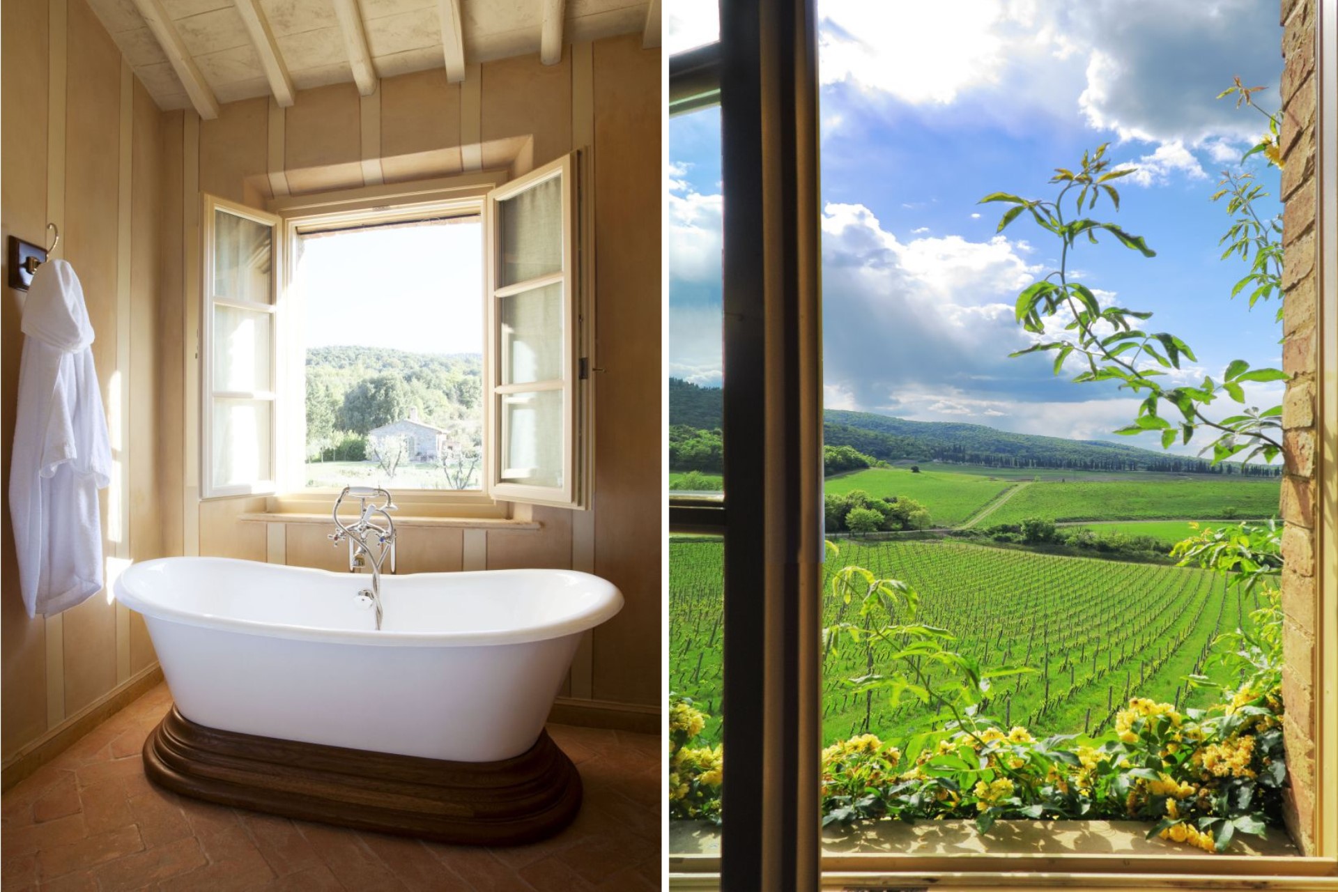 Surrounded by vineyards, Villa Gauggiole is an ancient farmhouse that has been transformed into a luxury villa in the heart of the Val d’Orcia. Comprised of a three-bedroom villa and a one-bedroom guest house, the property comfortably sleeps up to eight guests.