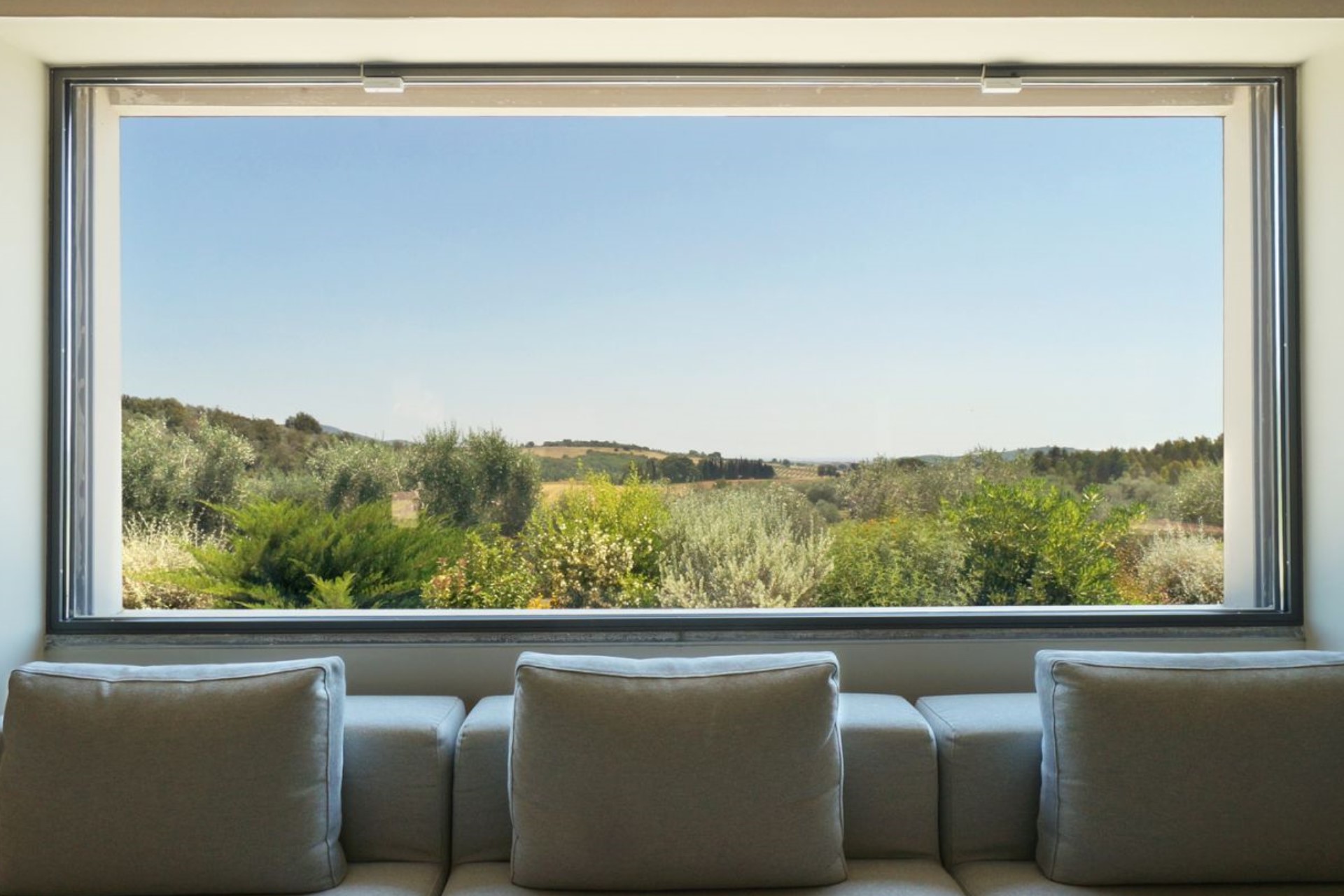 A beautiful minimalist villa immersed in lush Tuscan vegetation