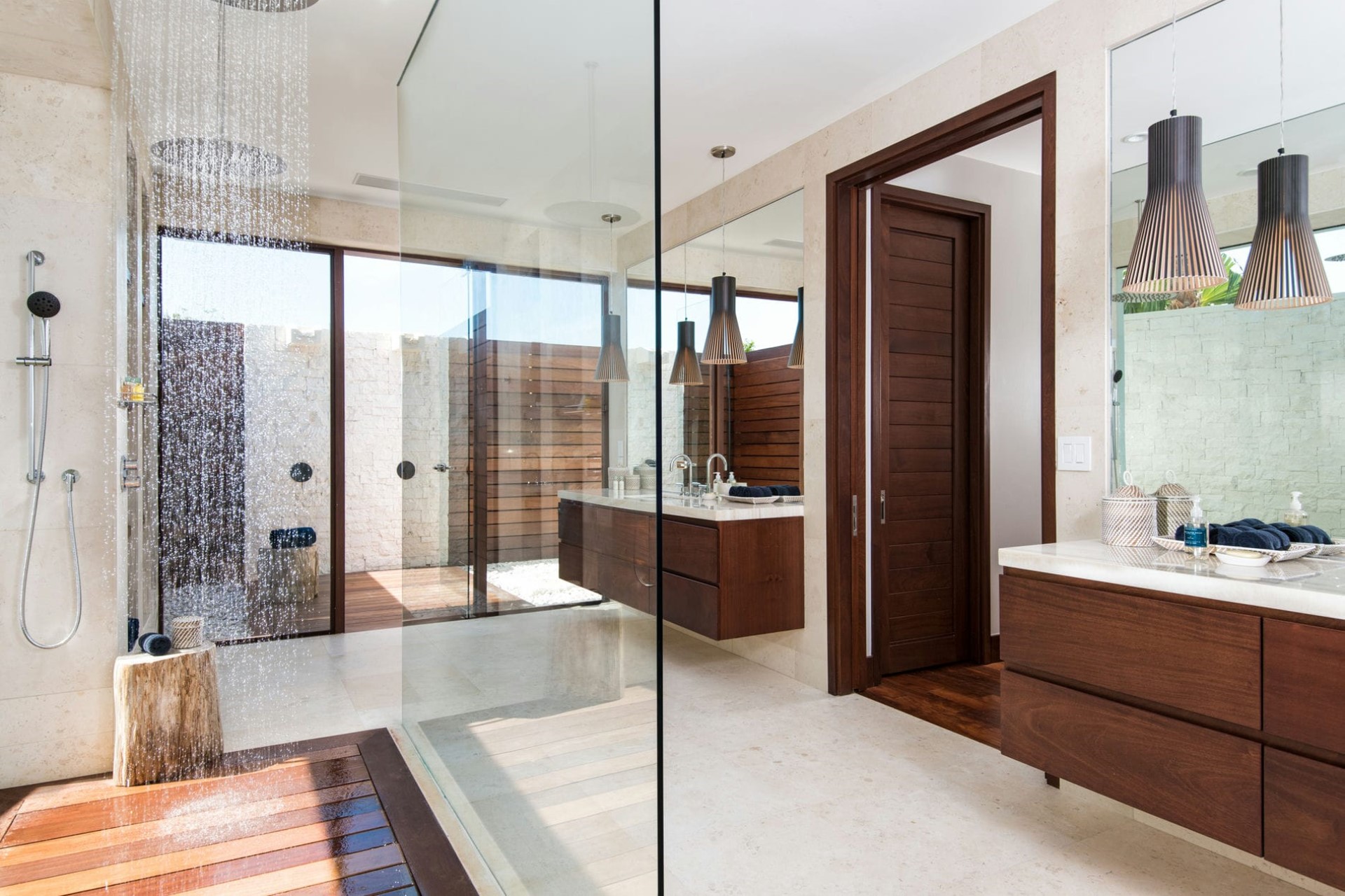 The villa’s outdoor areas are simply extraordinary. A heated swimming pool with an adjacent lap pool invites relaxation, while sun loungers and umbrellas provide a perfect spot for soaking in the tropical sun. The villa also features a jacuzzi, a tennis court, and a basketball net for active guests, along with a beach volleyball court for fun by the sea. Outdoor lounge areas, a fire pit, and a dining space ensure plenty of opportunities for socialising and enjoying al fresco meals, all complemented by outdoor speakers to set the mood. A boat dock and direct beach access make exploring the turquoise waters of the Caribbean effortless.