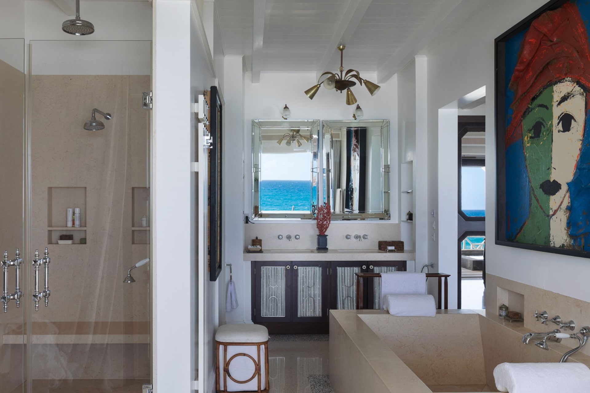 Bedroom 1 – king-size bed, en-suite bathroom with dual vanity, bathtub & separate shower, private terrace with plunge pool & ocean view