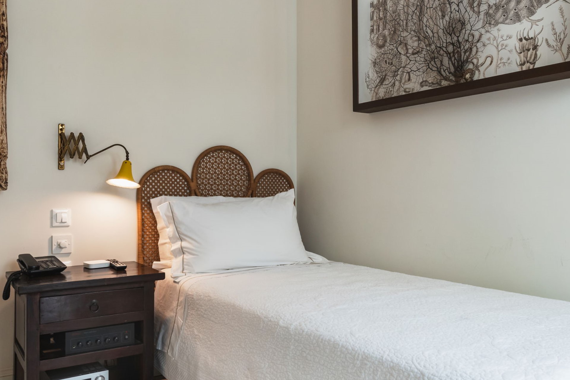 Bedroom 7 – single bed, en-suite bathroom with shower, private terrace with garden view (interconnects with Bedrooms 5 & 6)