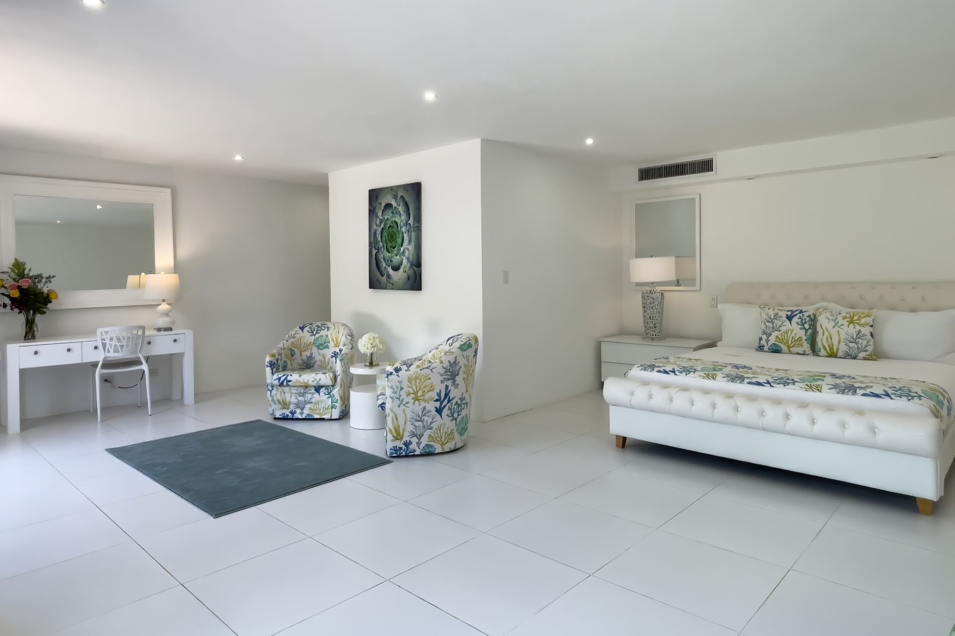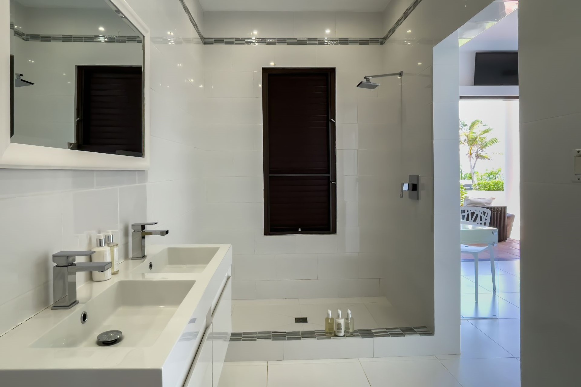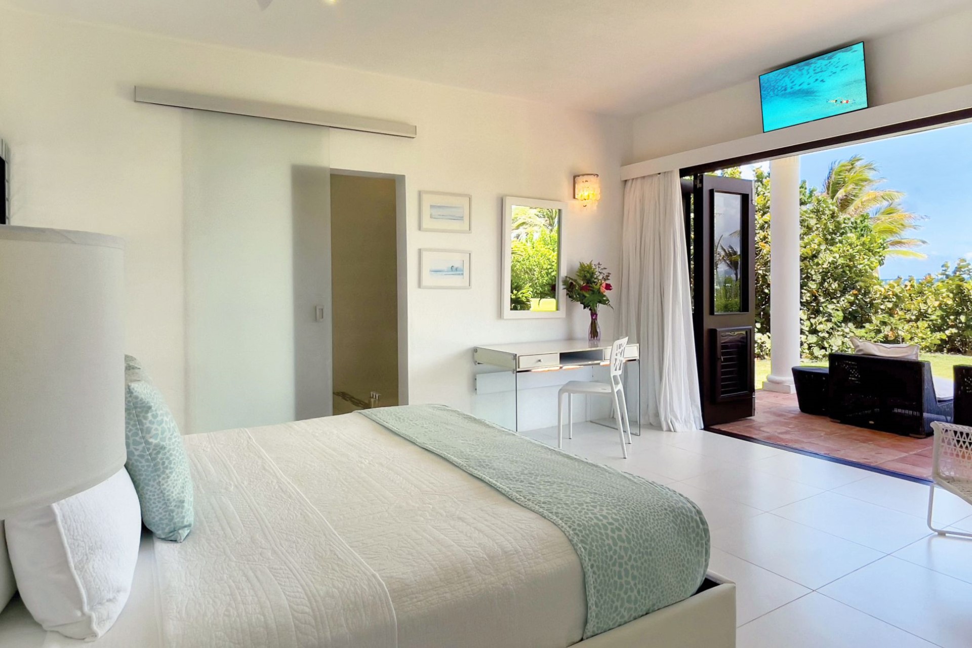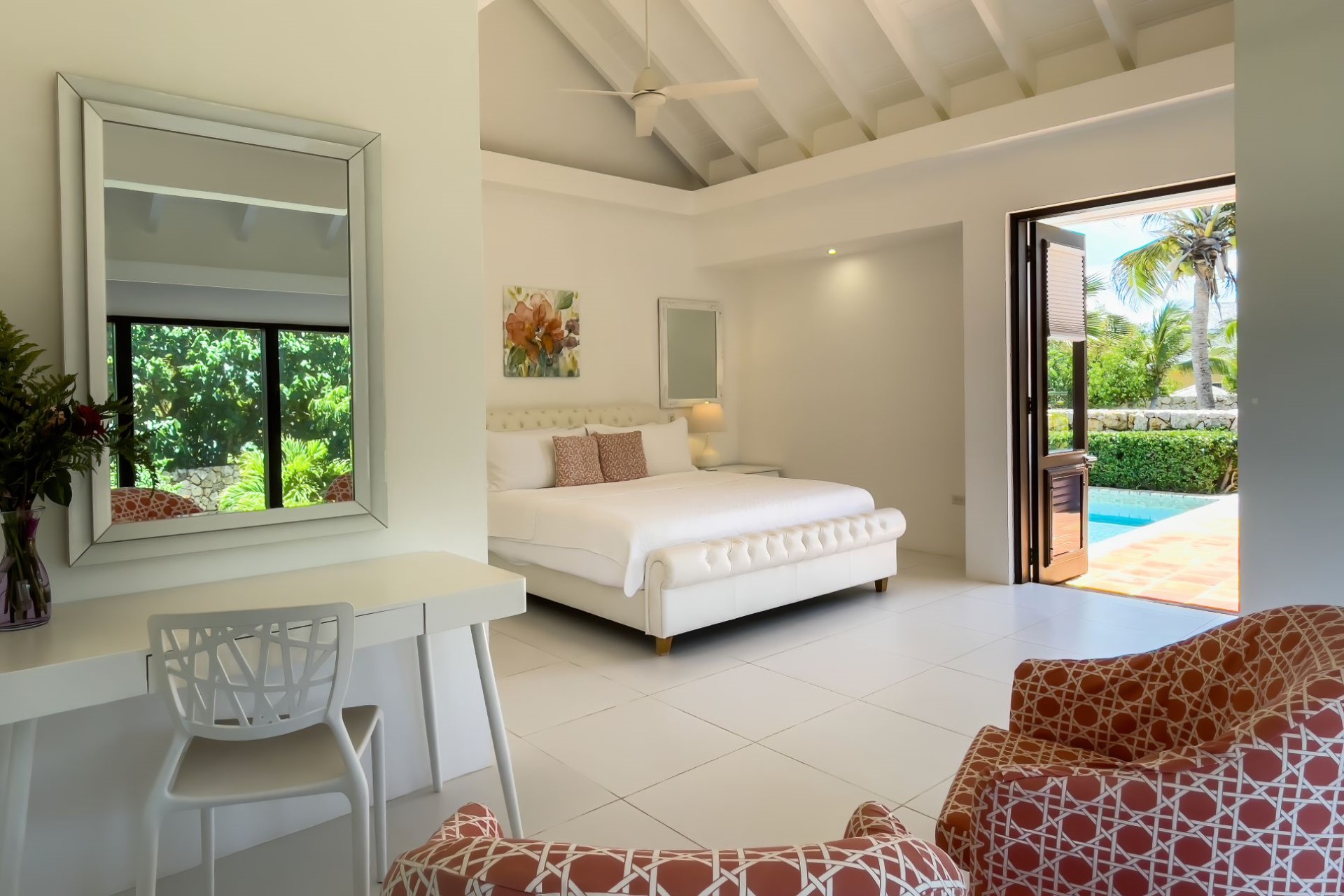 Sea Grass – king-size bed, en-suite bathroom with shower, and pool terrace access