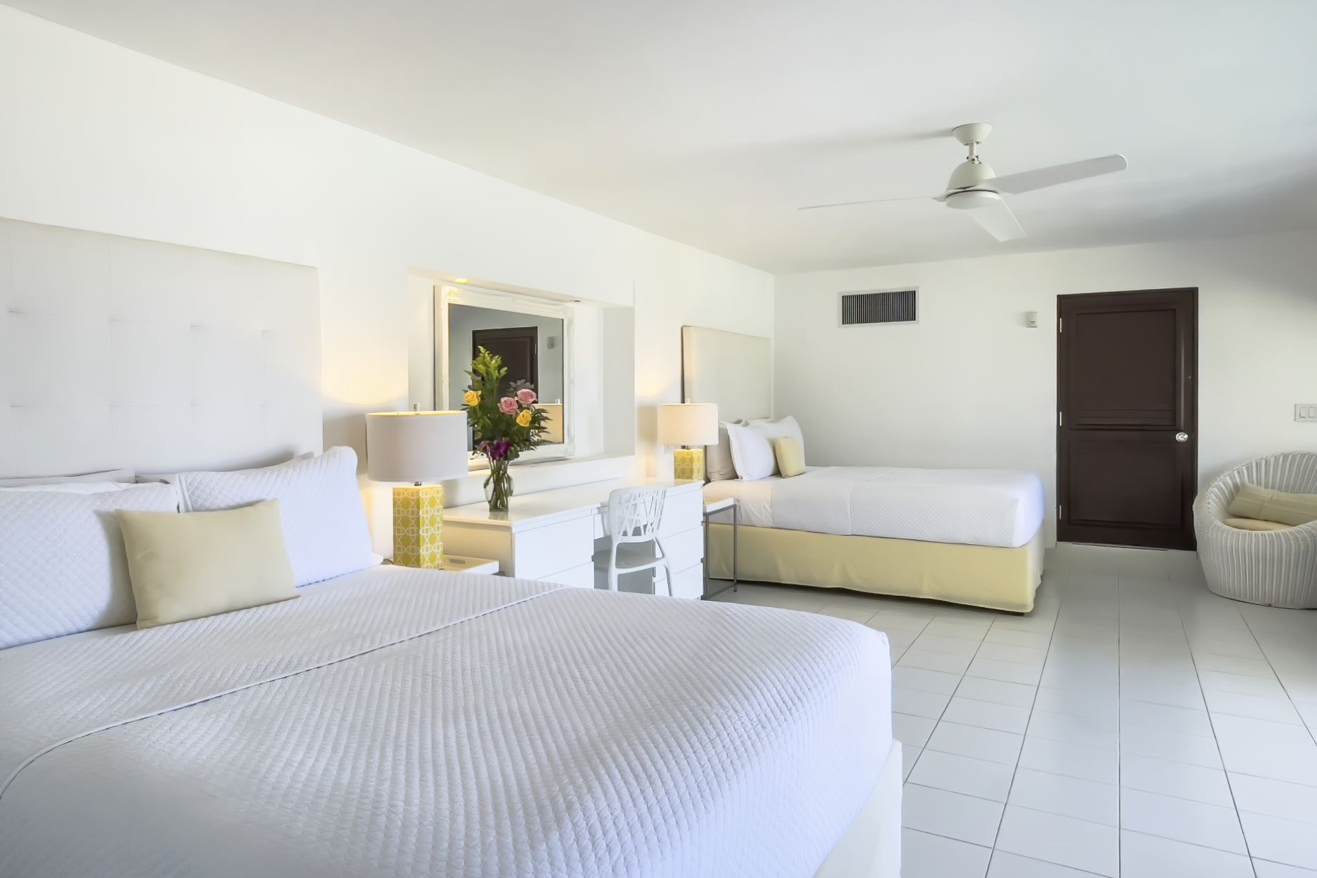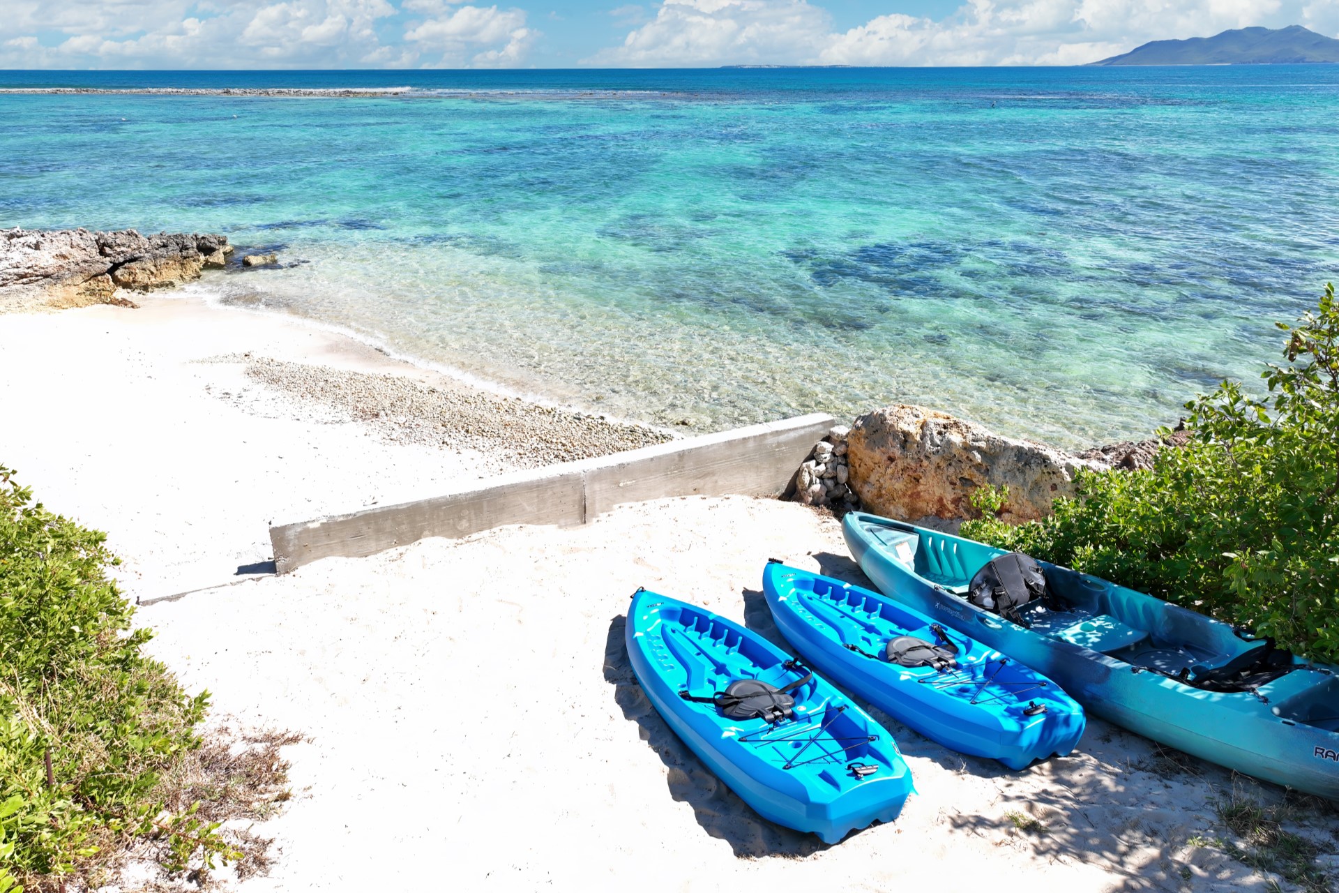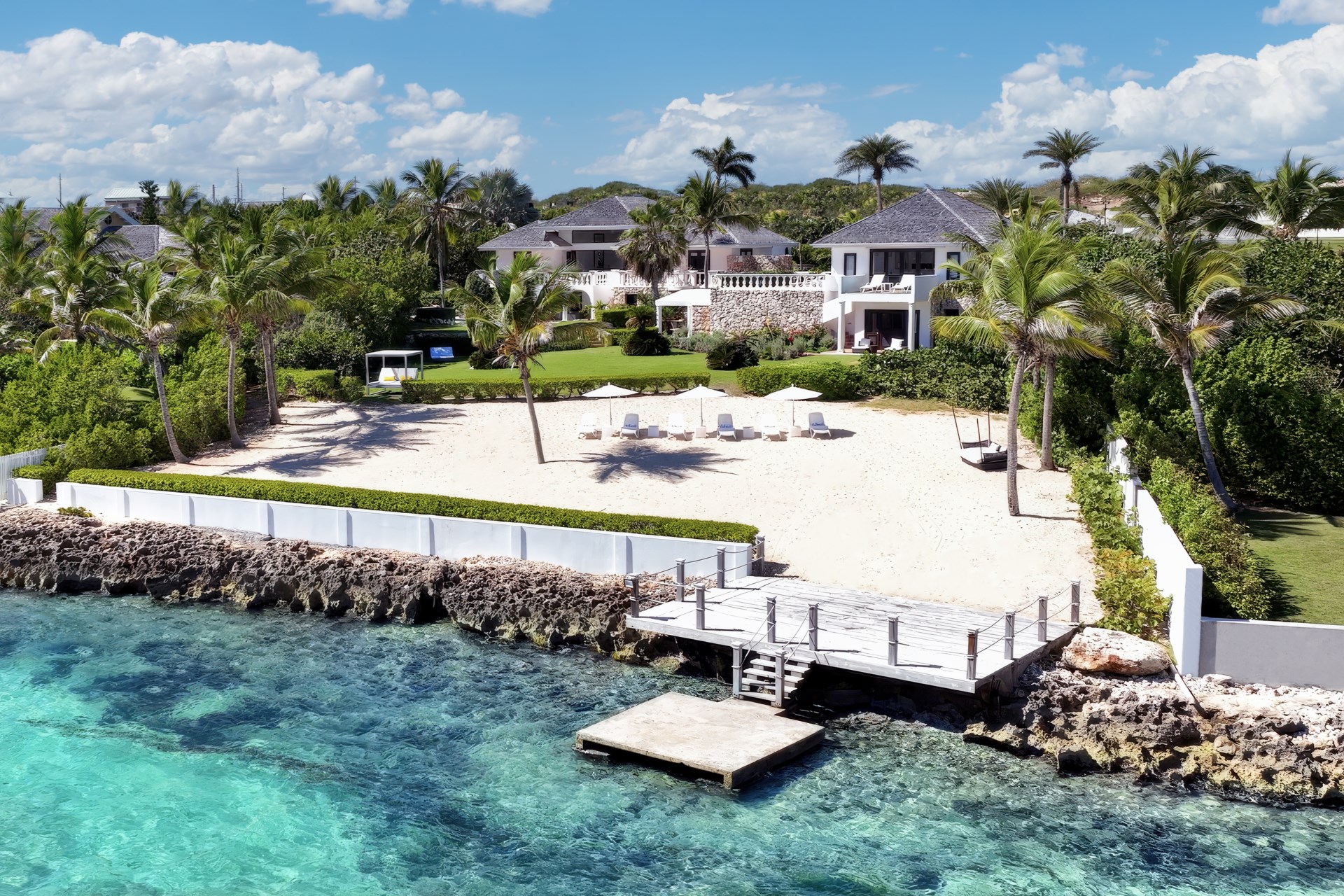 Guests are invited to unwind in the warm trade winds on their private, white sand beach, sip cocktails one of two turquoise pools, or enjoy a number of activities on the estate including the complimentary use of the tennis court with pavilion, water sports, or the well-equipped gym.